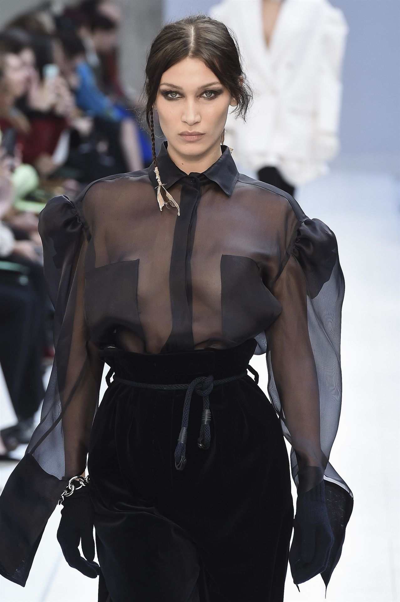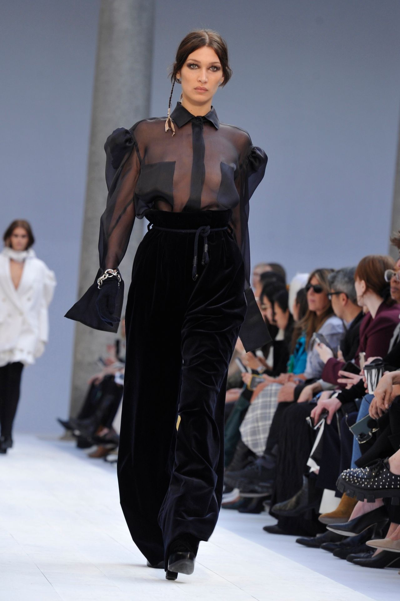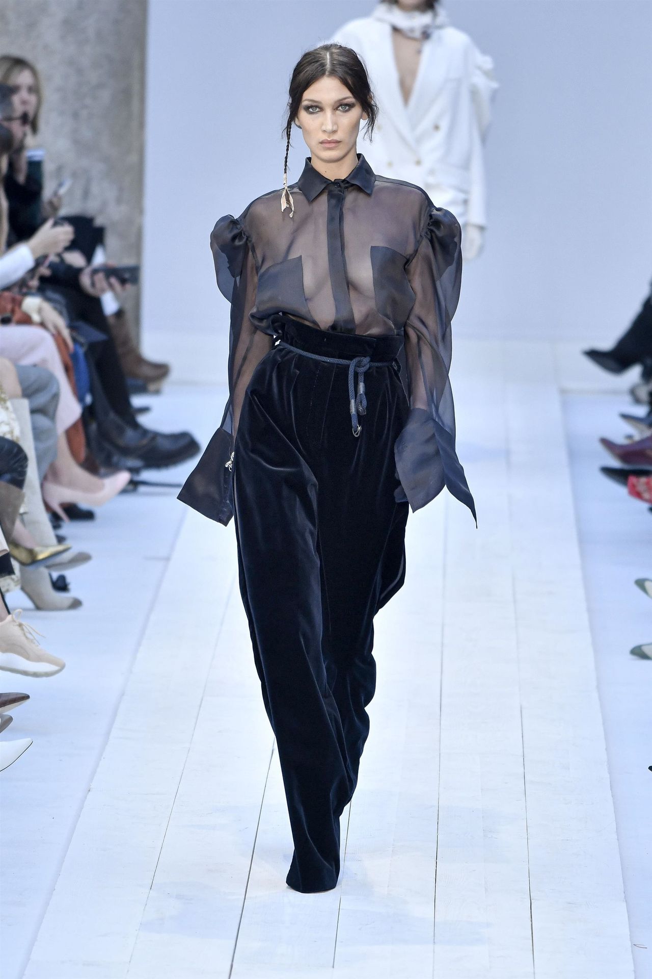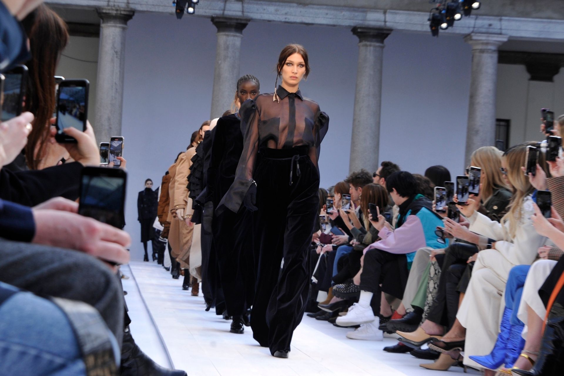 Model Bella Hadid walks the runway braless during the Max Mara fashion show as part of Milan Fashion Week Fall/Winter in Milan, Italy, 02/20/2020.