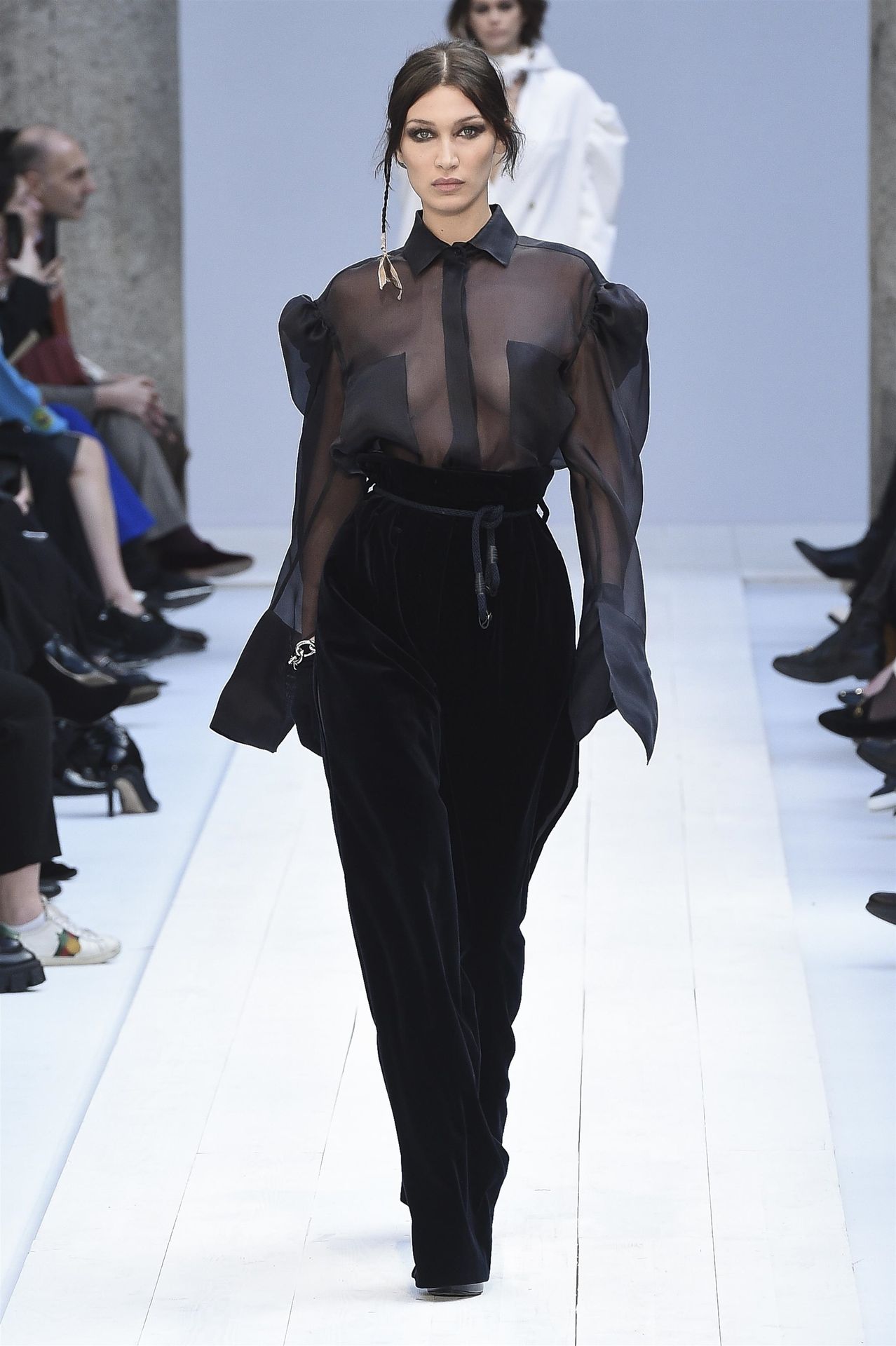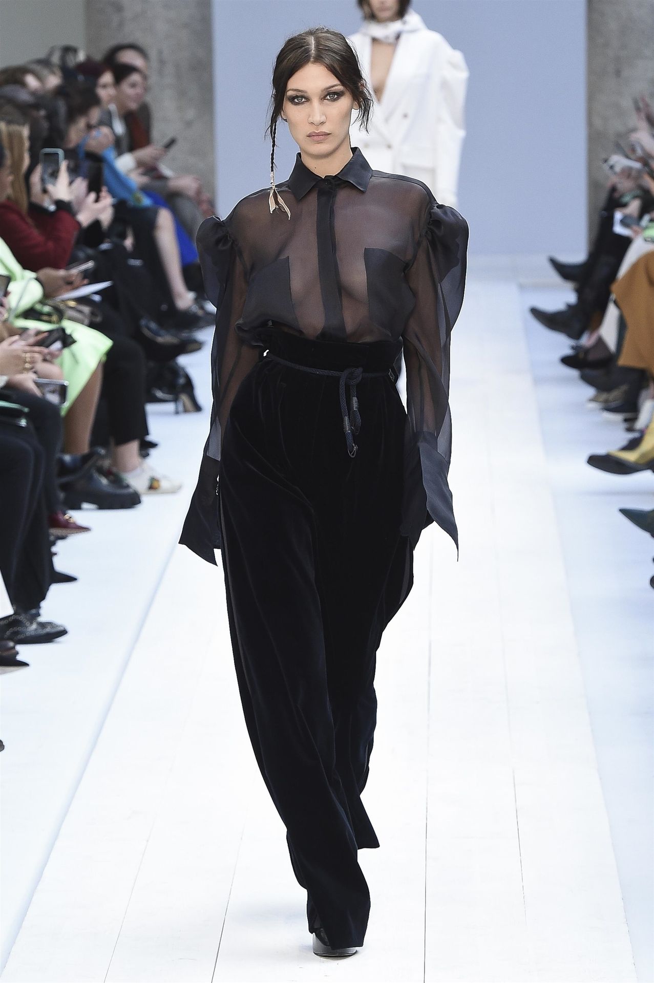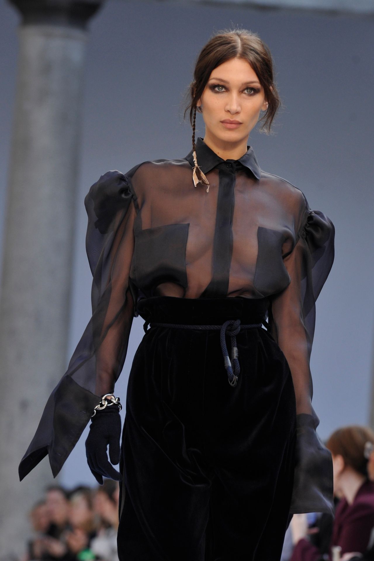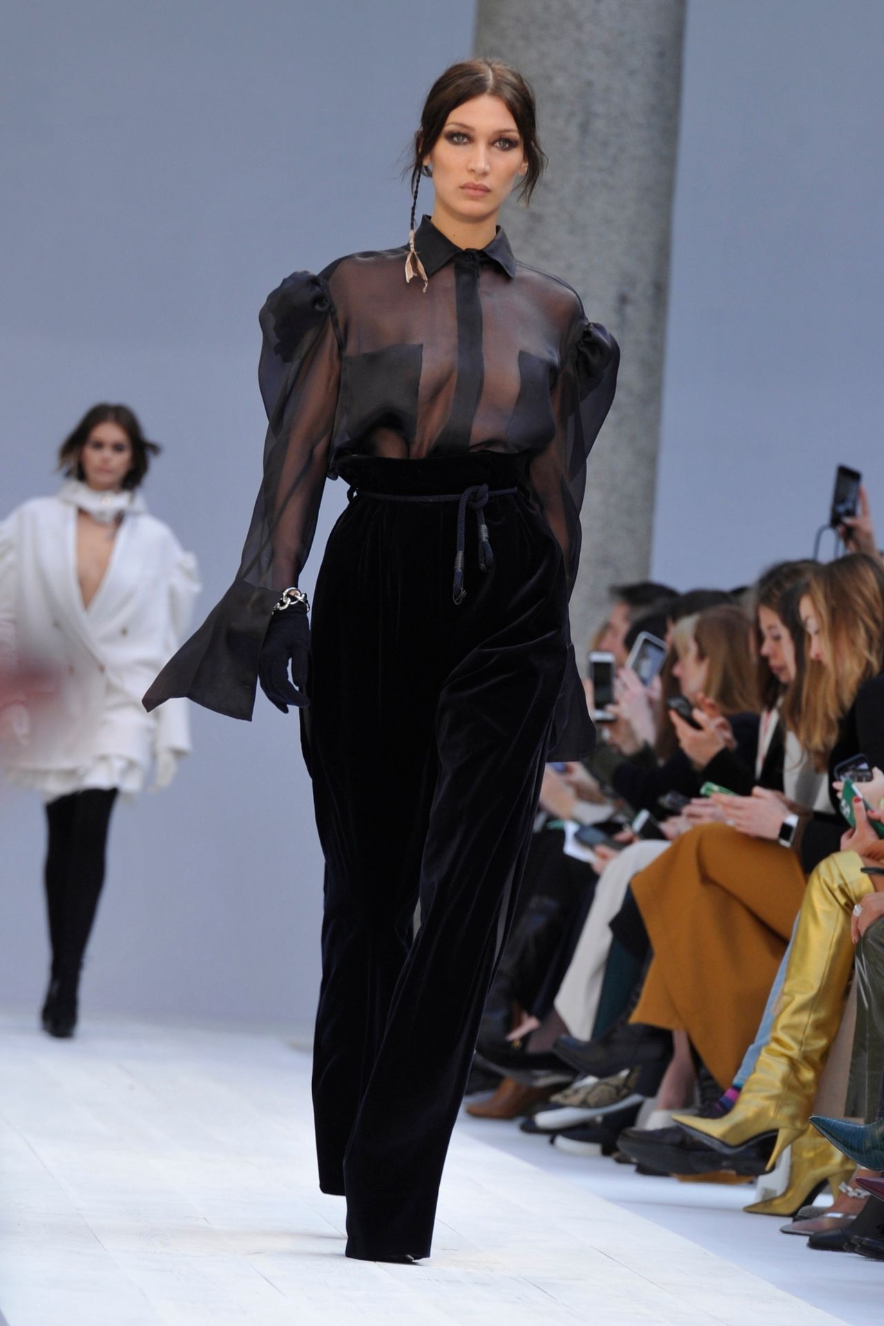 Model Bella Hadid walks the runway braless during the Max Mara fashion show as part of Milan Fashion Week Fall/Winter in Milan, Italy, 02/20/2020.