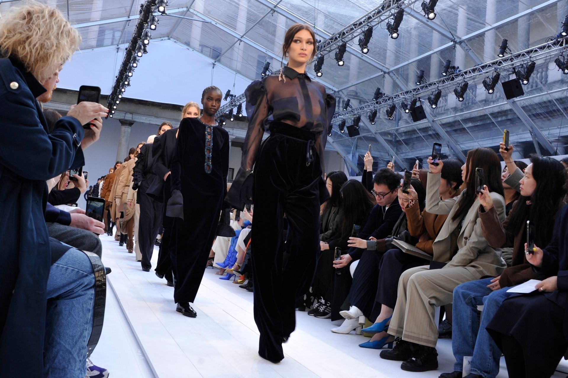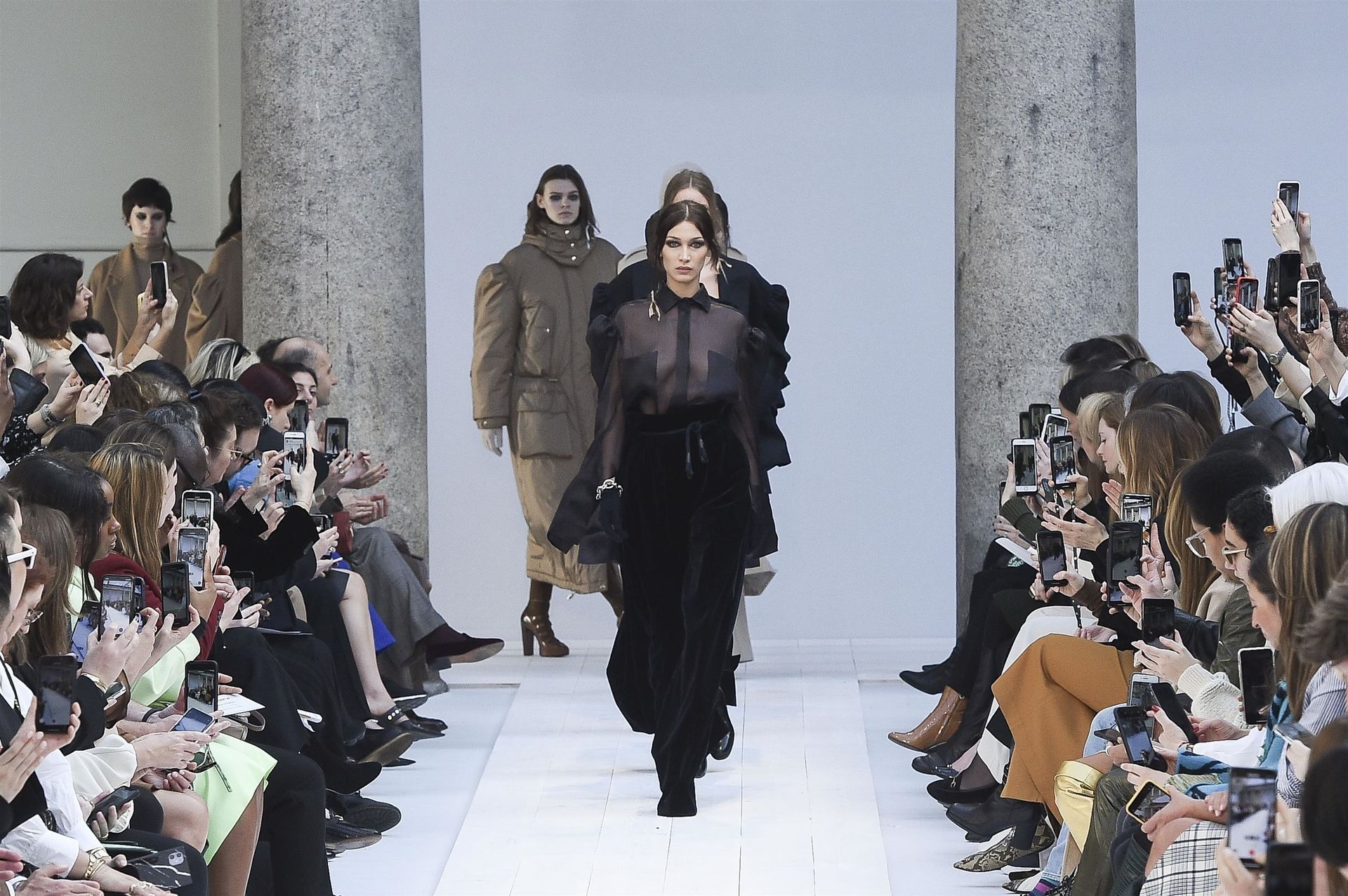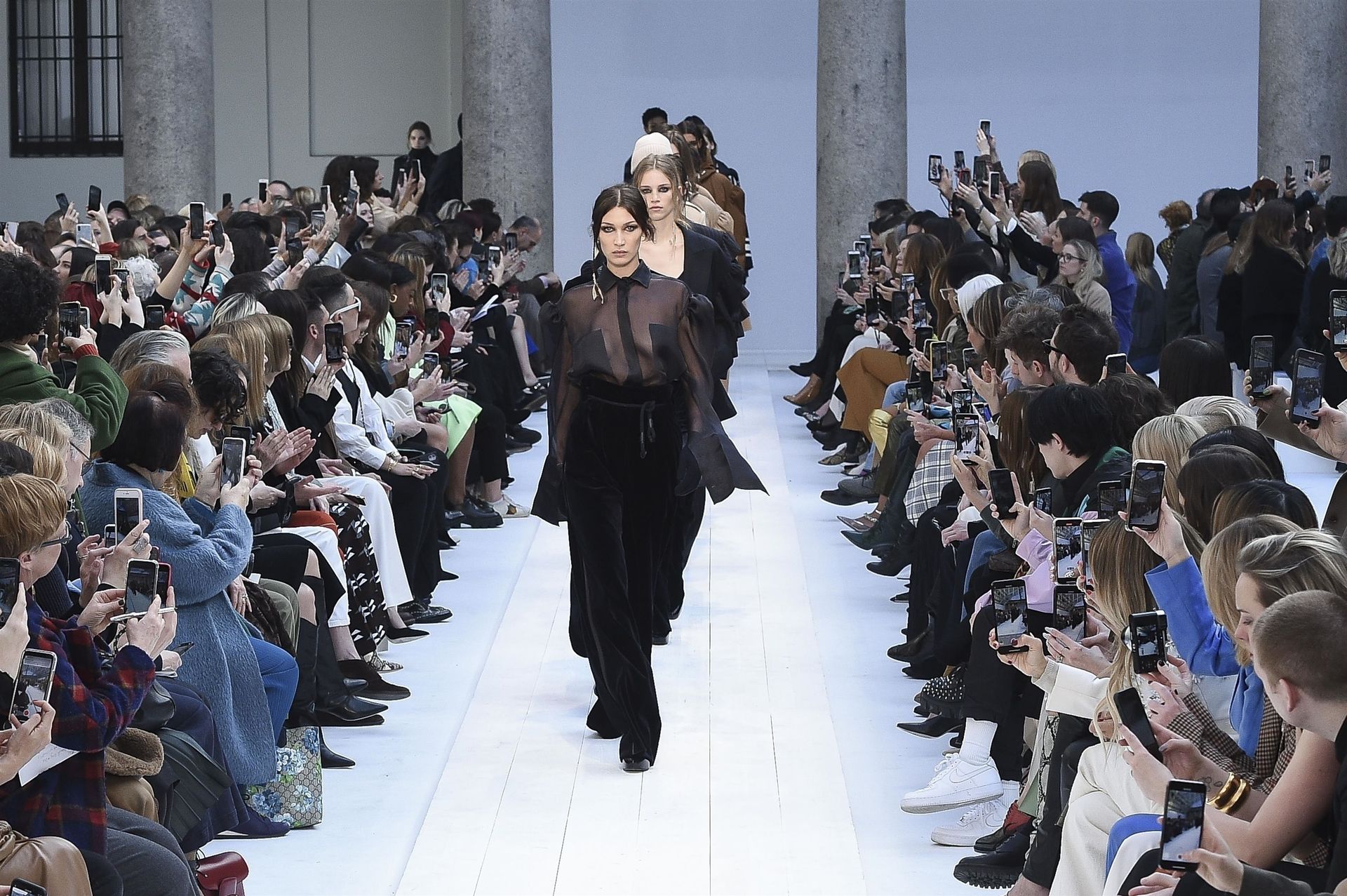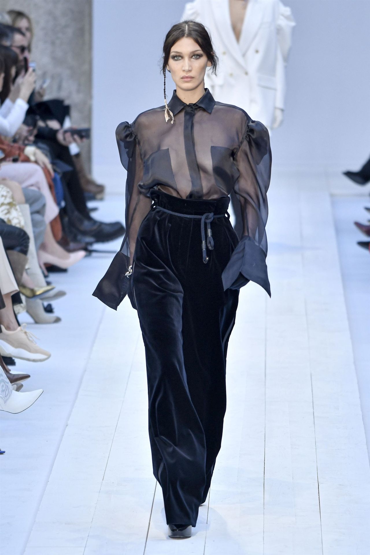 Model Bella Hadid walks the runway braless during the Max Mara fashion show as part of Milan Fashion Week Fall/Winter in Milan, Italy, 02/20/2020.