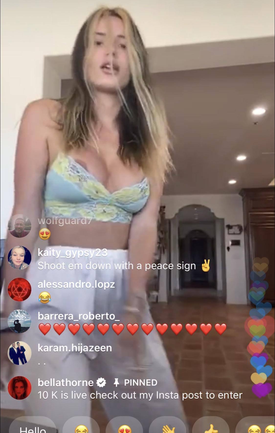 Bella Thorne having wardrobe malfunction as she flaunts her sexy big boobs wearing tiny bra in racy Instagram live video.