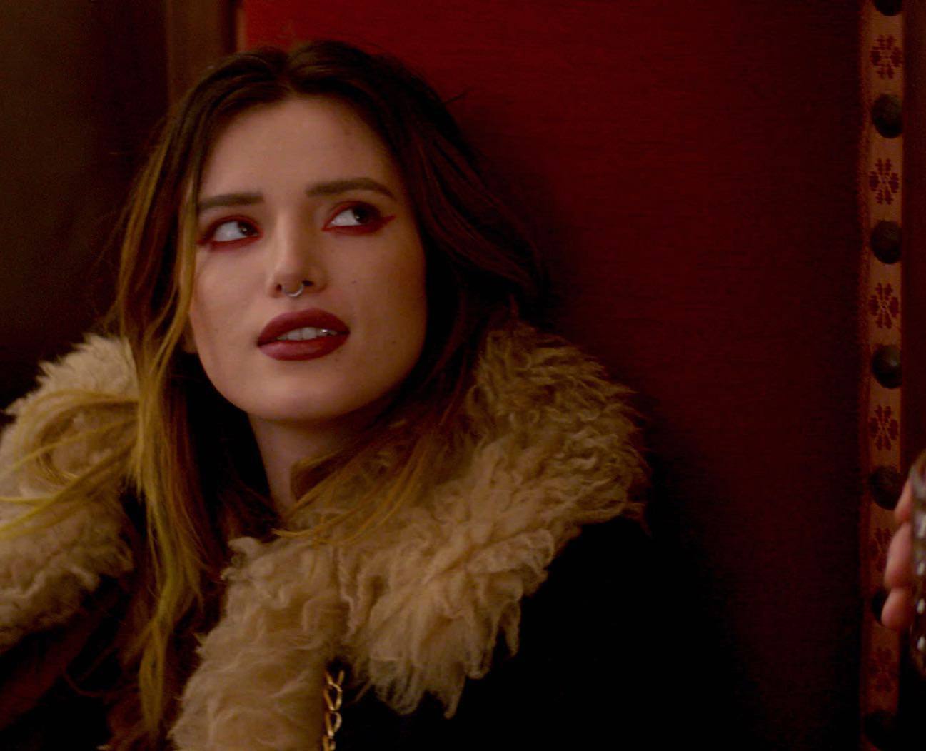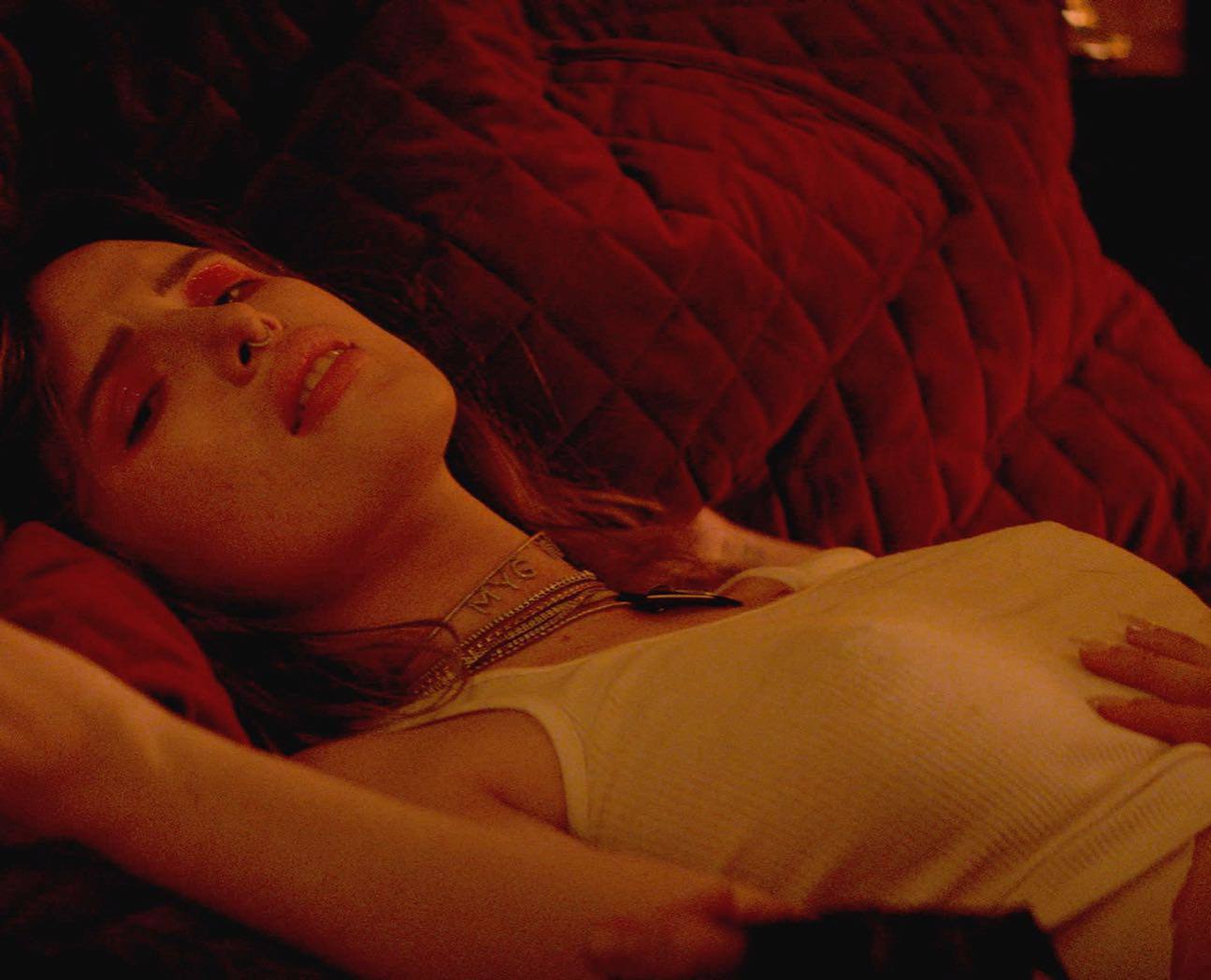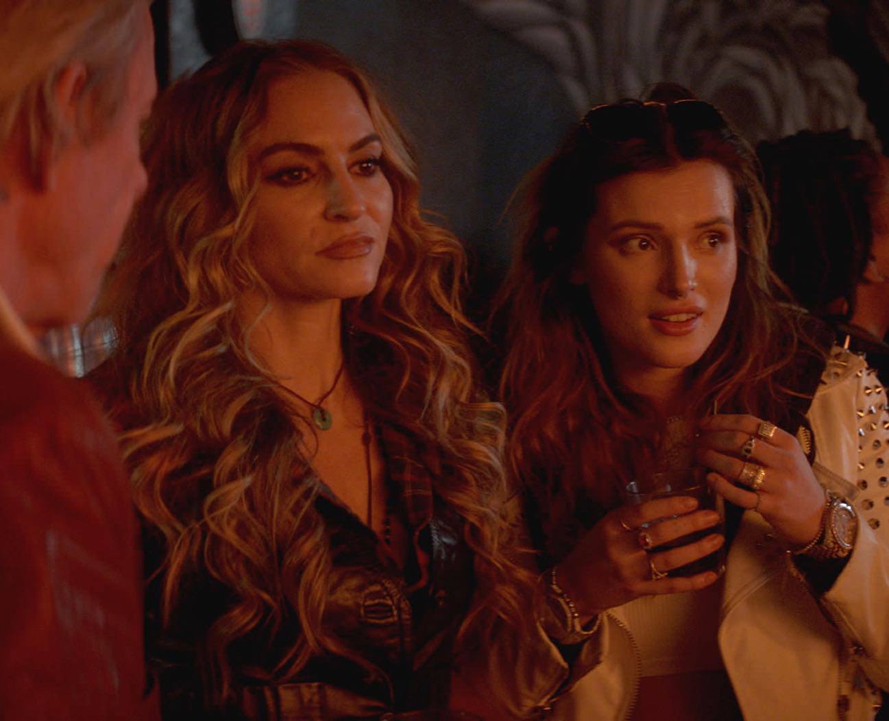 Bella Thorne braless wearing tank top in sexy lesbian orgy in promo for Paradise City TV series.