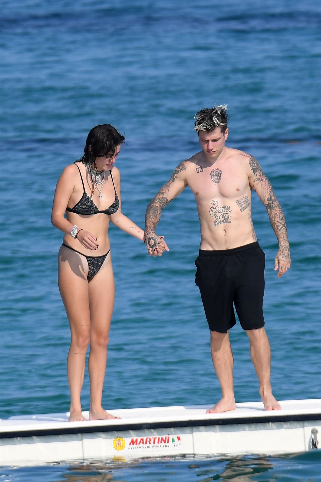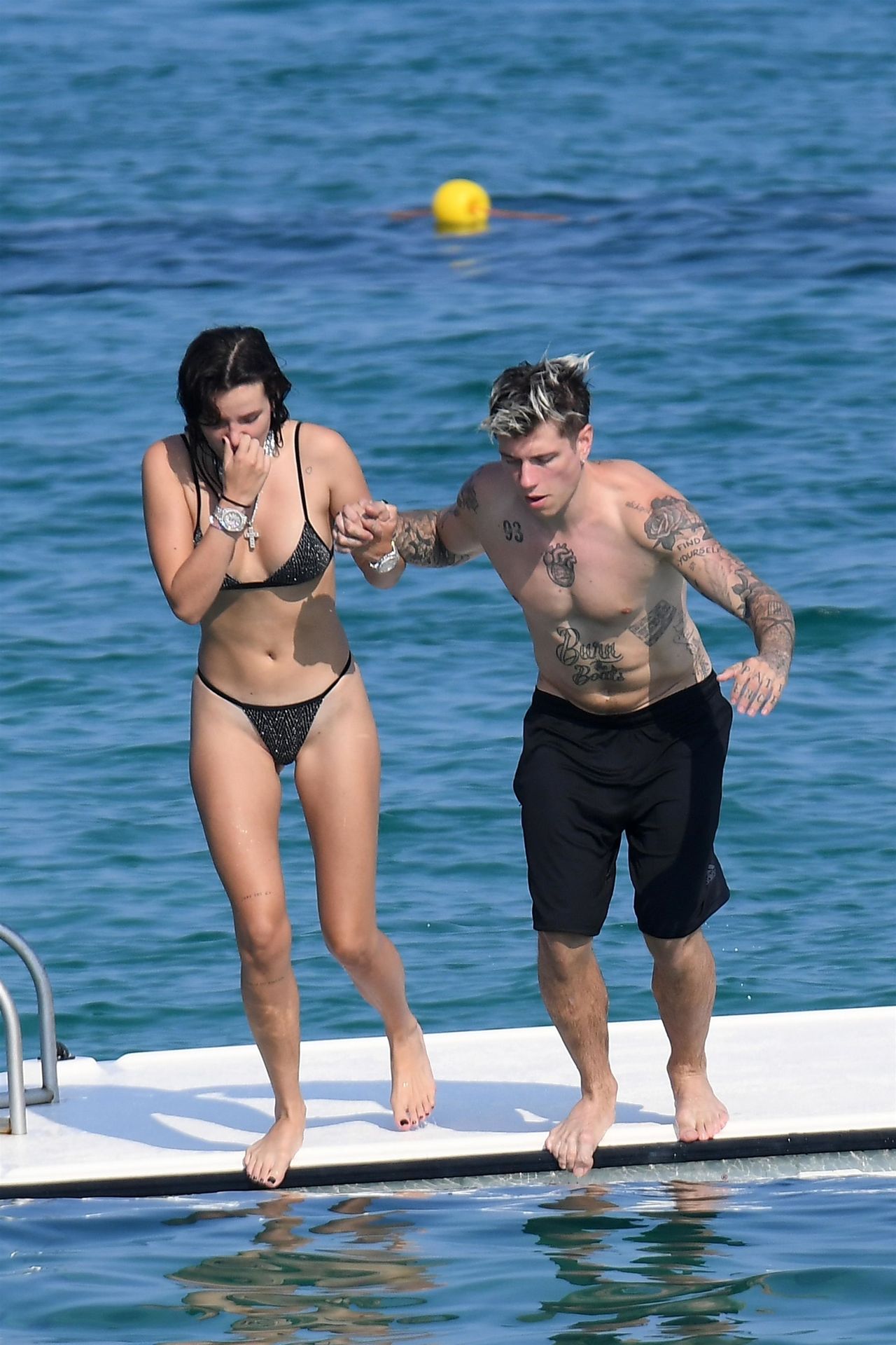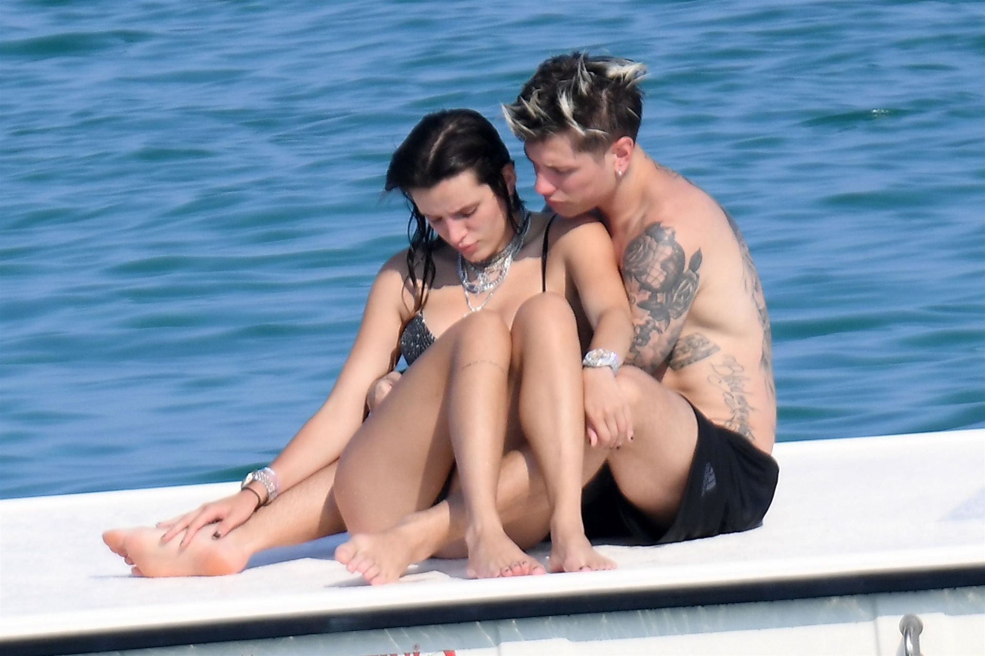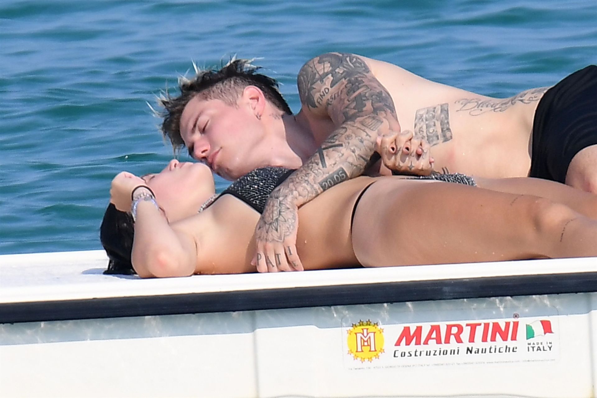 Bella Thorne and Benjamin Mascolo continue their love filled romantic holiday in Sardinia, Italy, 08/25/2019. The couple put on a heavy PDA display and could be seen cuddling and kissing while sitting by the water.