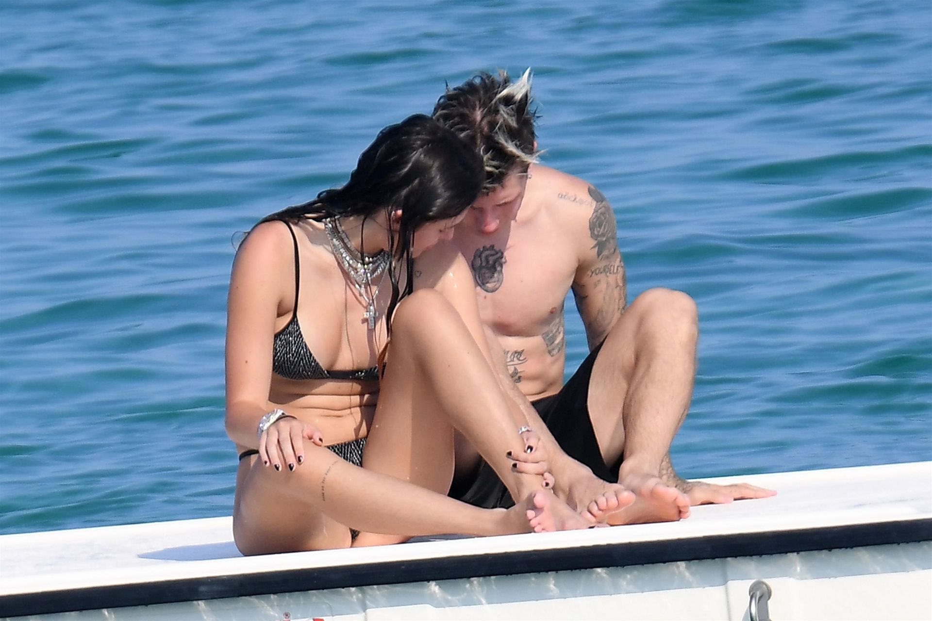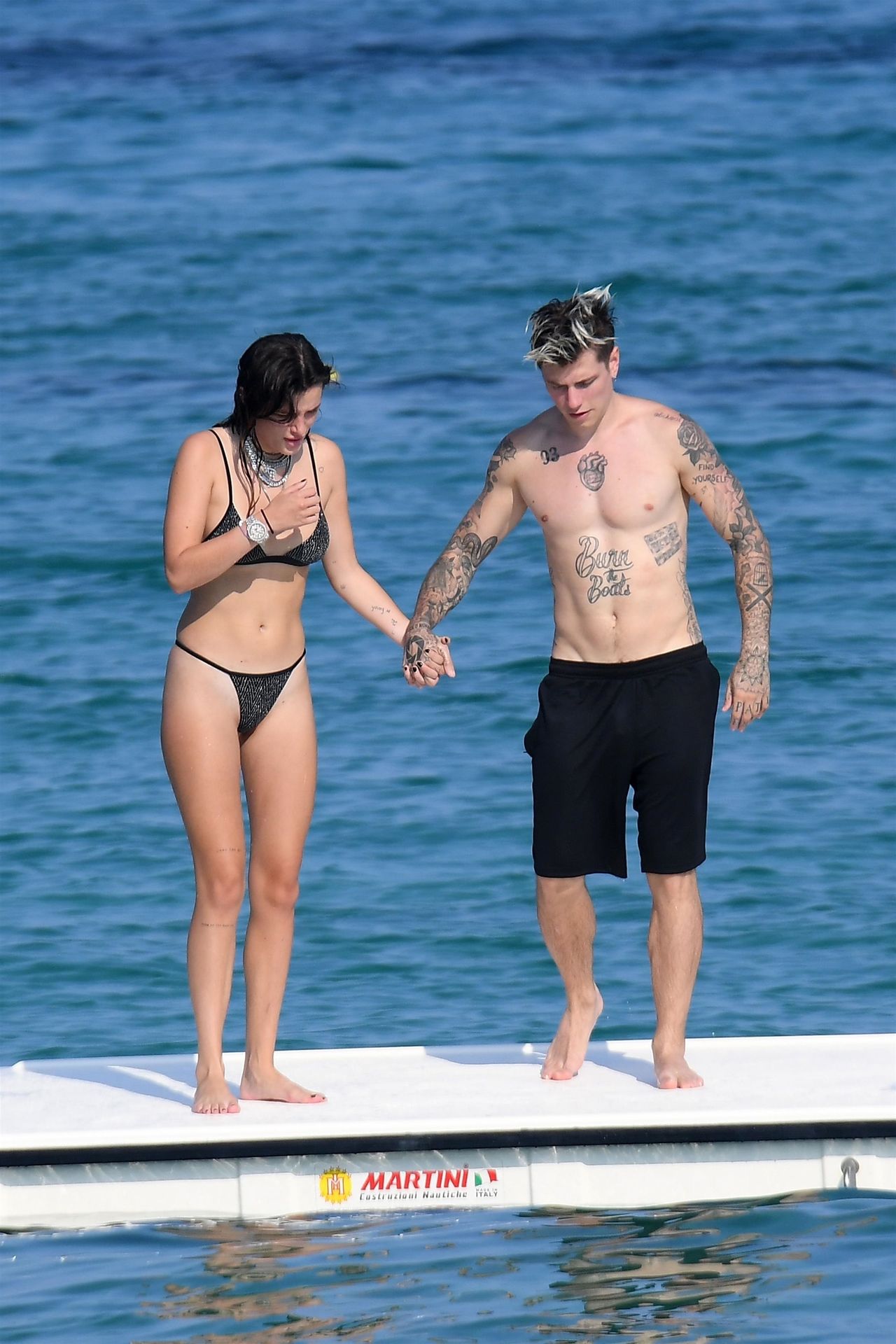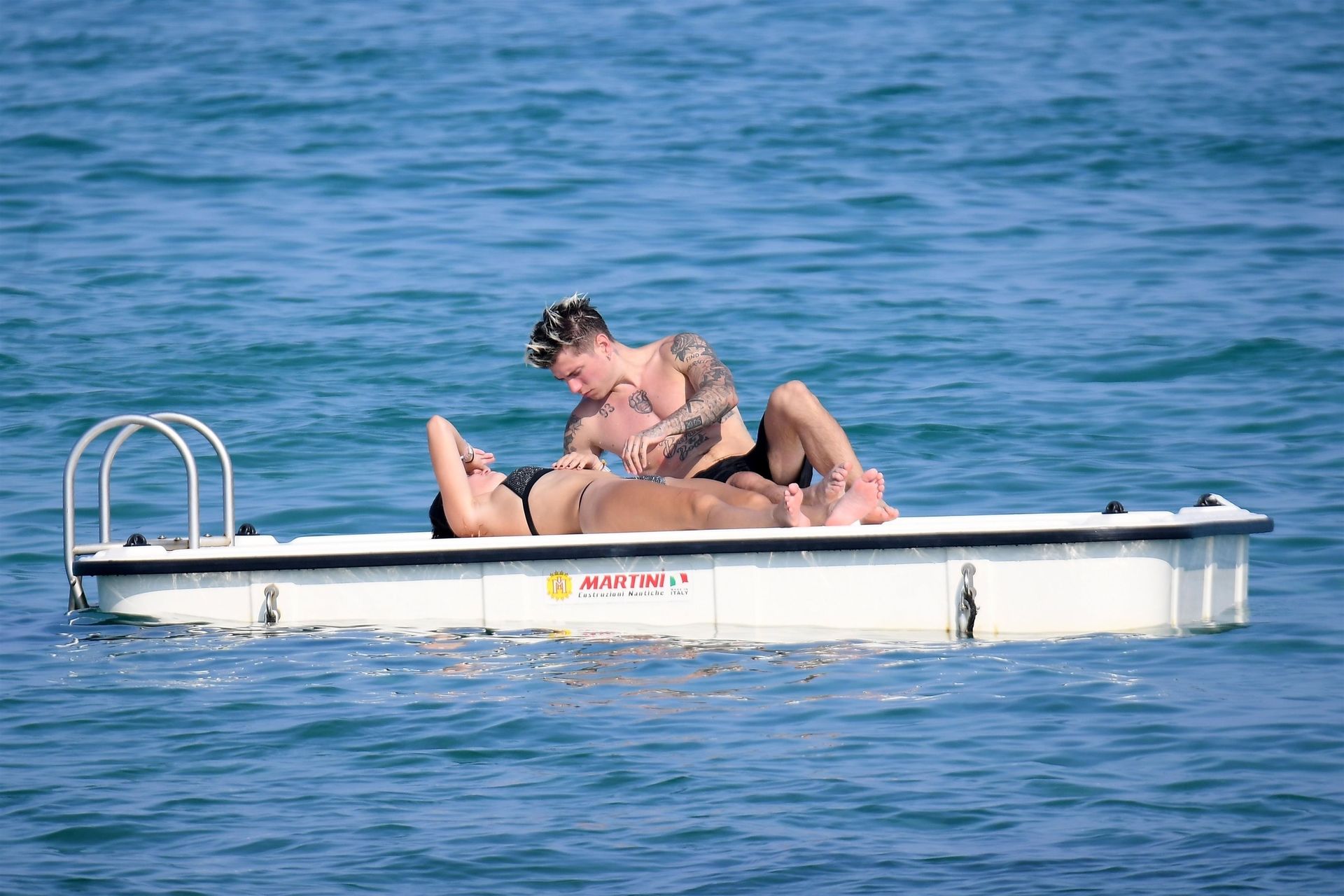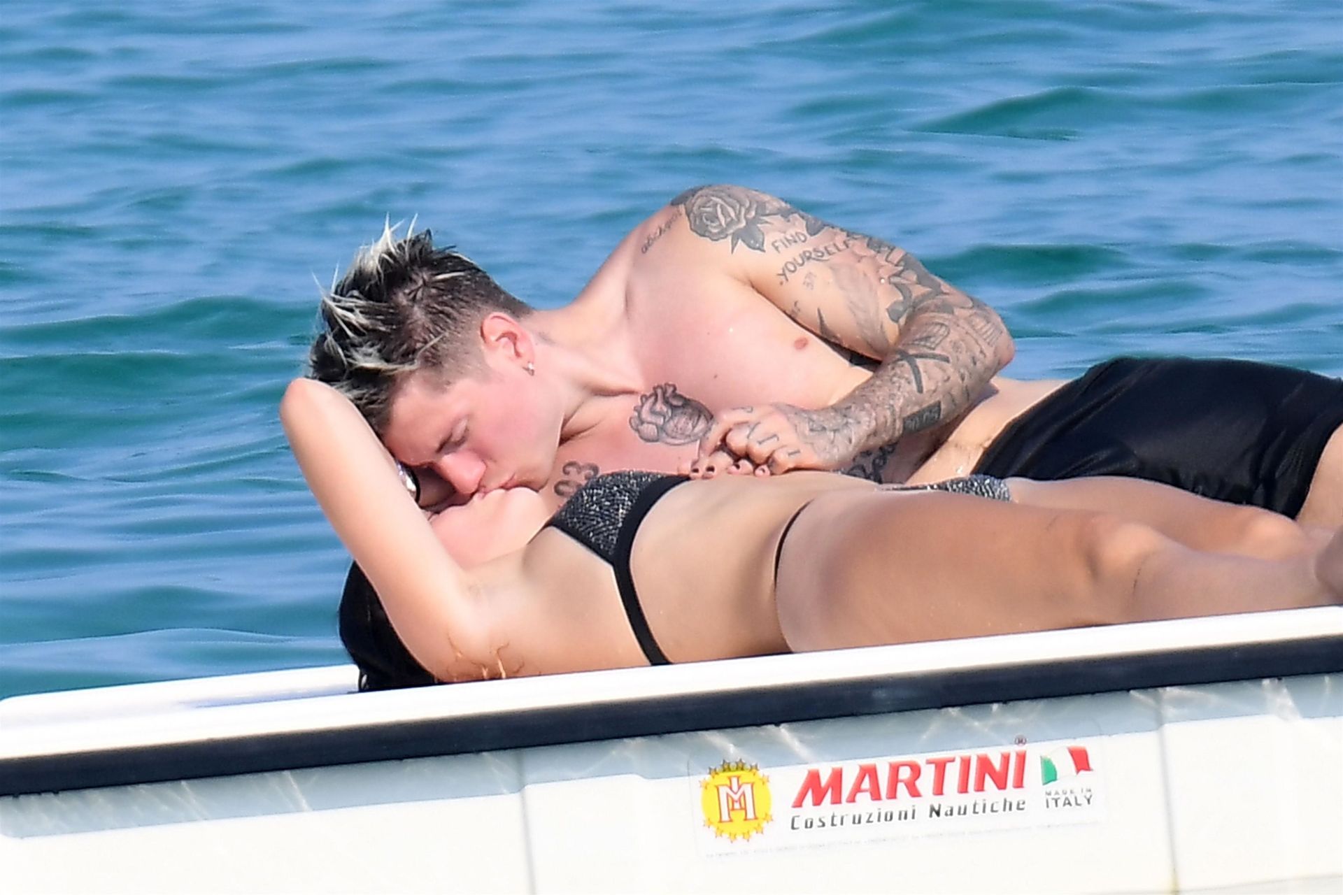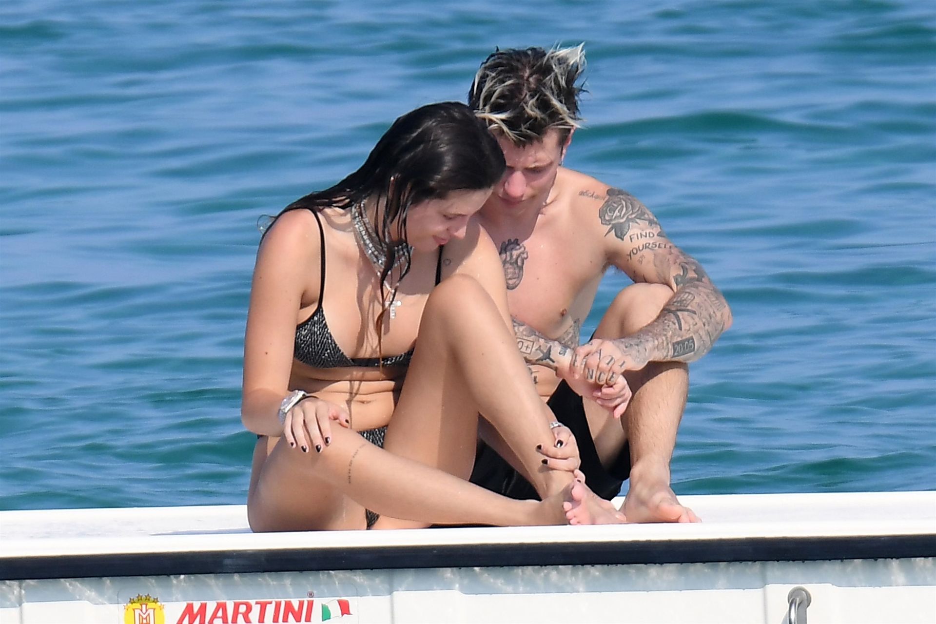 Bella Thorne and Benjamin Mascolo continue their love filled romantic holiday in Sardinia, Italy, 08/25/2019. The couple put on a heavy PDA display and could be seen cuddling and kissing while sitting by the water.