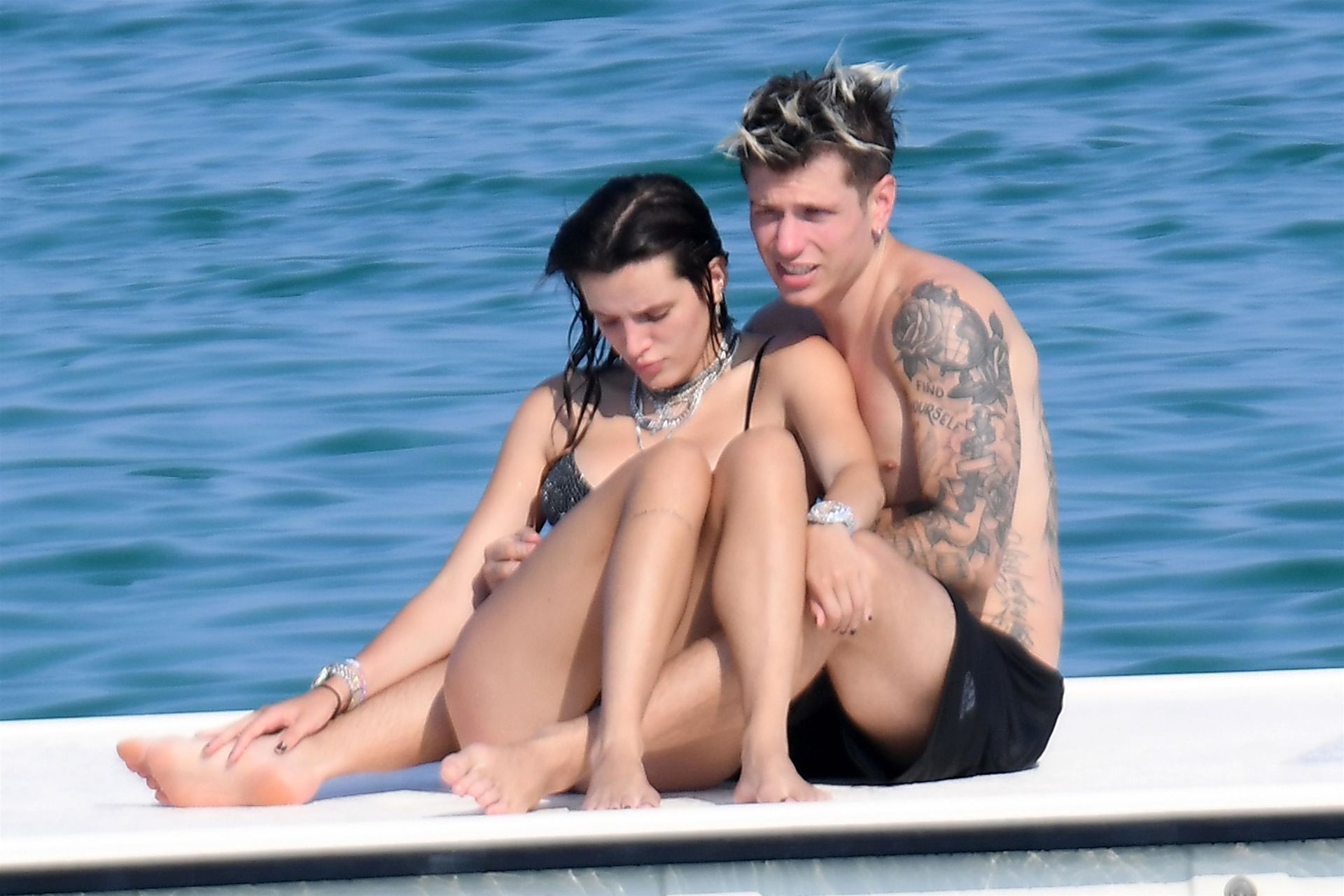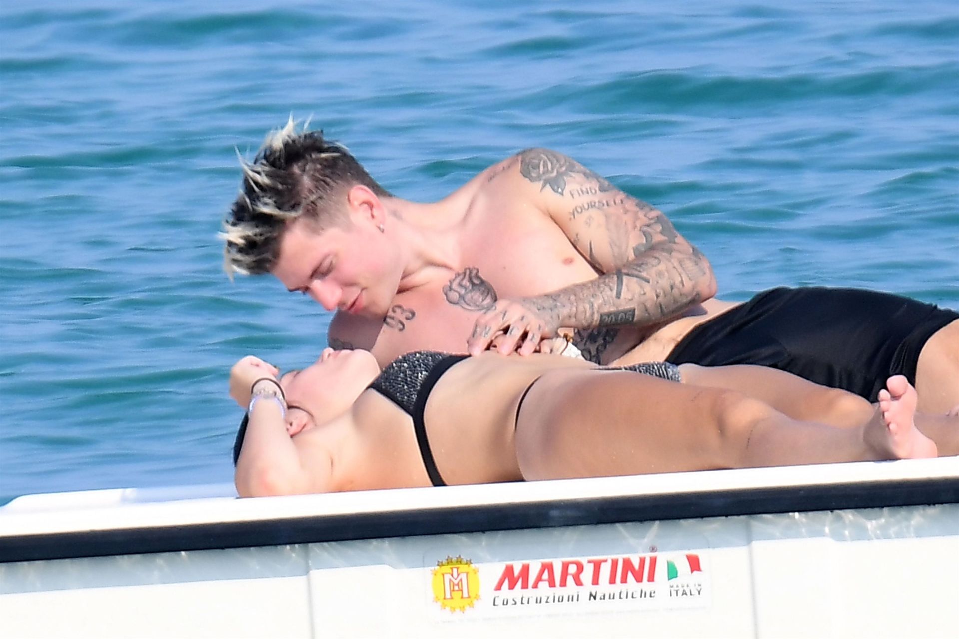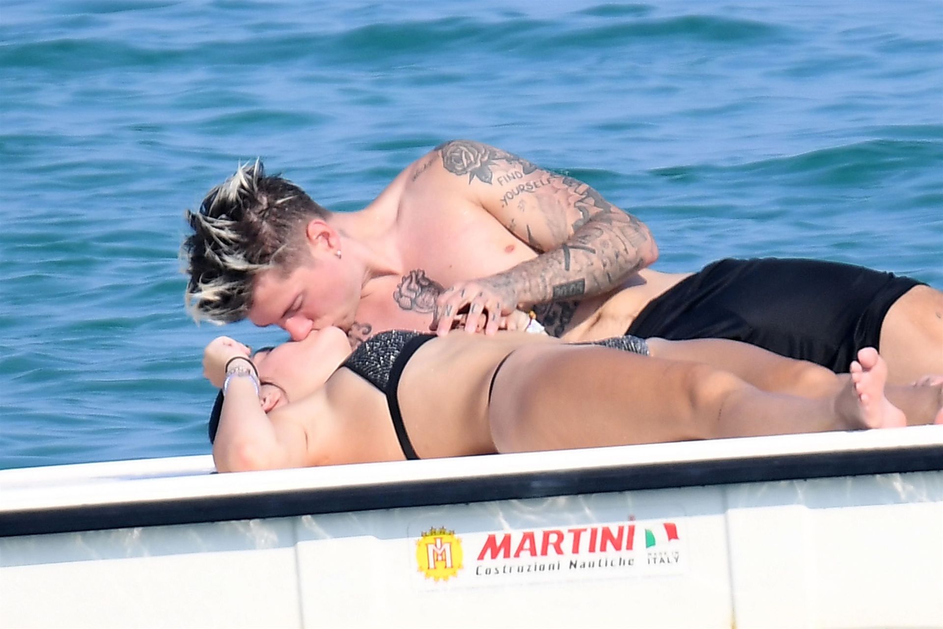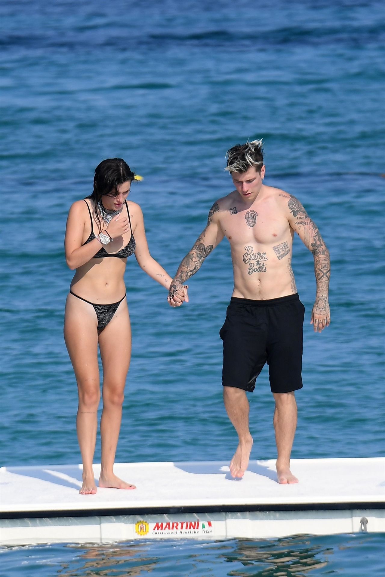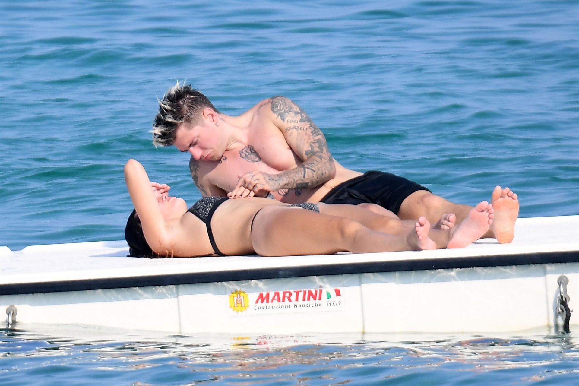 Bella Thorne and Benjamin Mascolo continue their love filled romantic holiday in Sardinia, Italy, 08/25/2019. The couple put on a heavy PDA display and could be seen cuddling and kissing while sitting by the water.