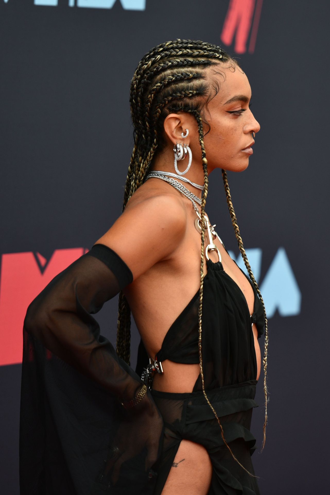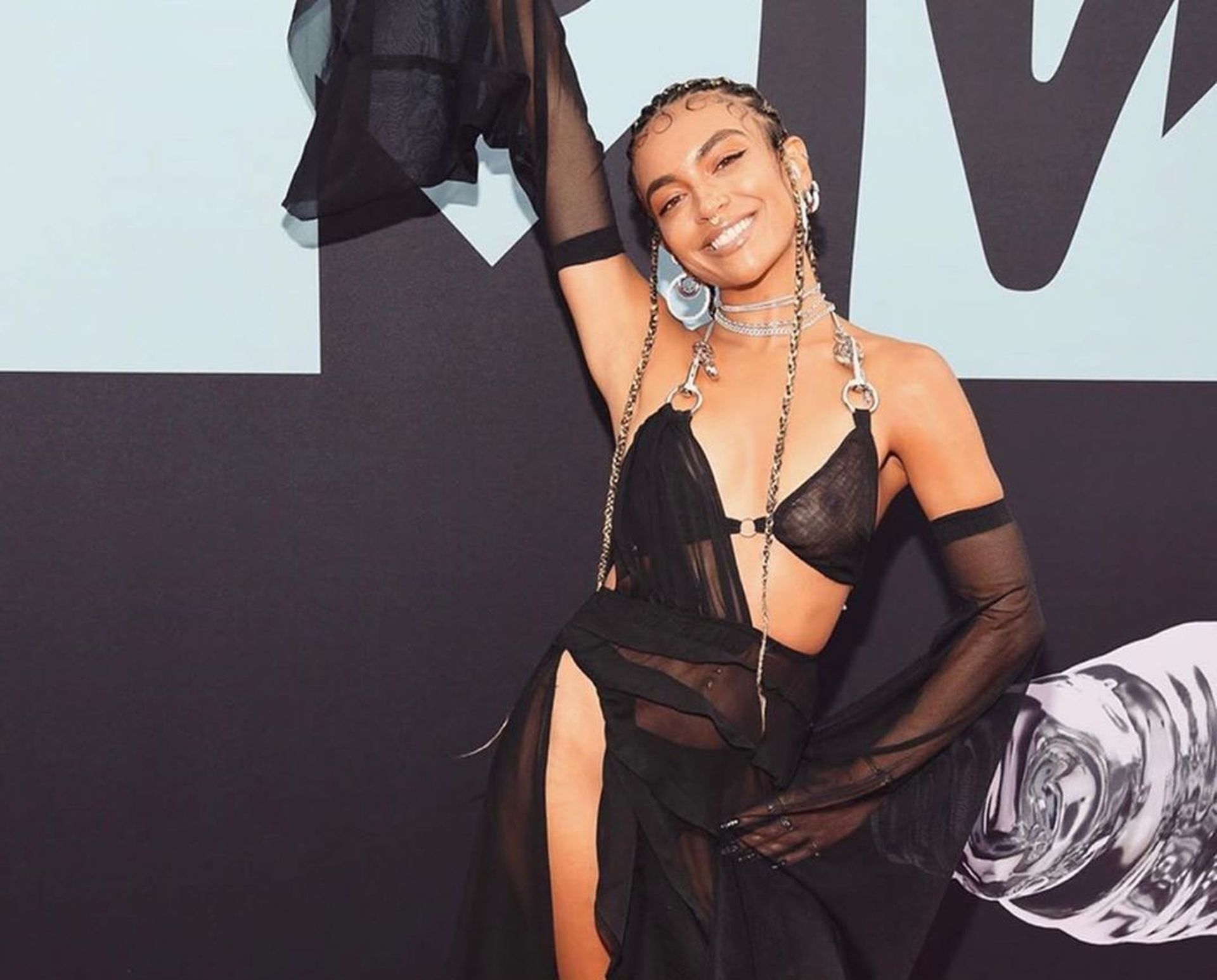 Bianca Leonor Quiñones (QUIÑ) and 6lack were seen at the MTV Video Music Awards in New Jersey, 08/26/2019. The 21-year-old soul singer/songwriter/producer showed off her small tits, wearing a see-through black dress.
