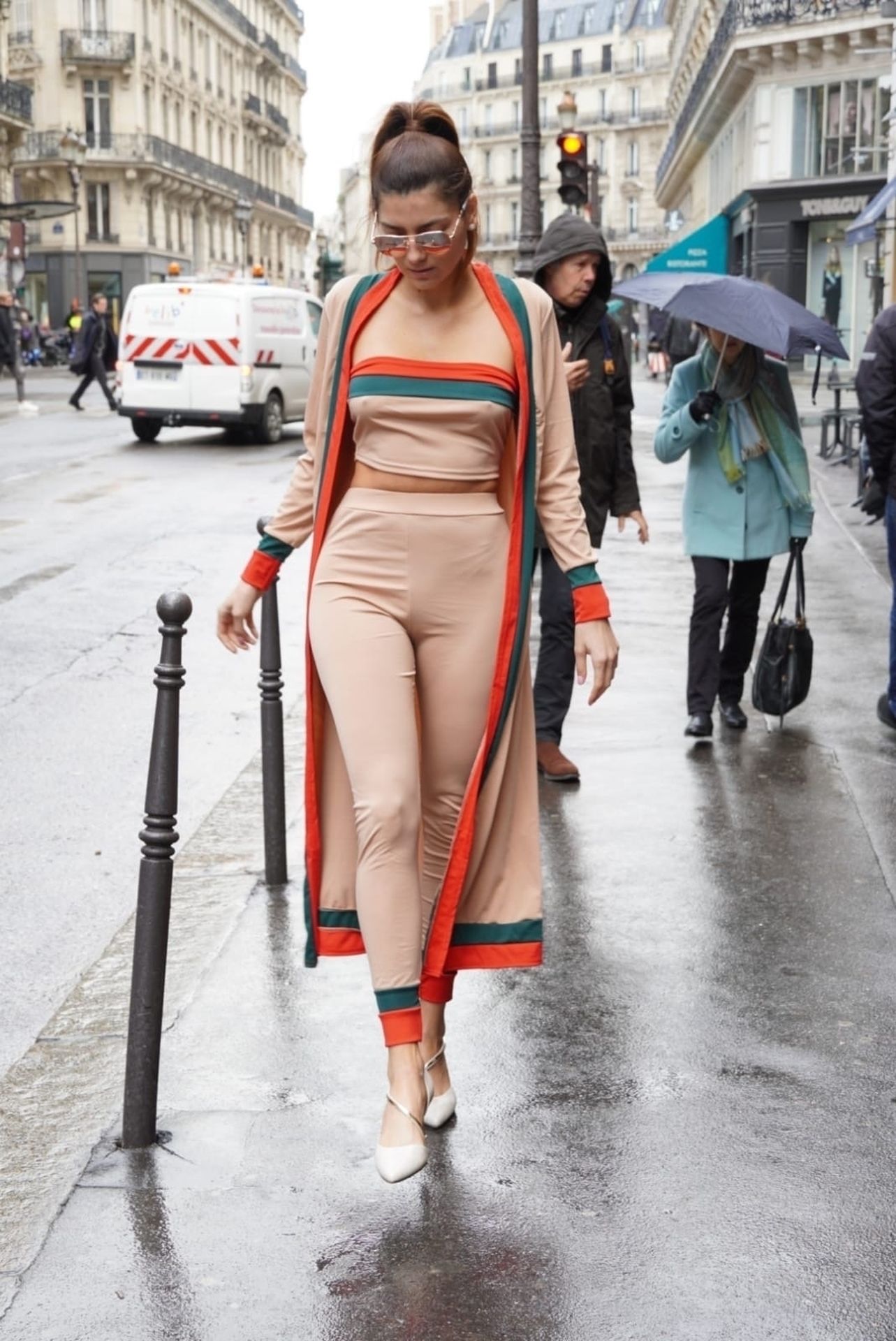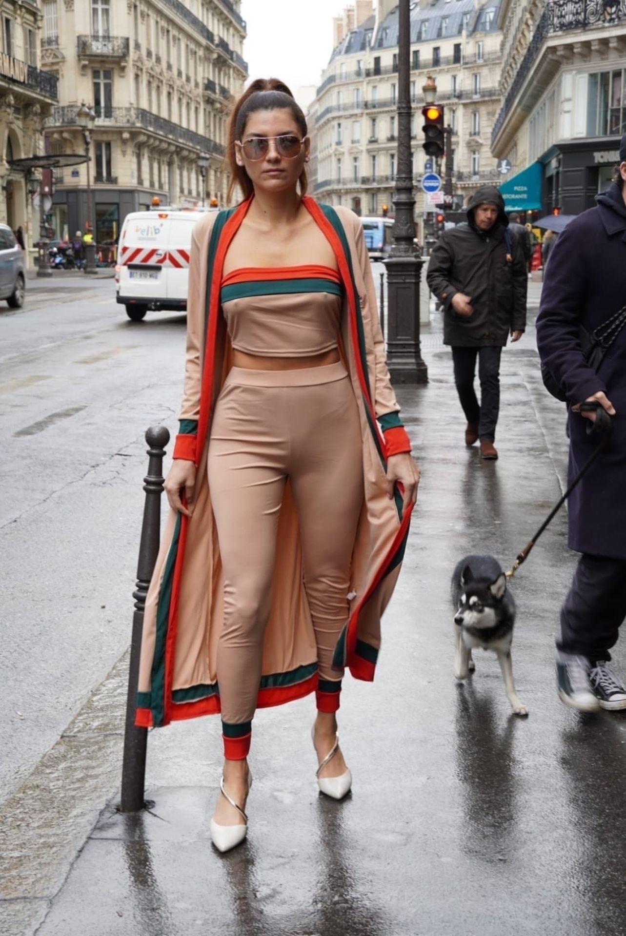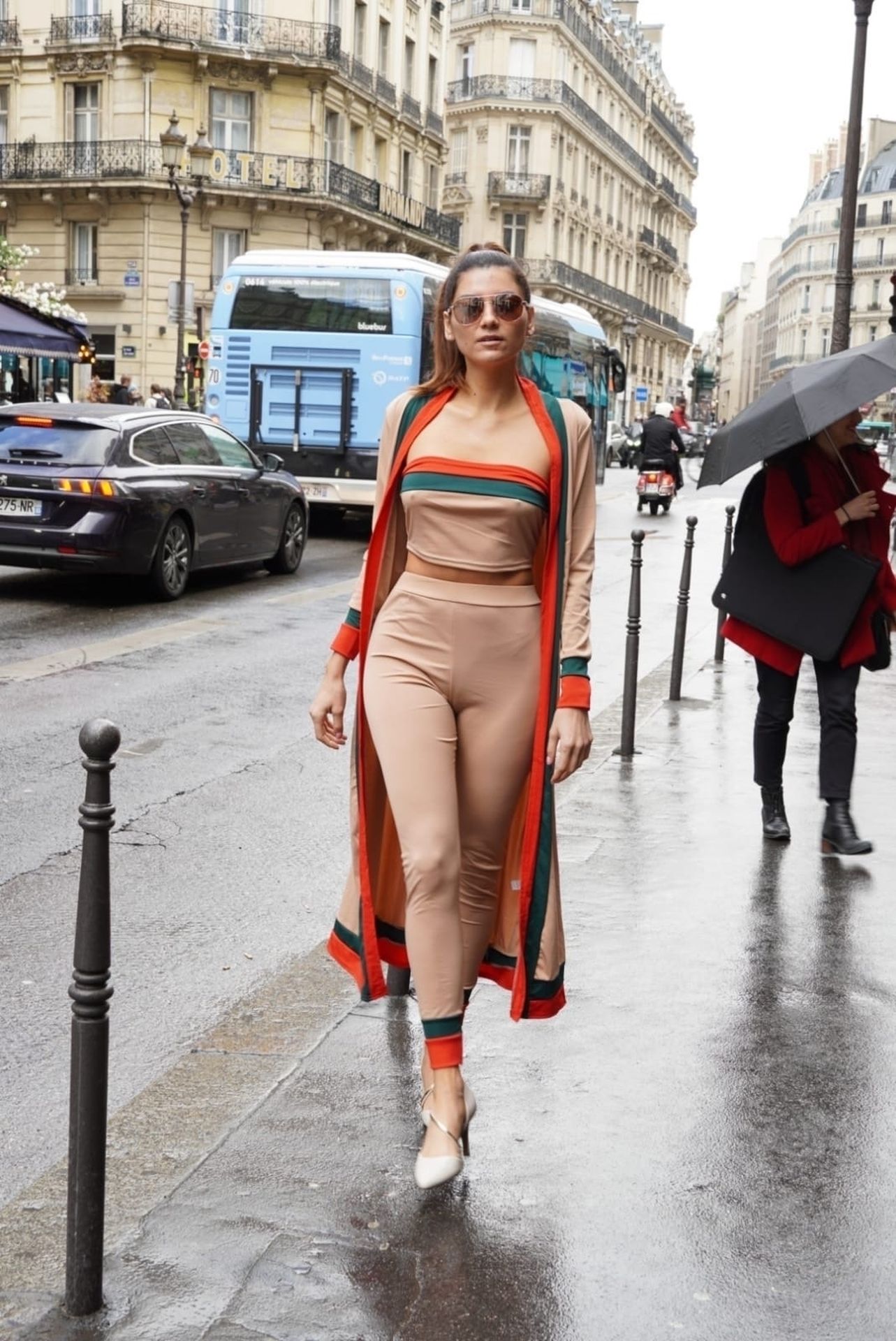 Actress Blanca Blanco (39) strikes a pose for Paris Fashion Week, 03/01/2020. She was posing outside without a bra.