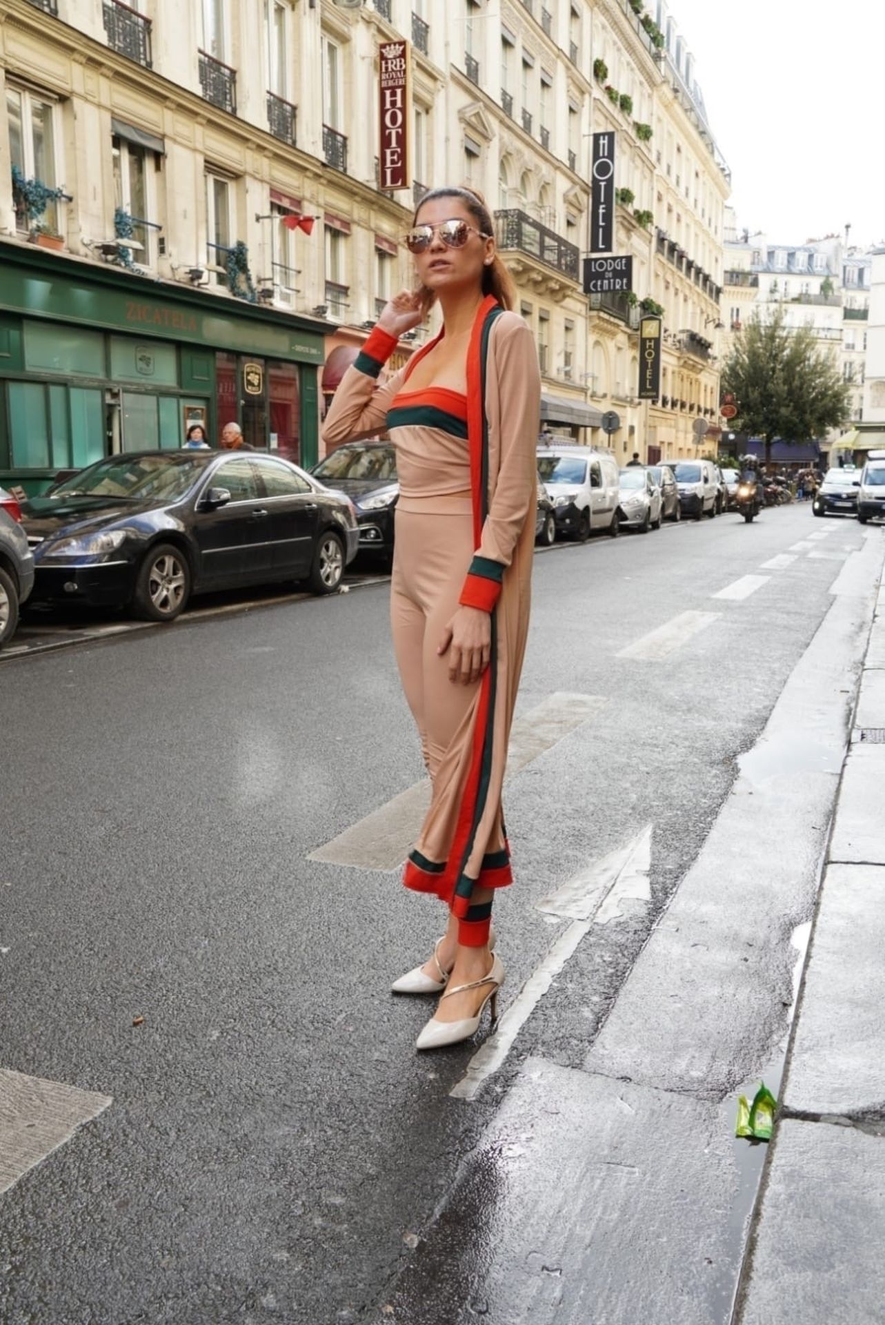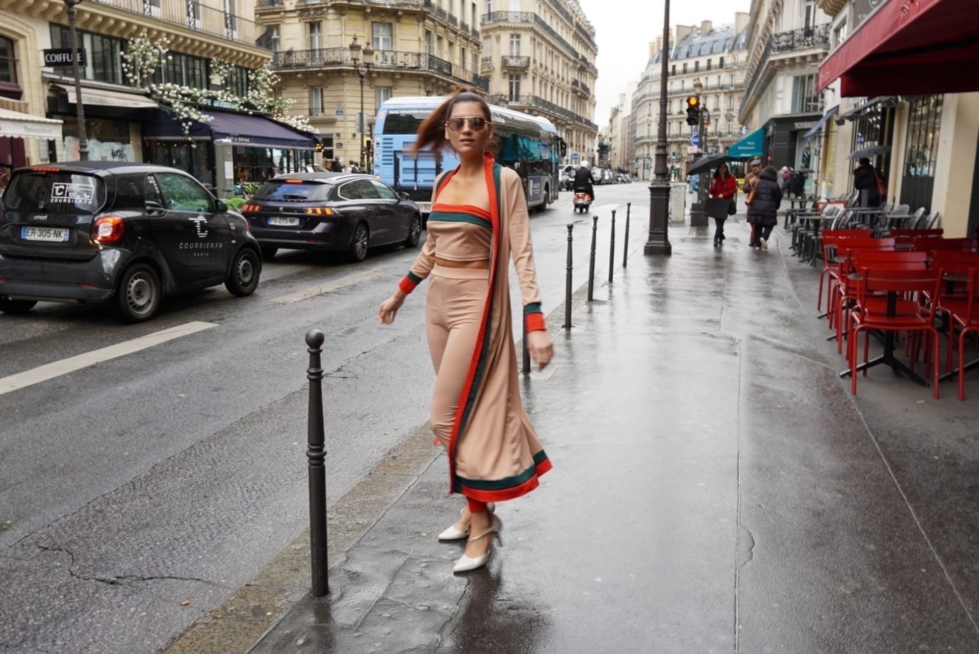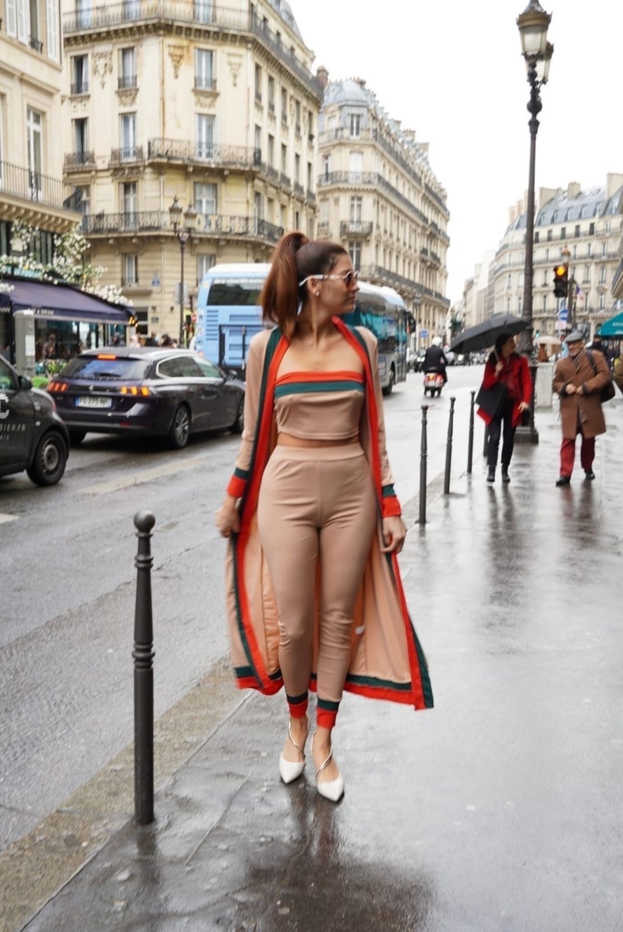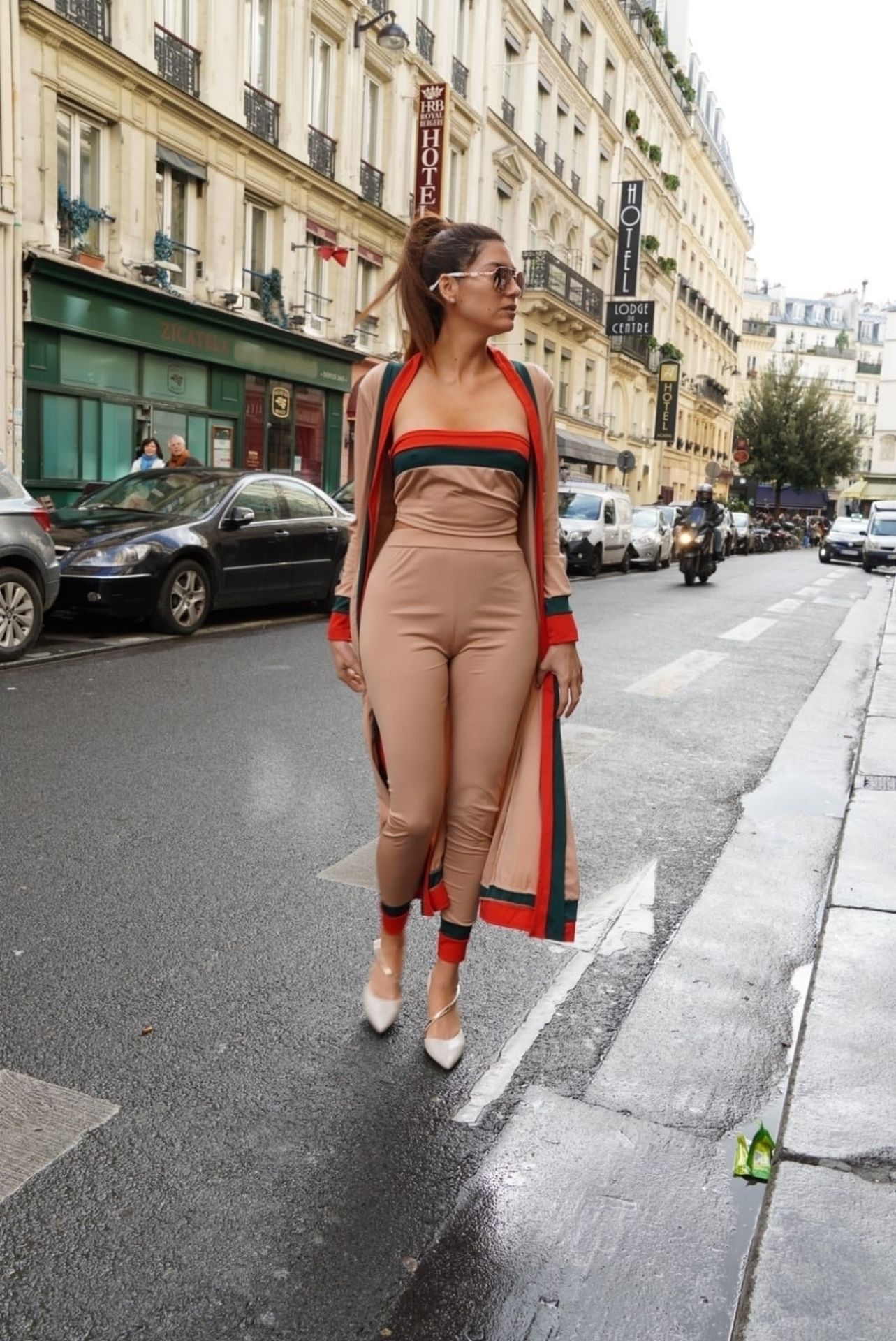 Actress Blanca Blanco (39) strikes a pose for Paris Fashion Week, 03/01/2020. She was posing outside without a bra.