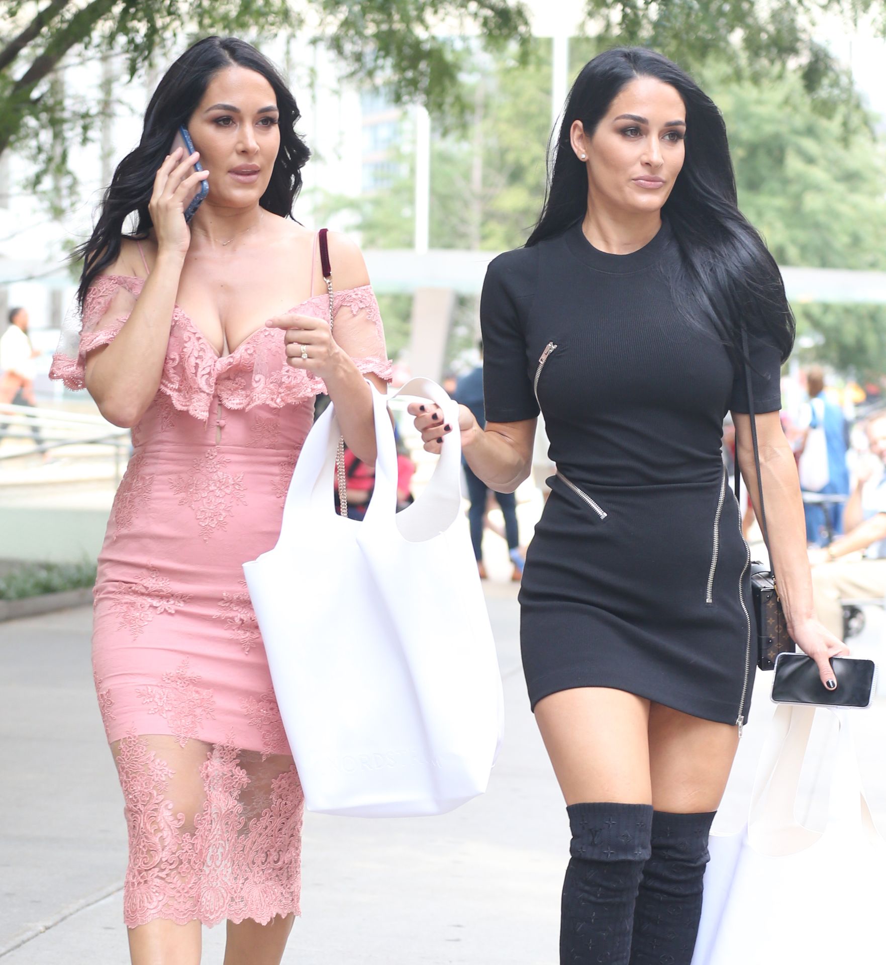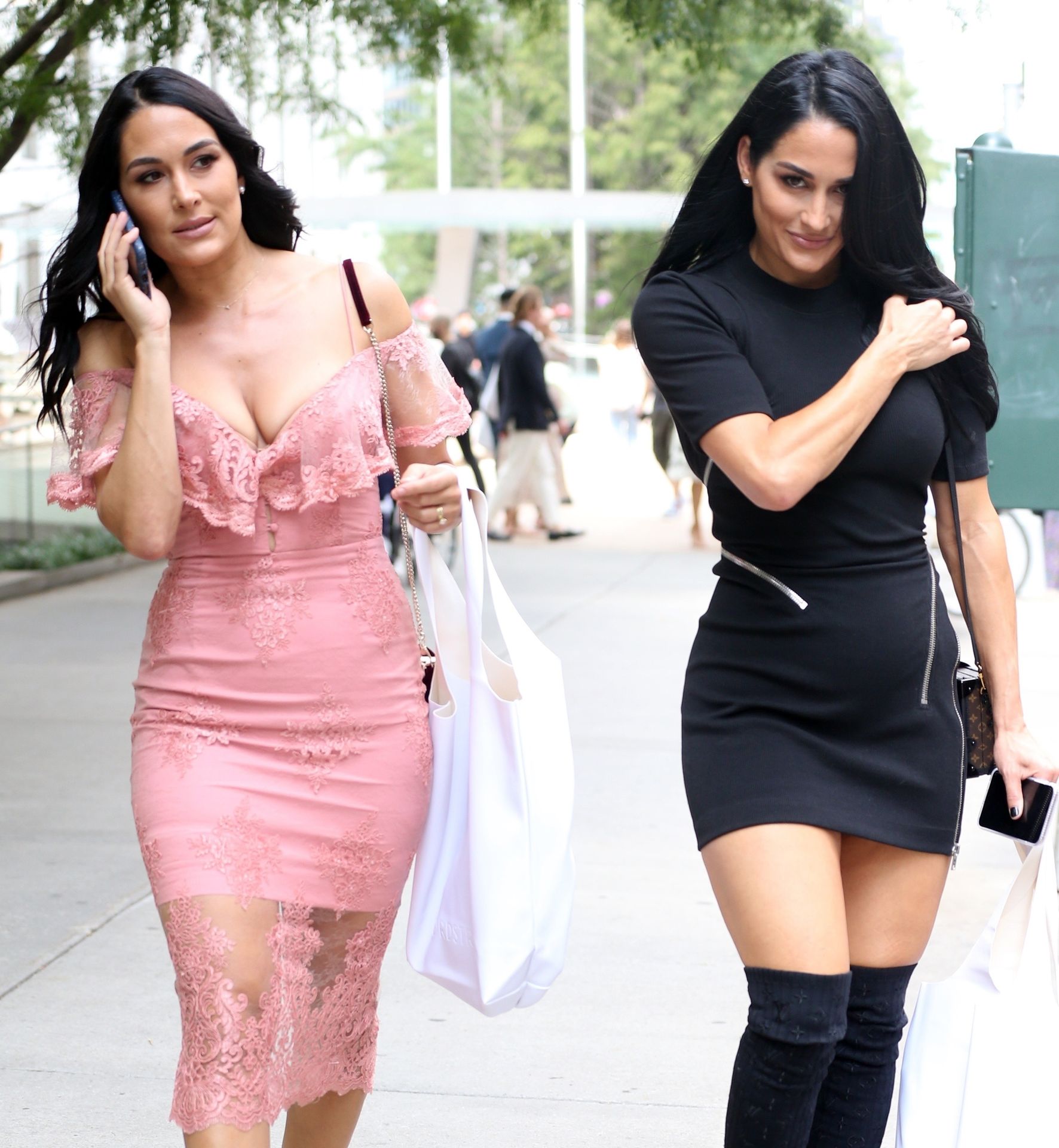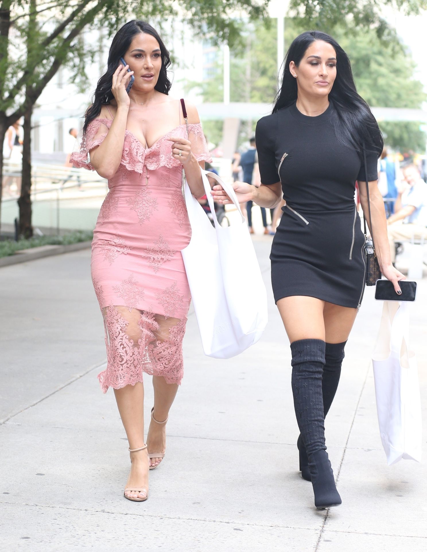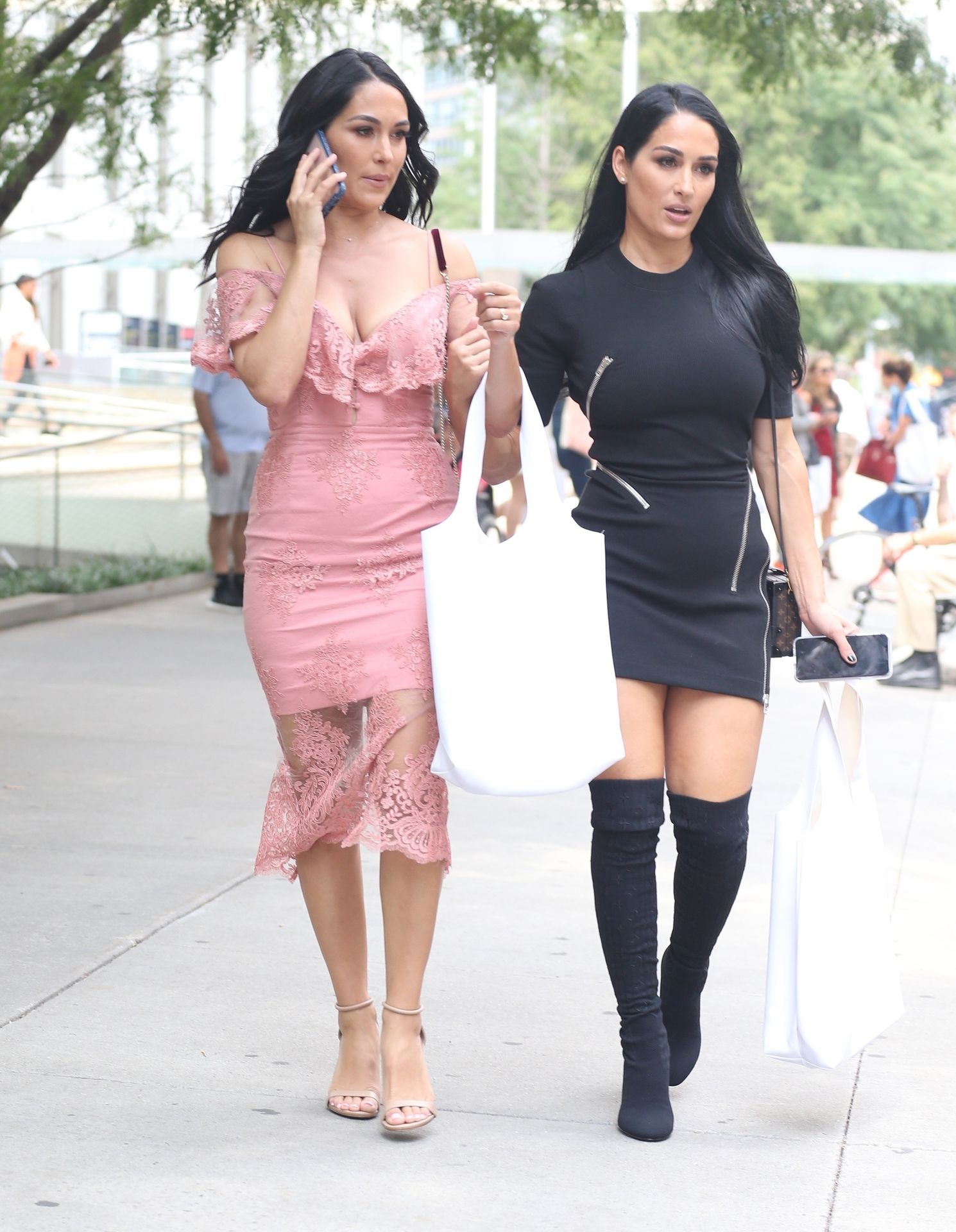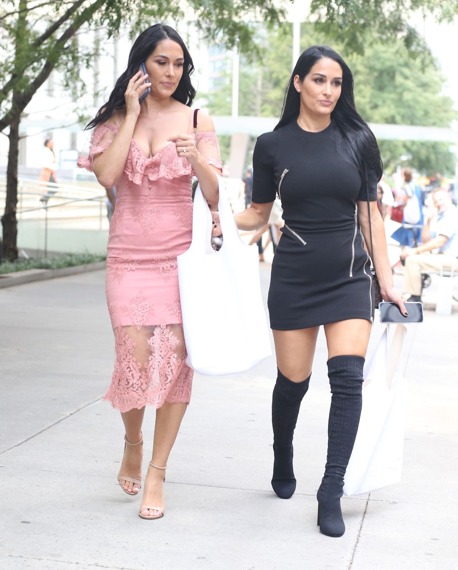 Reality TV Stars Nikki and Brie Bella attend FIT Fashion Show in New York, 09/04/2019. Nikki showed off her pokies, wearing a black dress, Brie flaunted her sexy legs and cleavage.