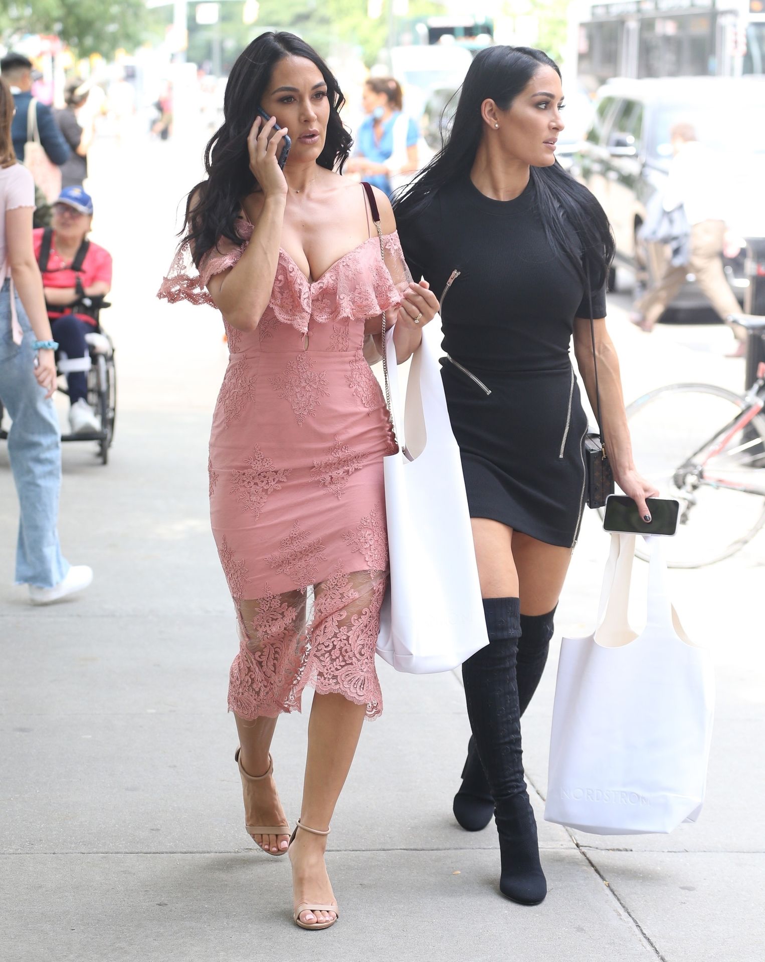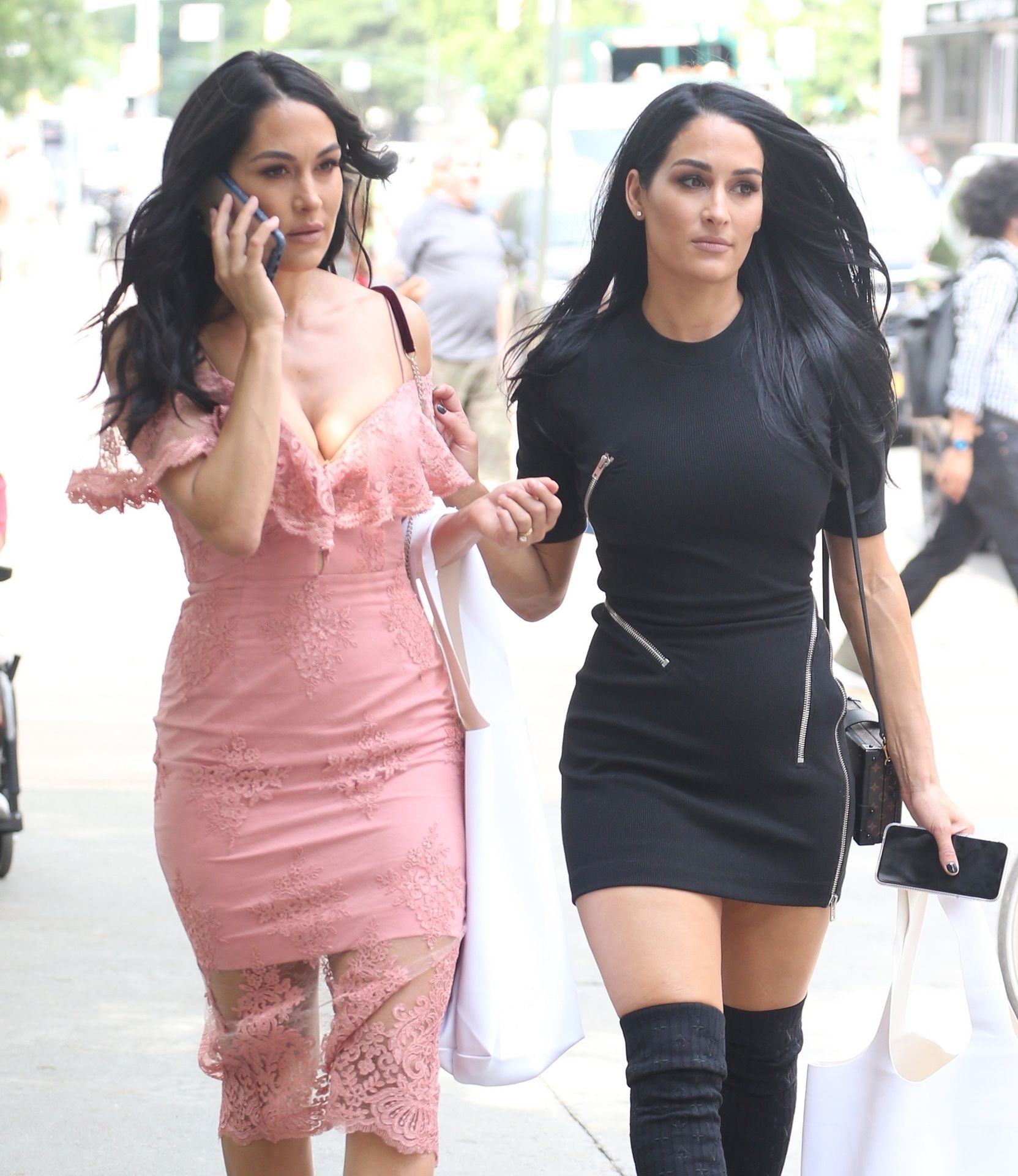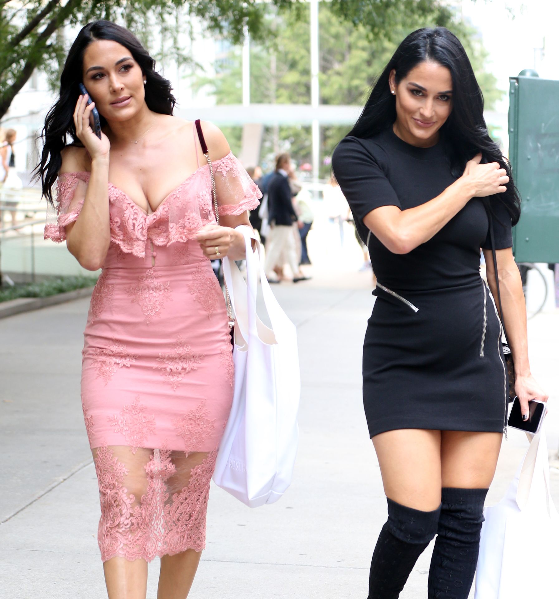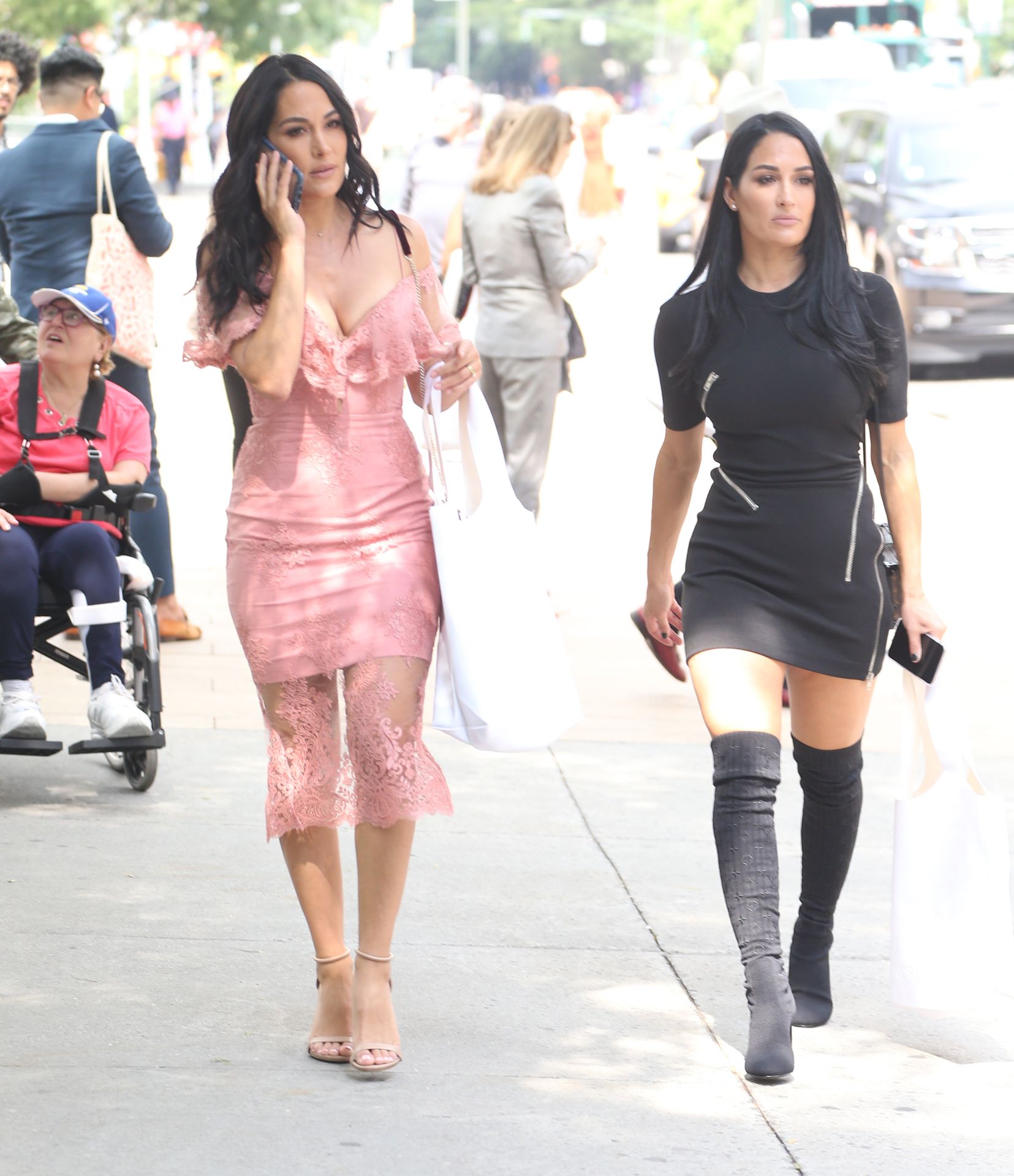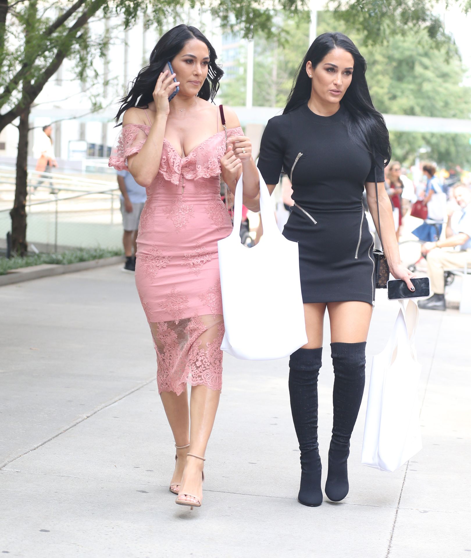 Reality TV Stars Nikki and Brie Bella attend FIT Fashion Show in New York, 09/04/2019. Nikki showed off her pokies, wearing a black dress, Brie flaunted her sexy legs and cleavage.