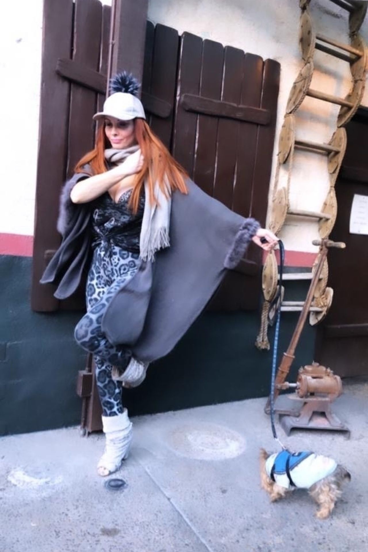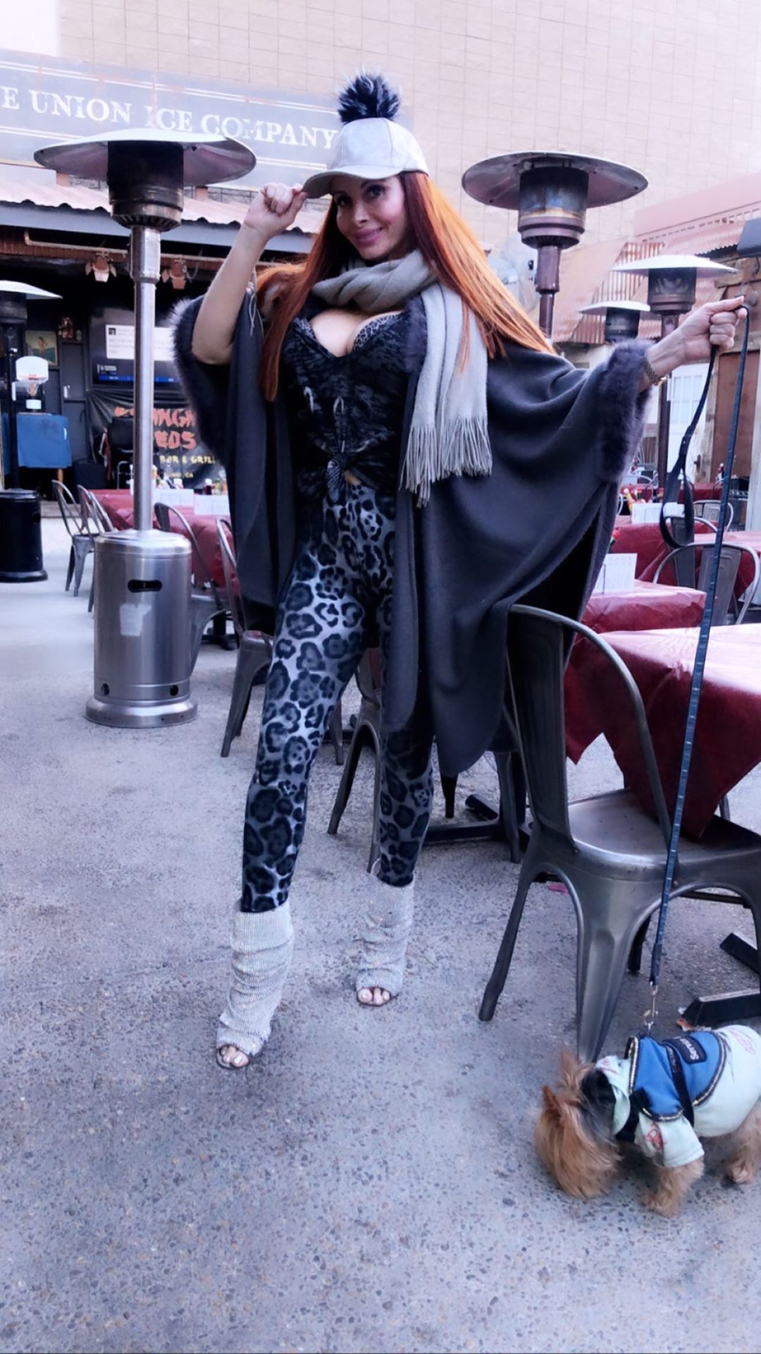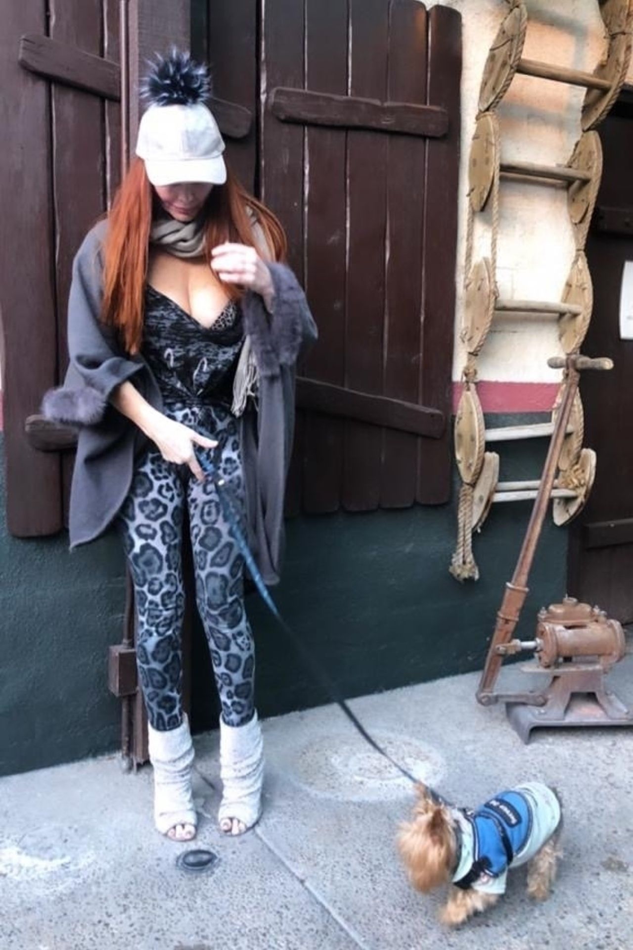 Actress Phoebe Price takes her dog for a walk in Beverly Hills, 02/03/2020. This woman continues in spite of everything.
