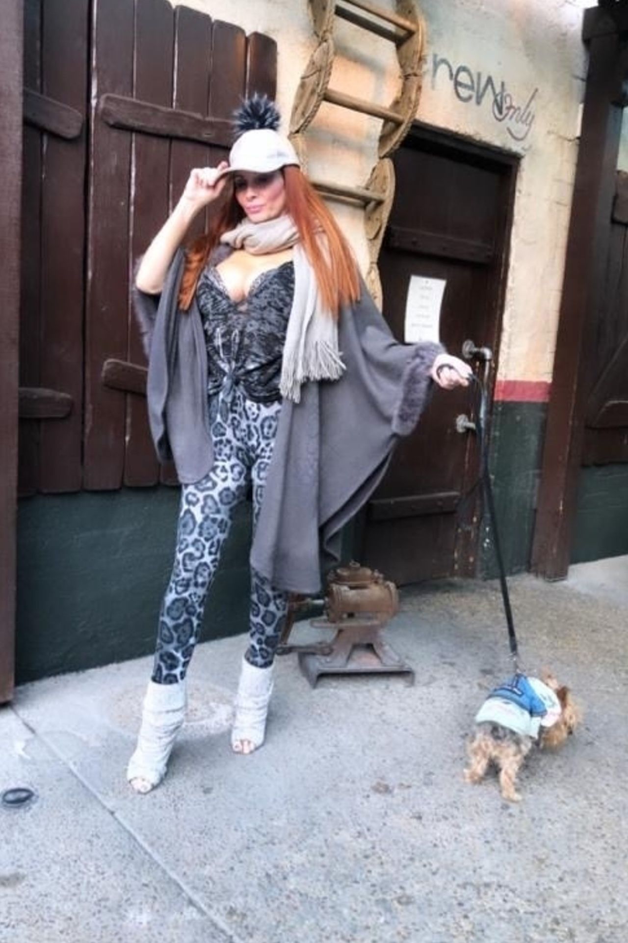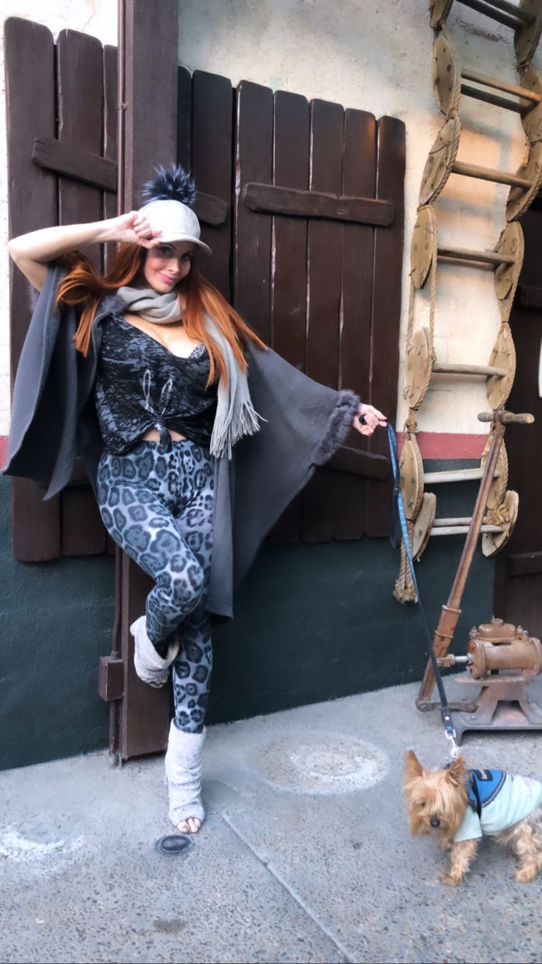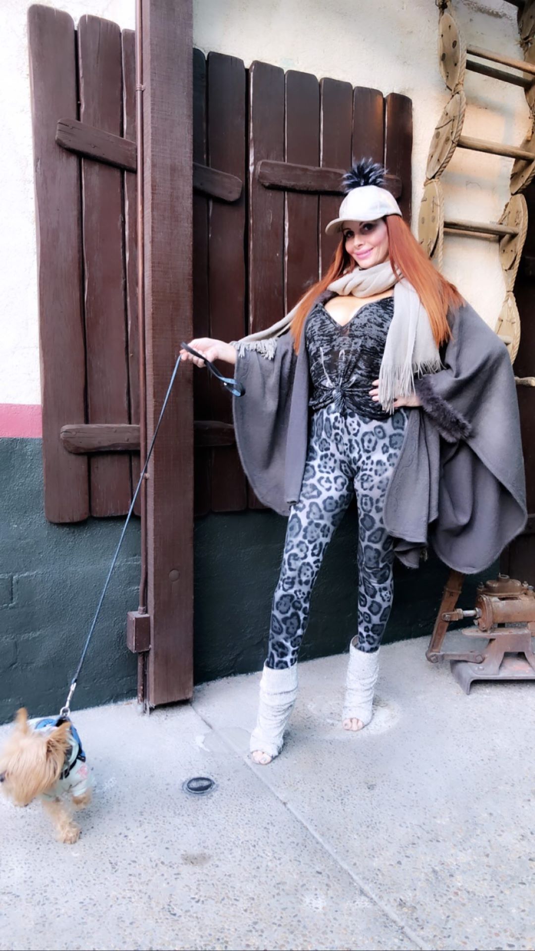 Actress Phoebe Price takes her dog for a walk in Beverly Hills, 02/03/2020. This woman continues in spite of everything.