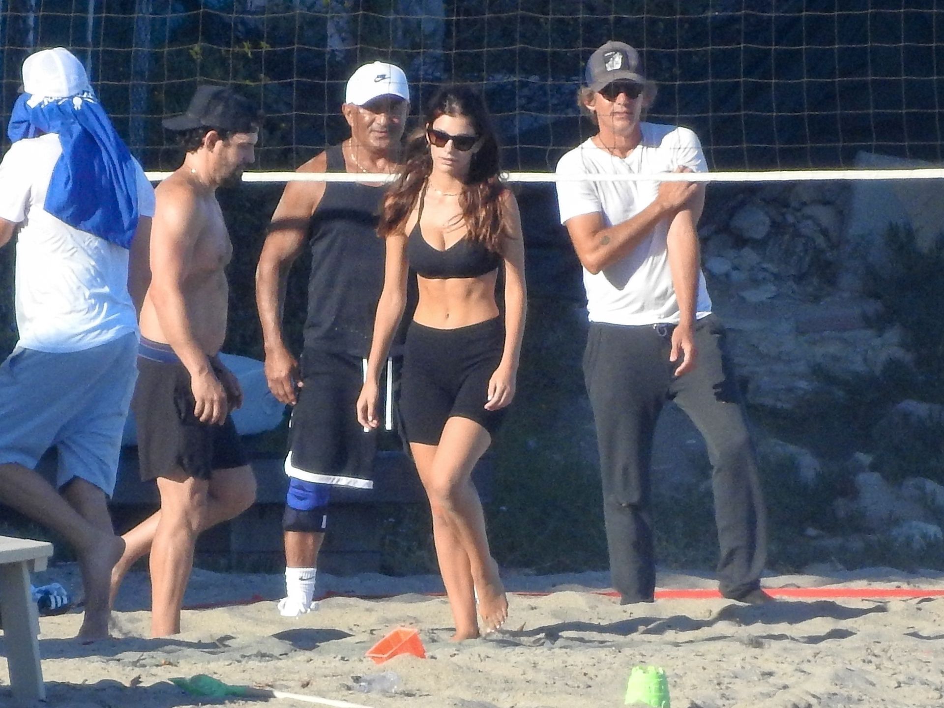 Academy Award winner Leonardo DiCaprio, his sexy girlfriend Camila Morrone, and A-lister duo Robin Thicke and April Love Geary, along with their little ones, spotted enjoying one of Leo’s favorite beach sports this weekend, a game of volleyball! Shot on 07/14/19.