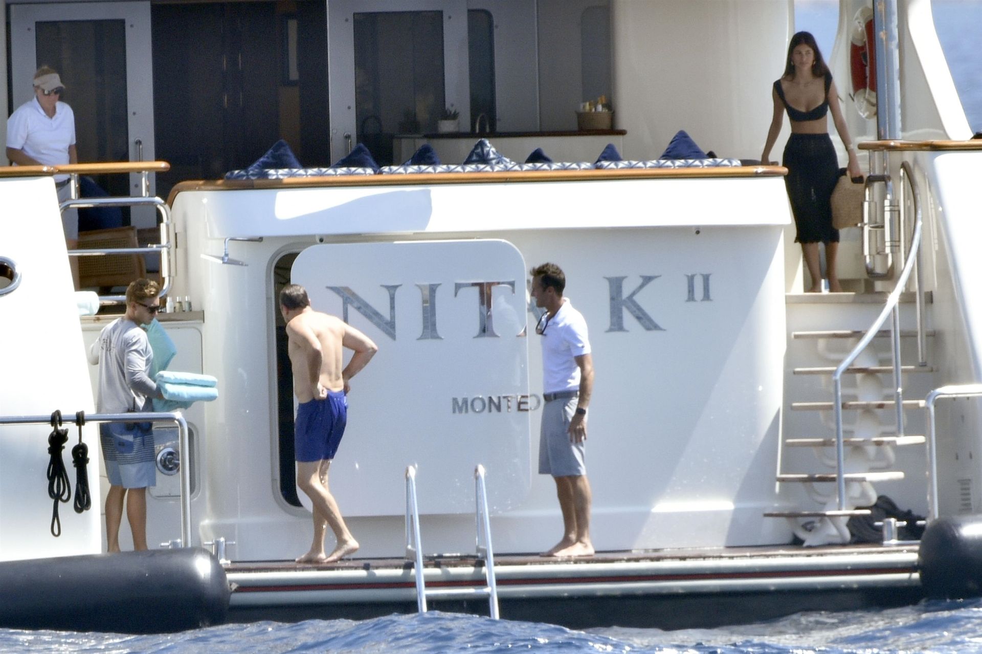Leo goes shirtless for a head-first dive from the deck of the boat. Also aboard the same yacht as Leo’s guests are Sean Penn and his girlfriend Leila George.