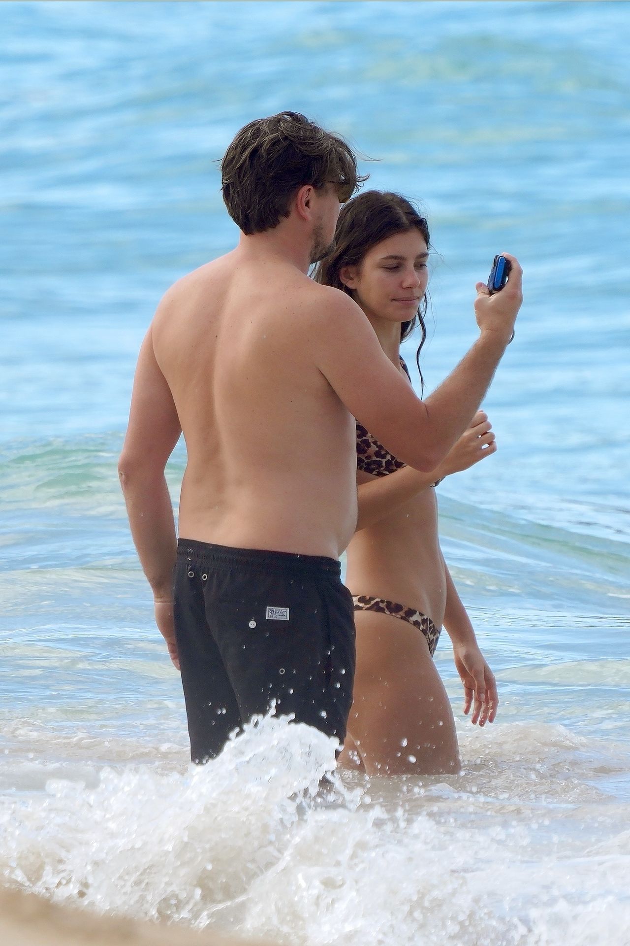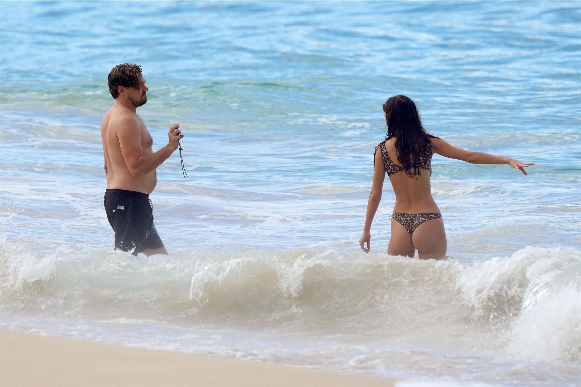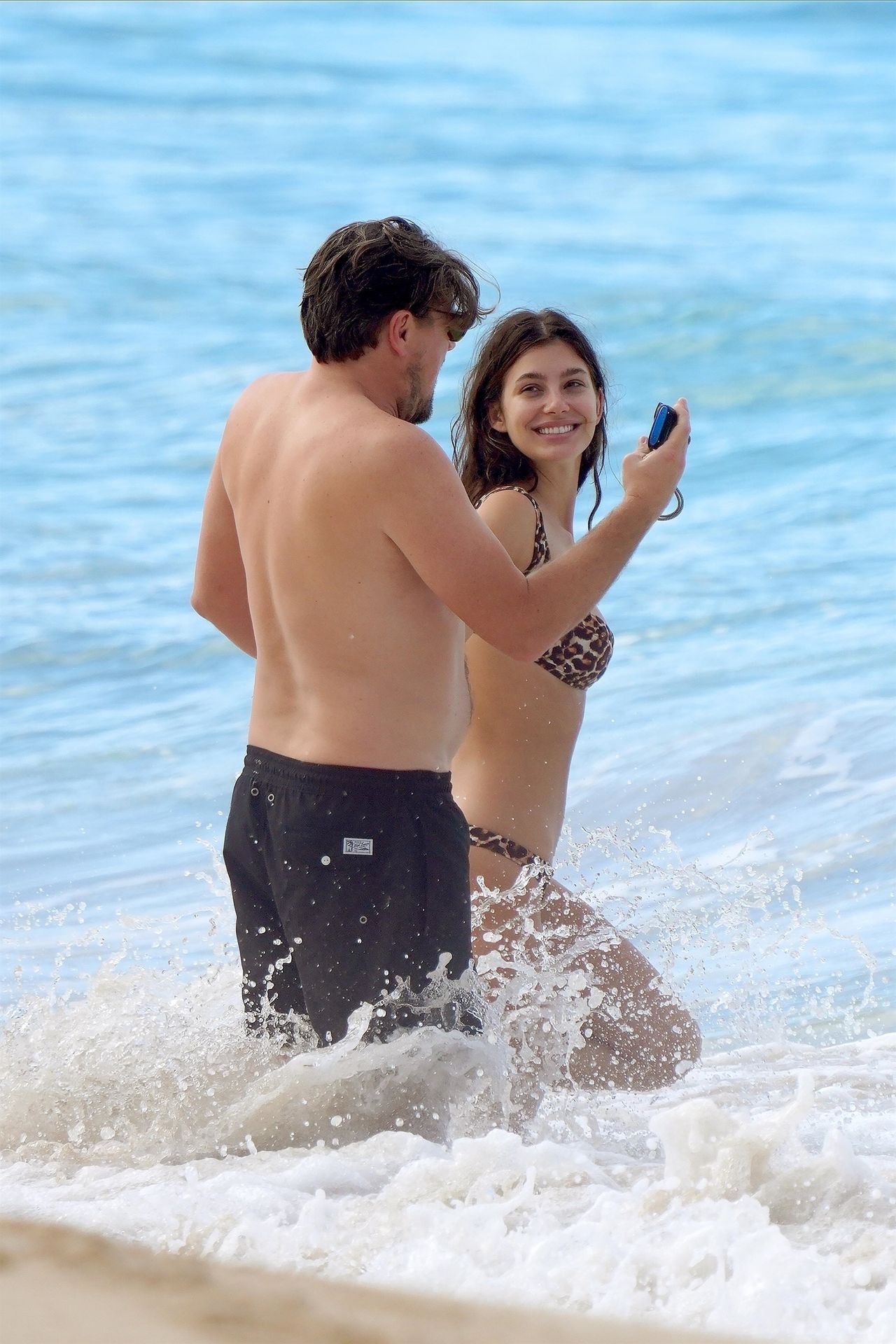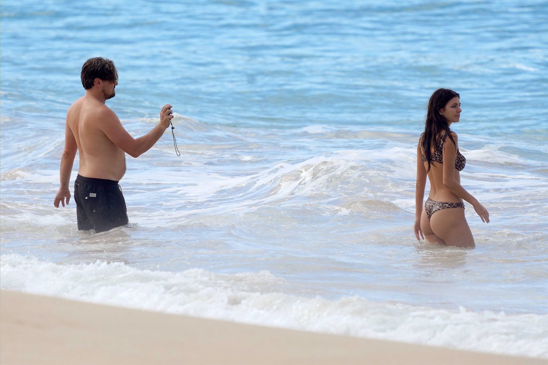 Leonardo Dicaprio and his girlfriend Camila Morrone enjoy a playful swim in the sea during NYE getaway in St. Barths, 12/31/2019.