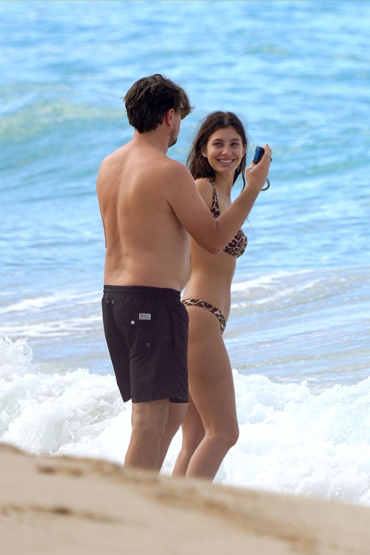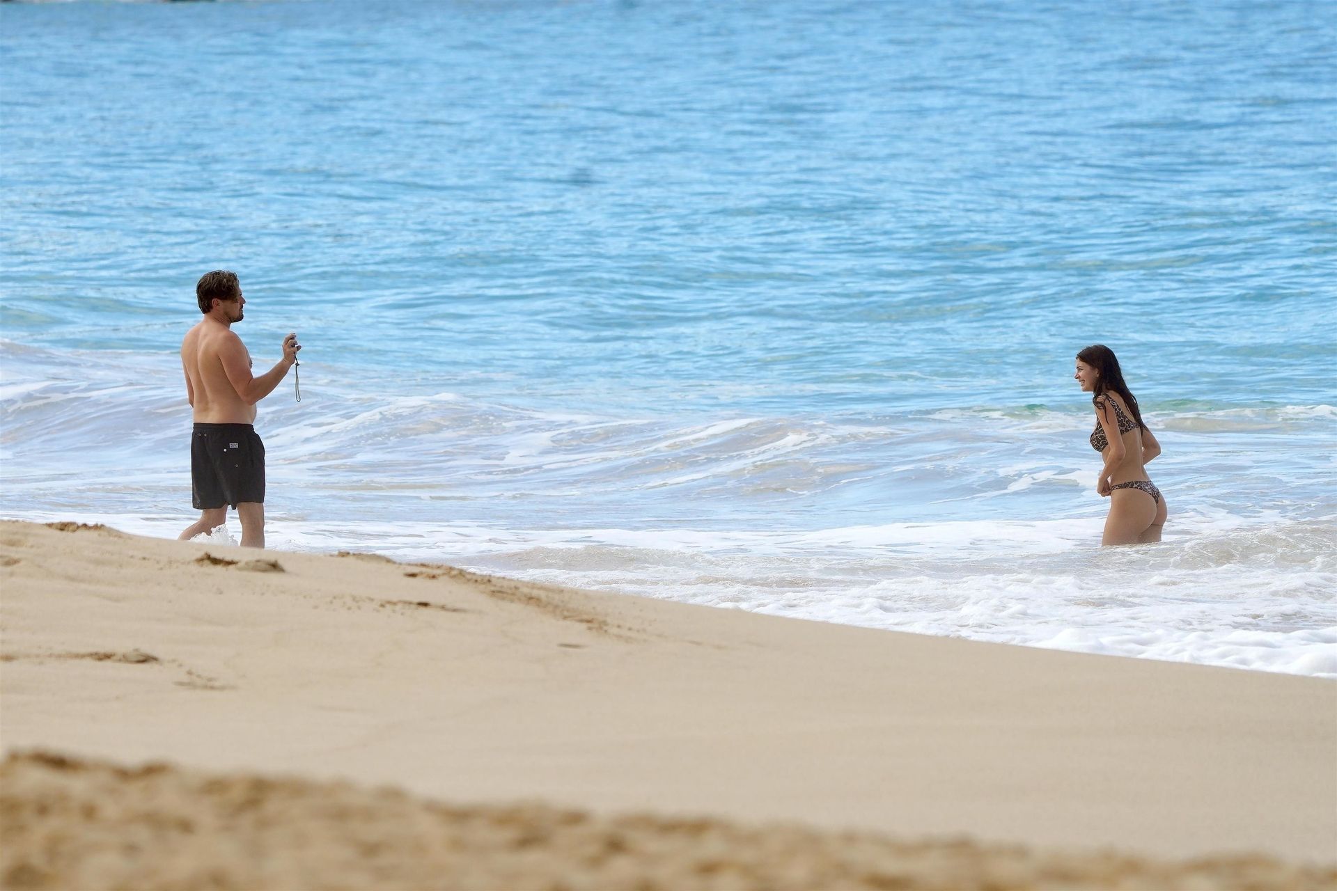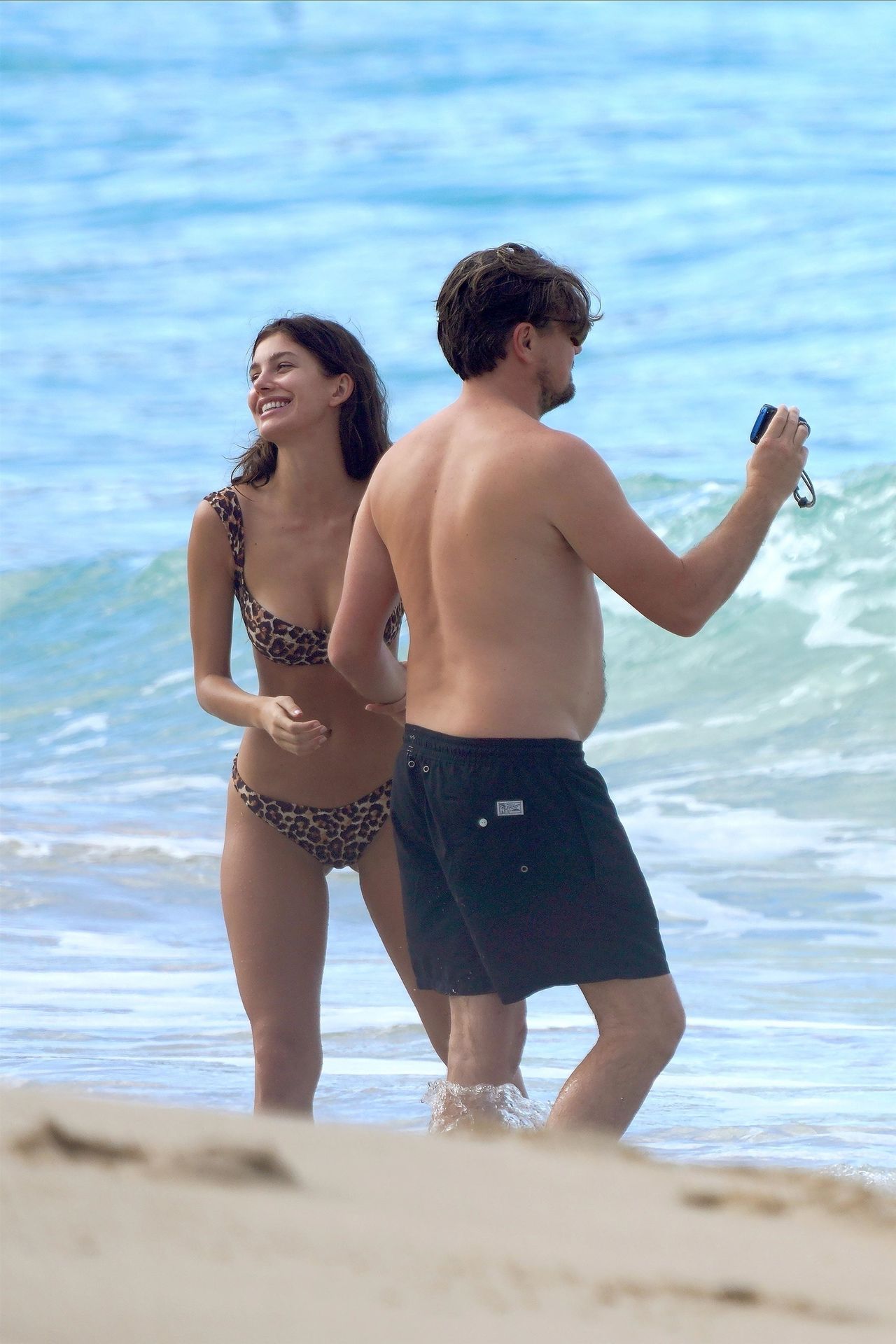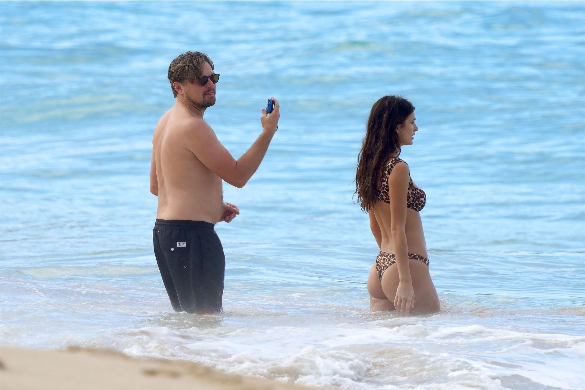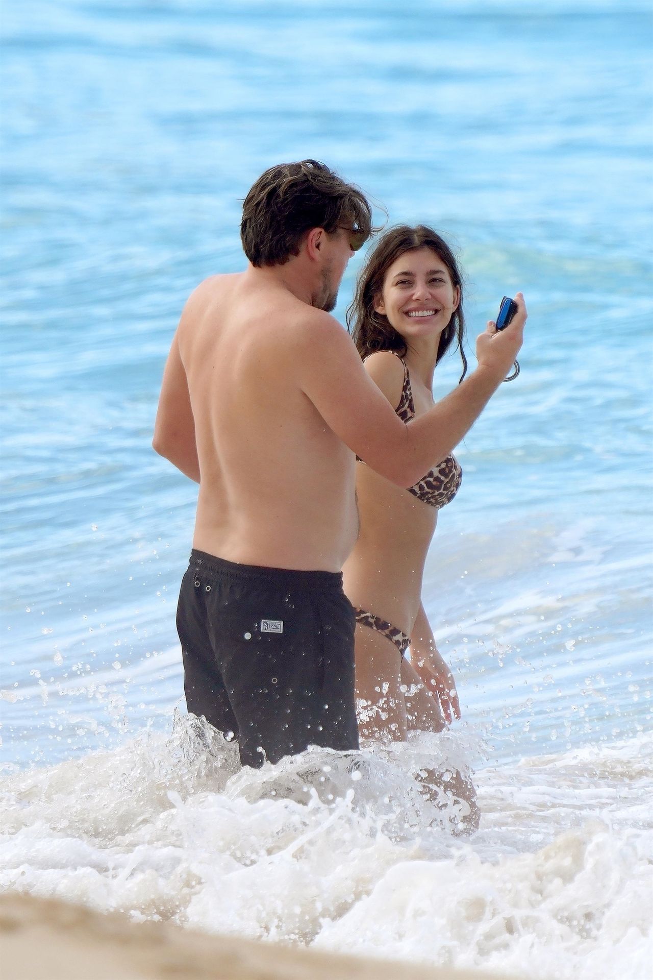 Leonardo Dicaprio and his girlfriend Camila Morrone enjoy a playful swim in the sea during NYE getaway in St. Barths, 12/31/2019.