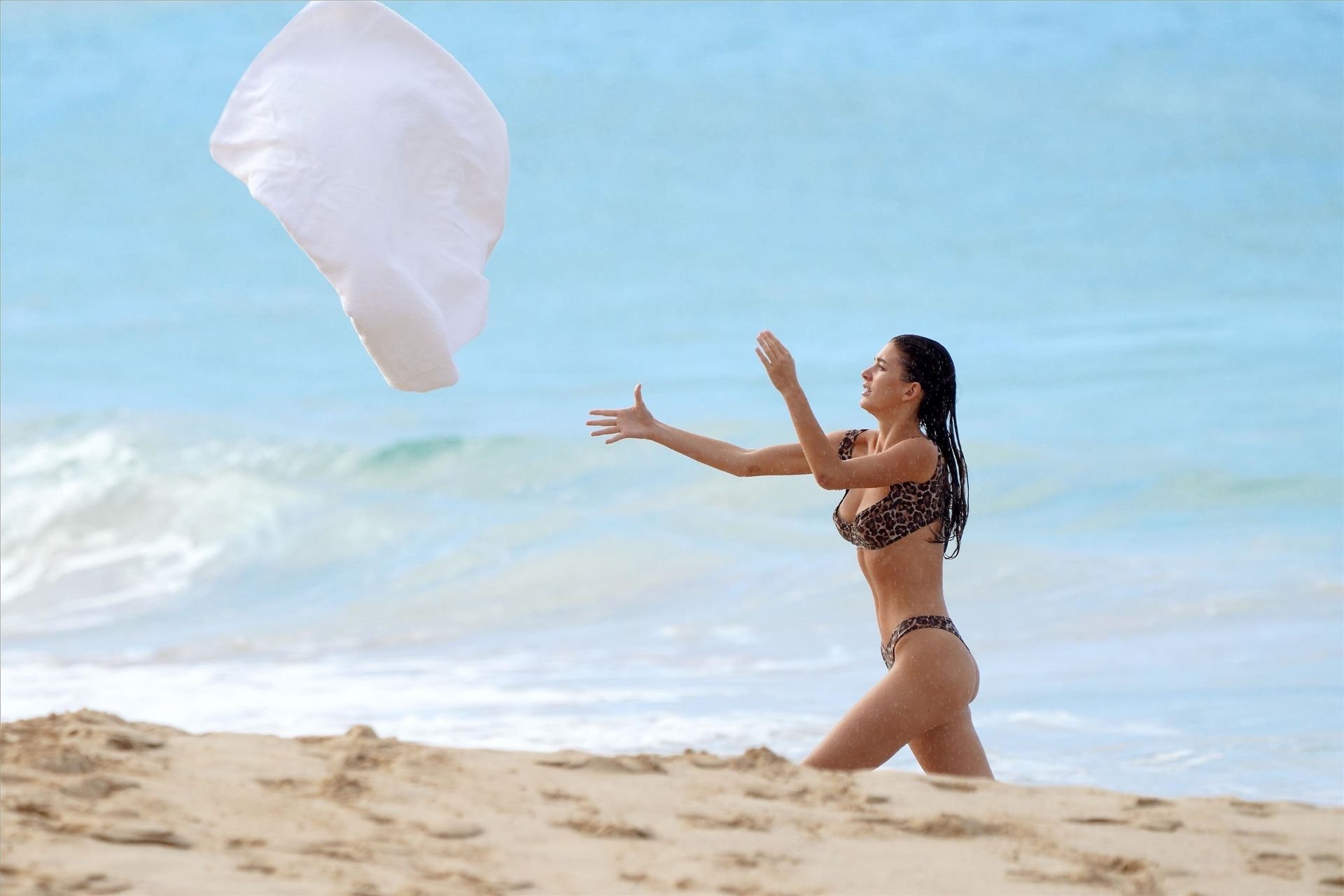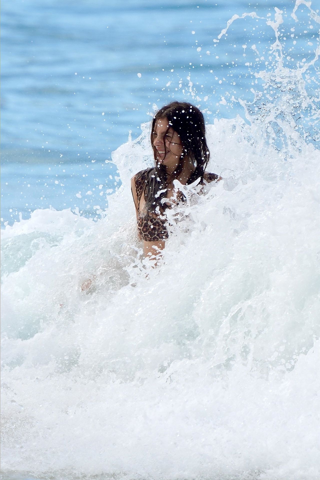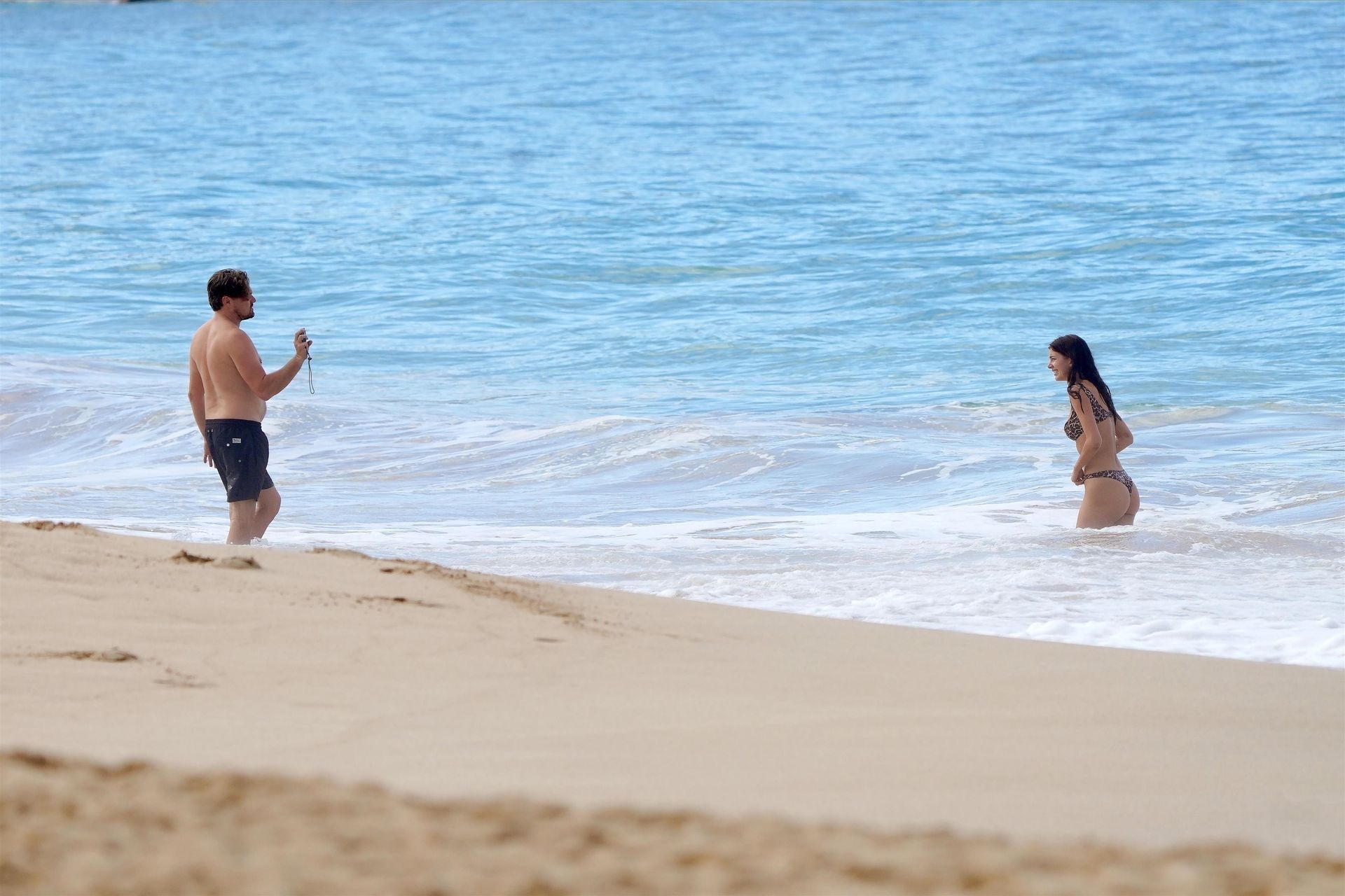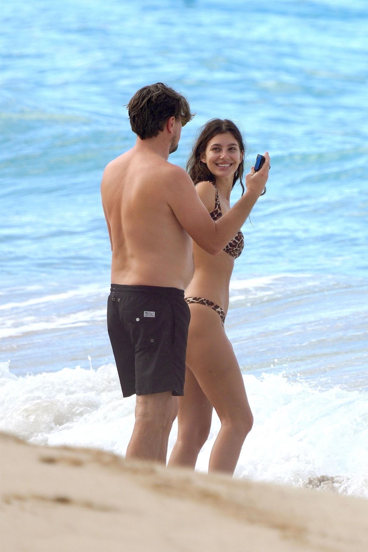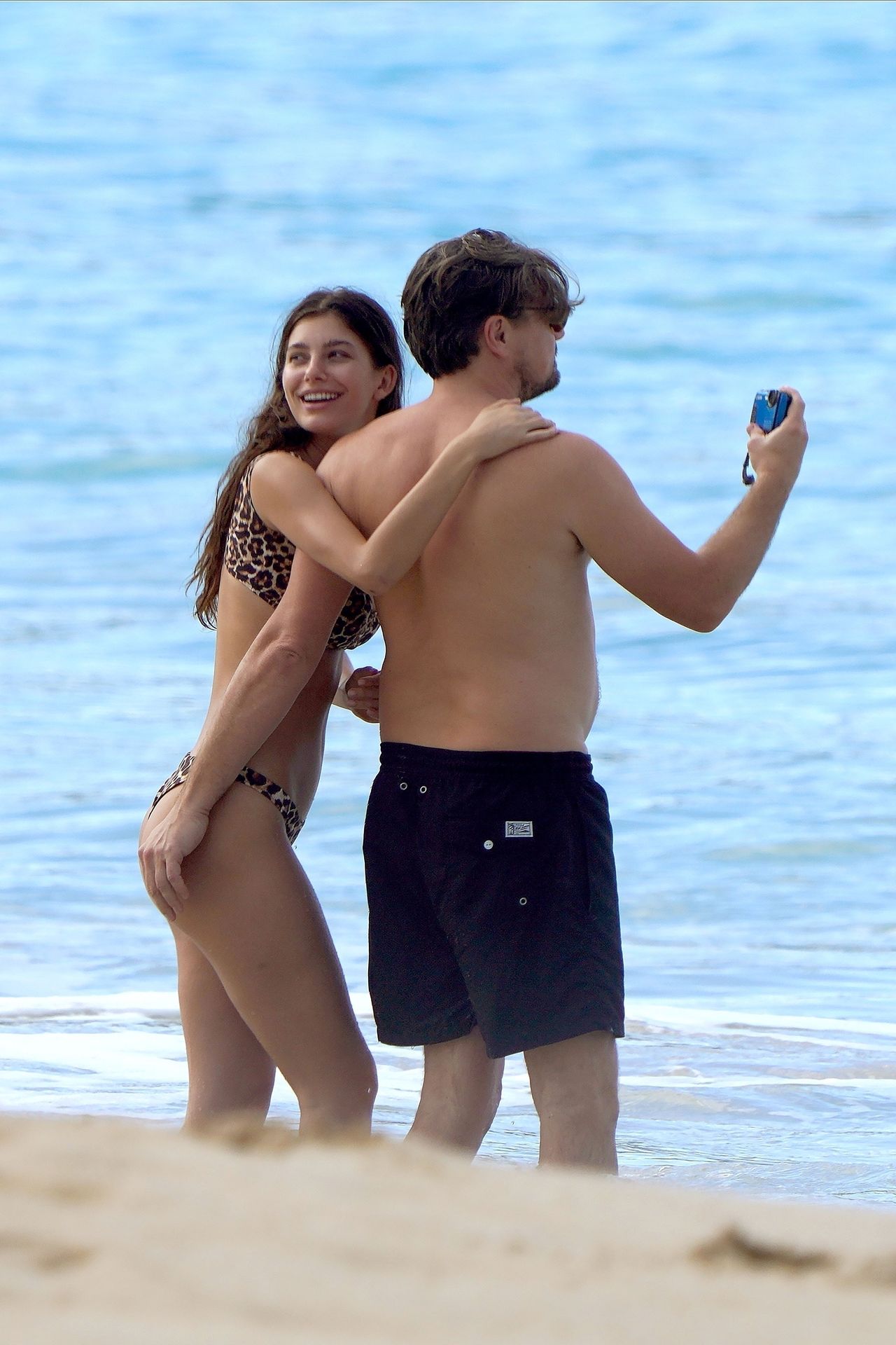 Leonardo Dicaprio and his girlfriend Camila Morrone enjoy a playful swim in the sea during NYE getaway in St. Barths, 12/31/2019.