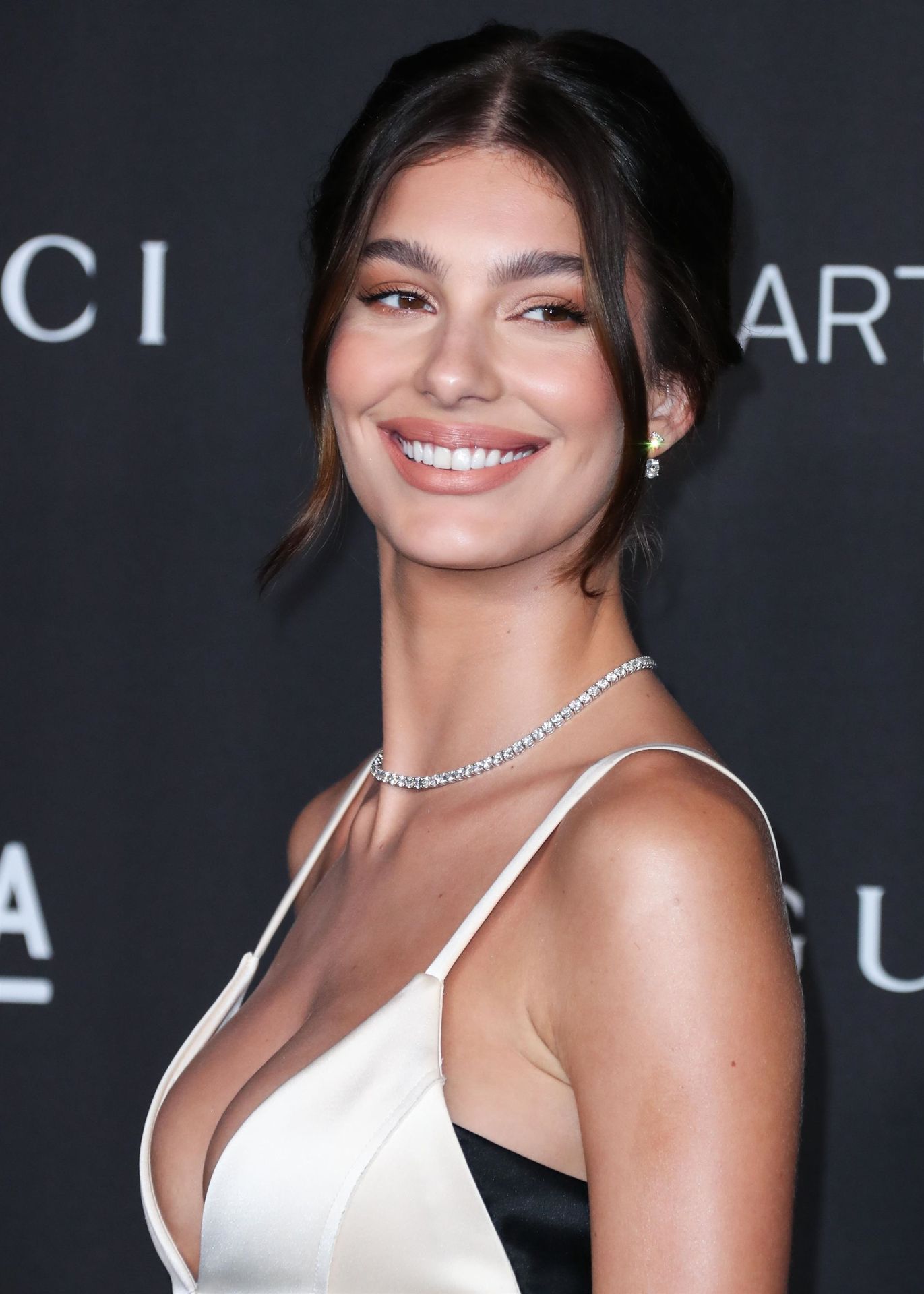 Model/actress Camila Morrone showed off her perfect cleavage, wearing a white dress at the LACMA Art and Film Gala 2019 at the Los Angeles County Museum of Art on November 2, 2019, in Los Angeles, California.
