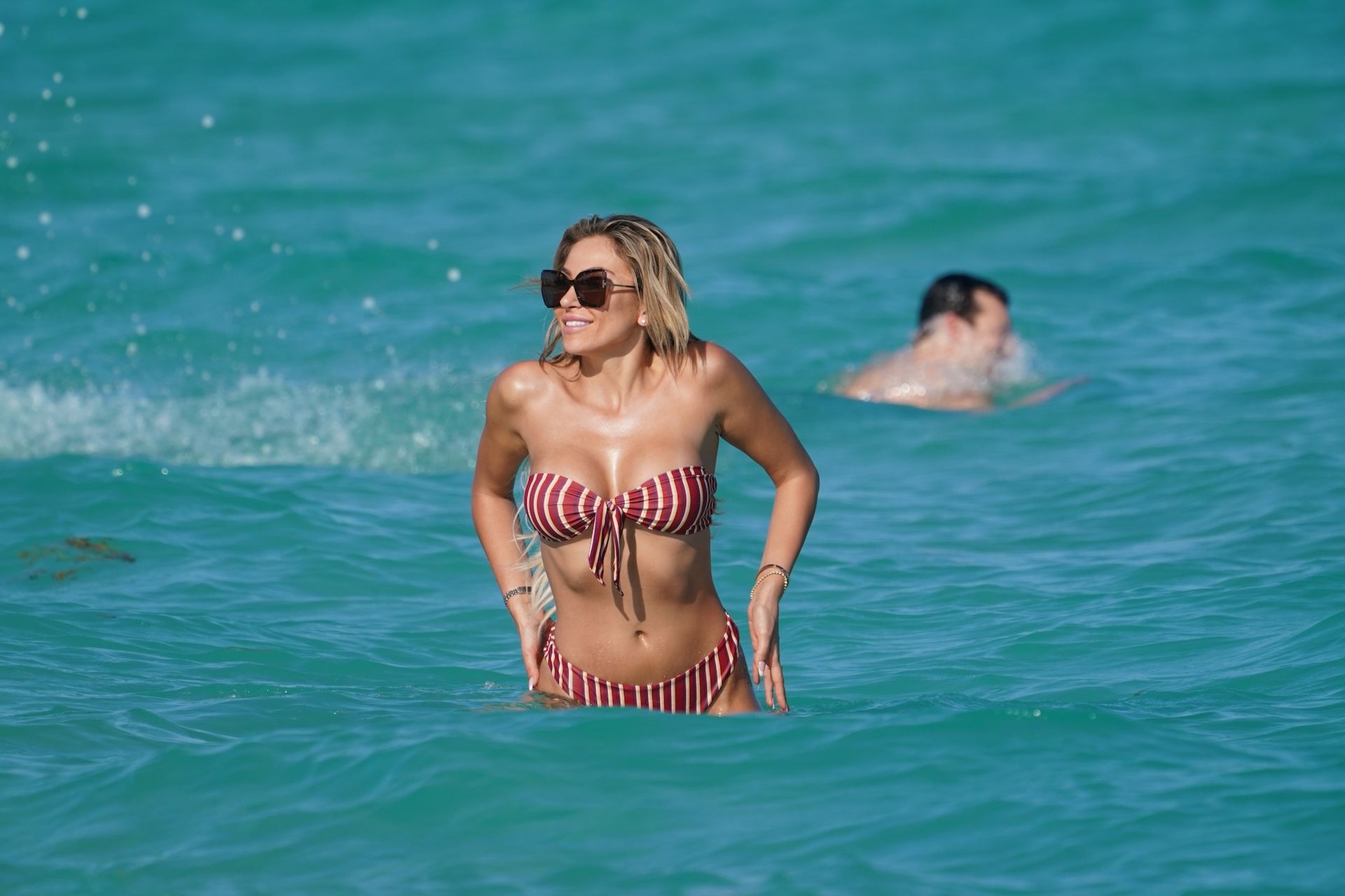 Canadian Playboy model Khloe Terae in a red bikini at the beach in Miami ahead of SuperBowl LIV, 01/28/2020.
