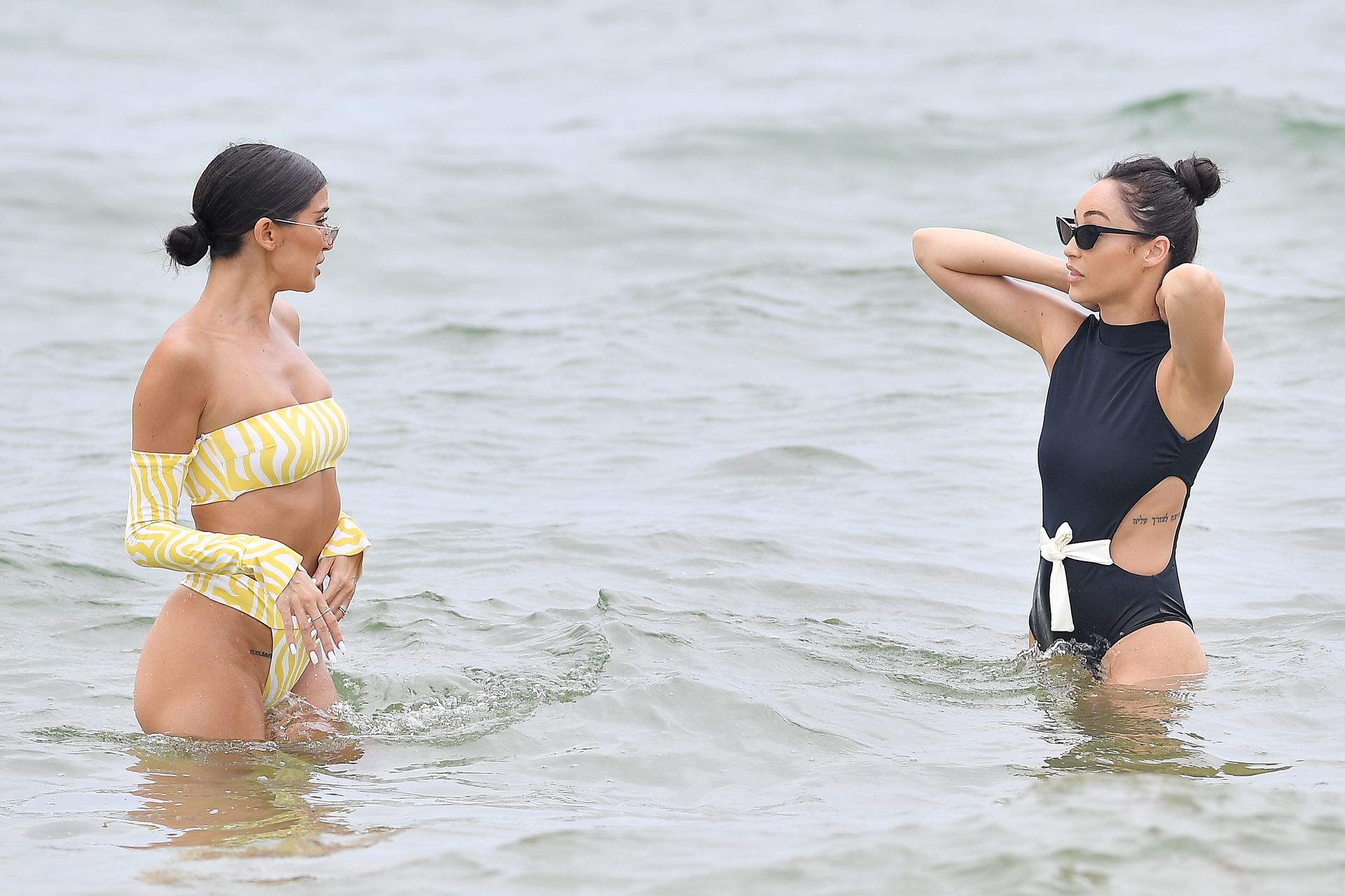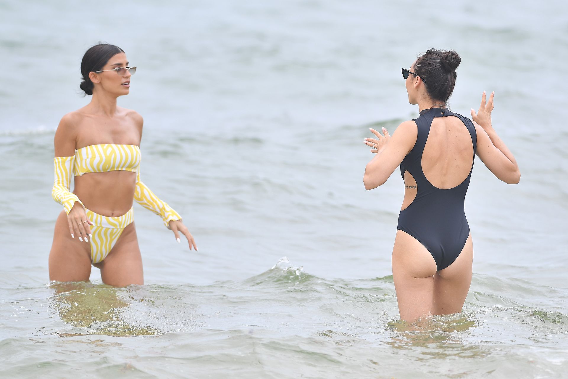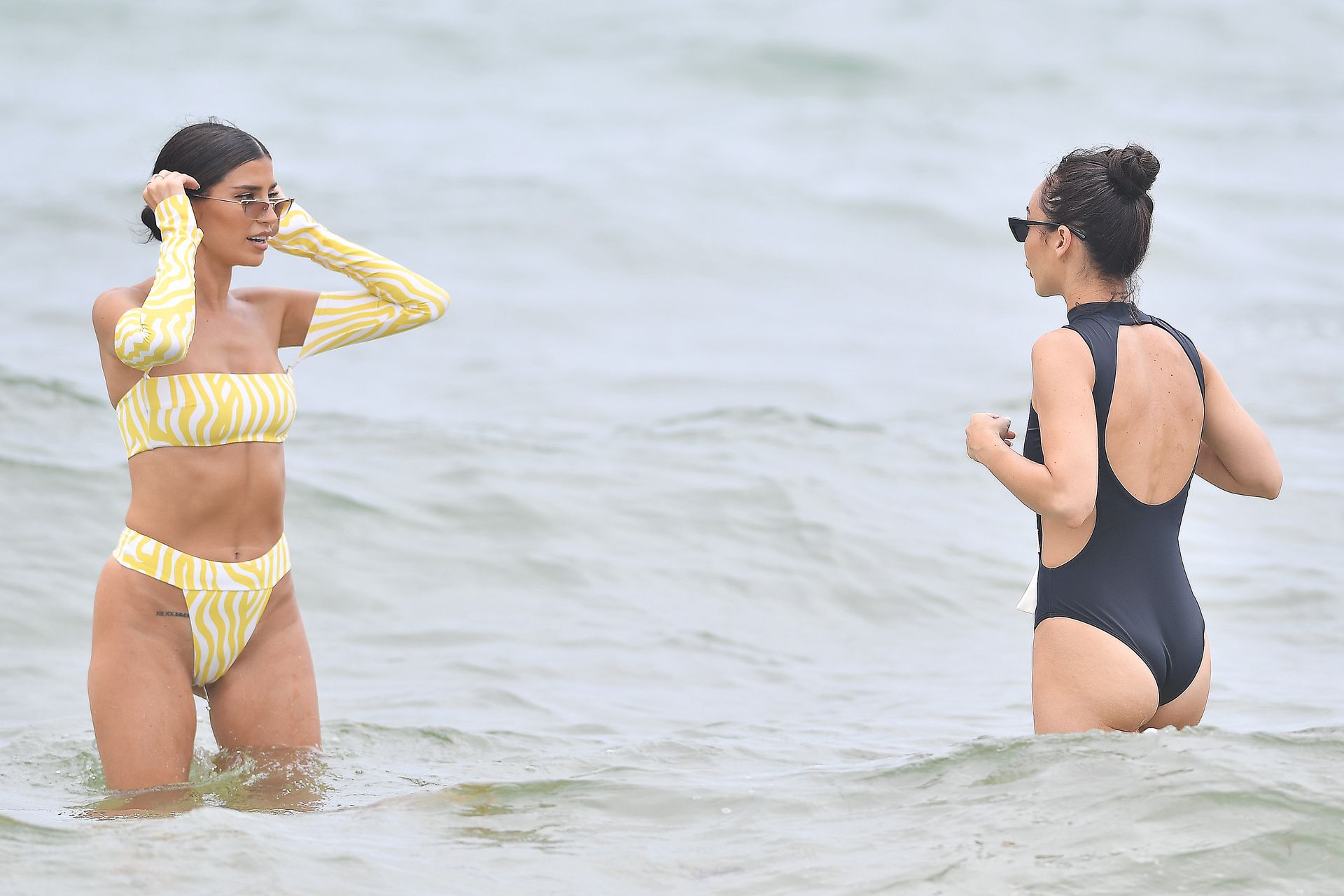Cara Santana and Nicole Williams met up at the beach in Miami Beach, Florida, 07/12/2019. Both were in deep conversation and taking selfies while laughing on the beach.
