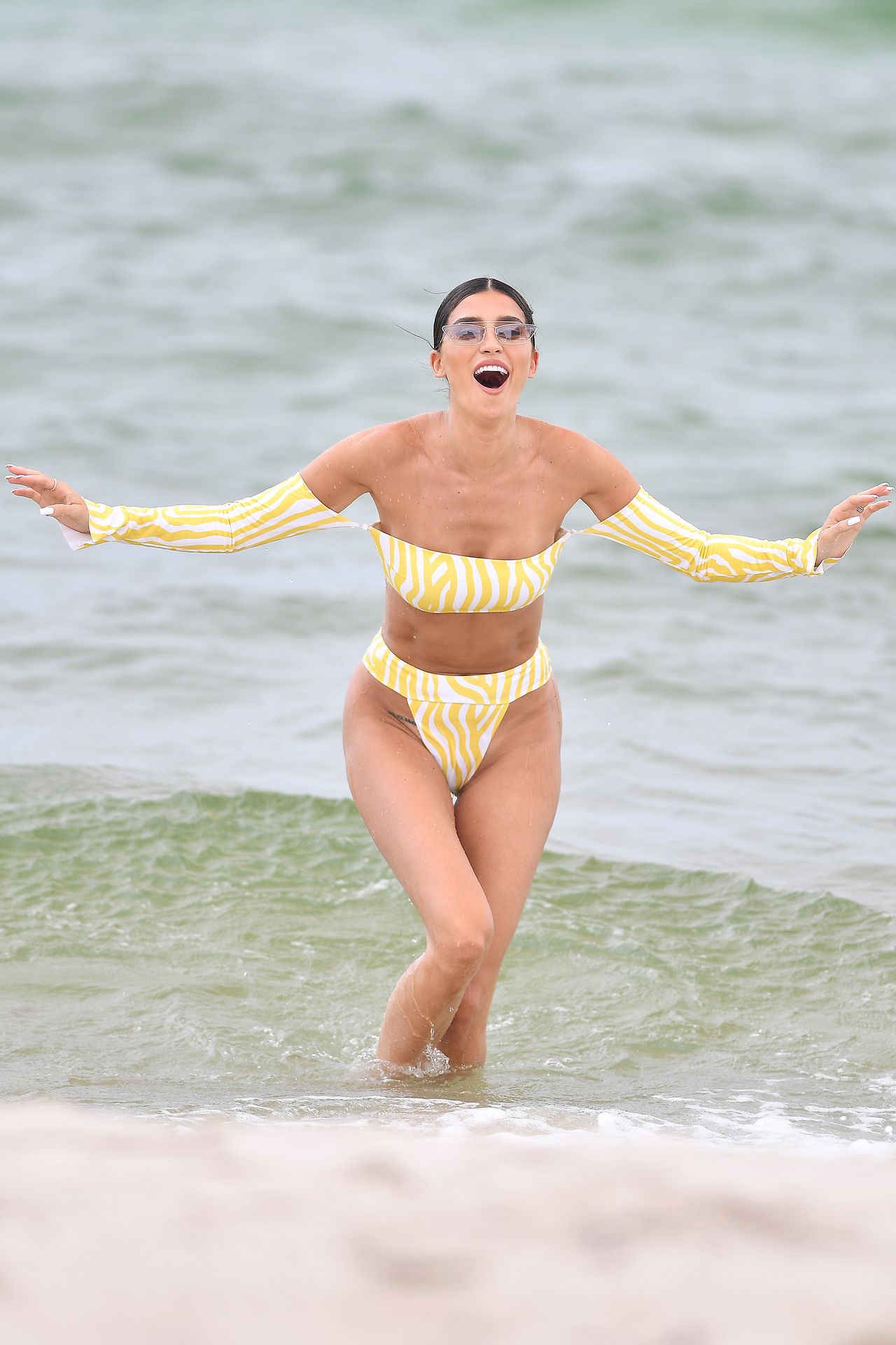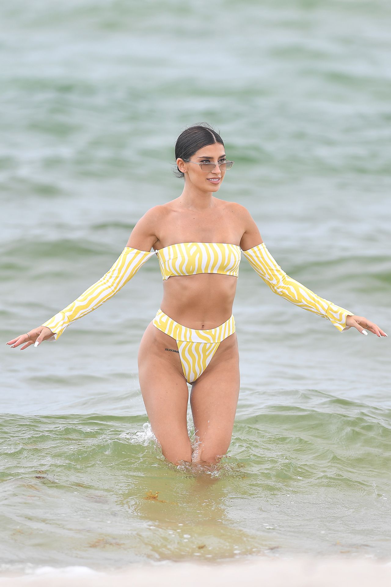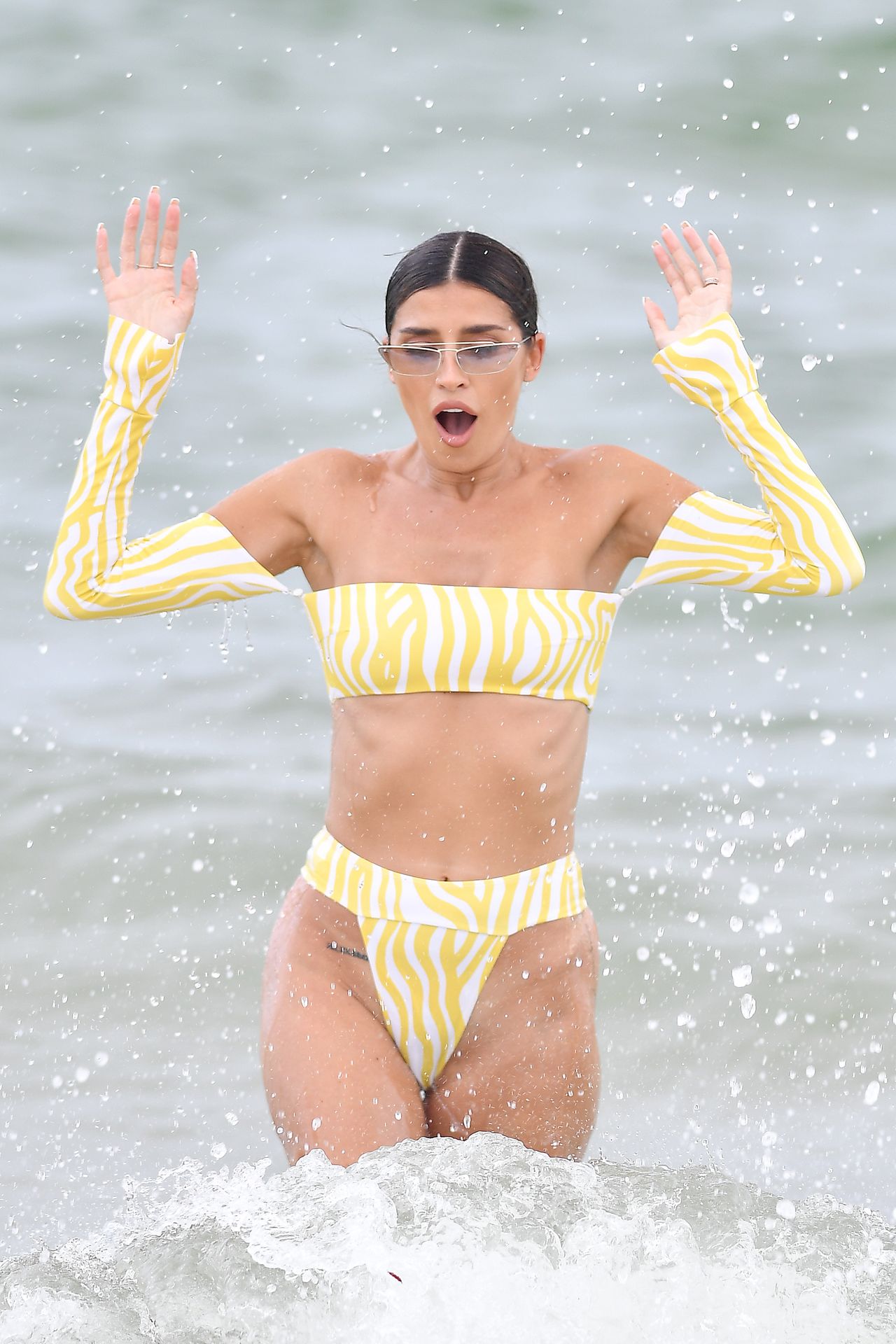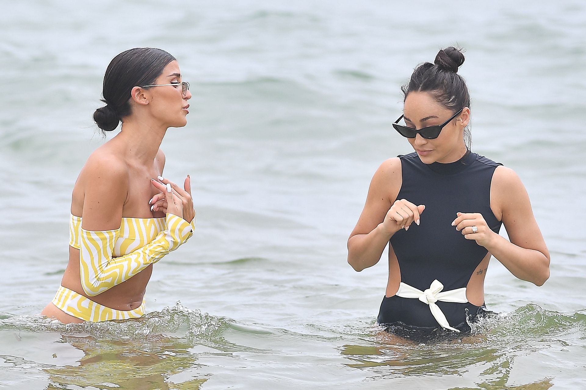 Cara Santana and Nicole Williams met up at the beach in Miami Beach, Florida, 07/12/2019. Both were in deep conversation and taking selfies while laughing on the beach.