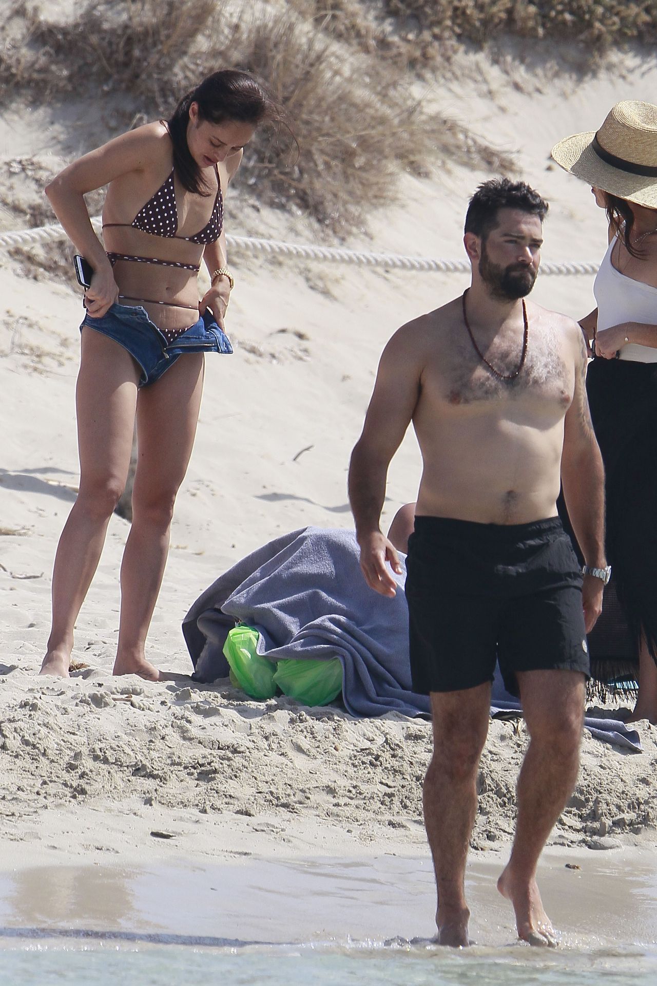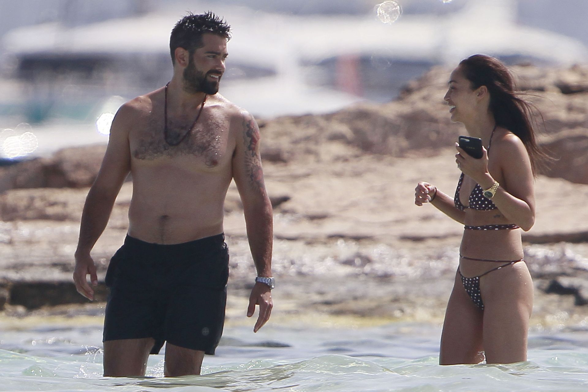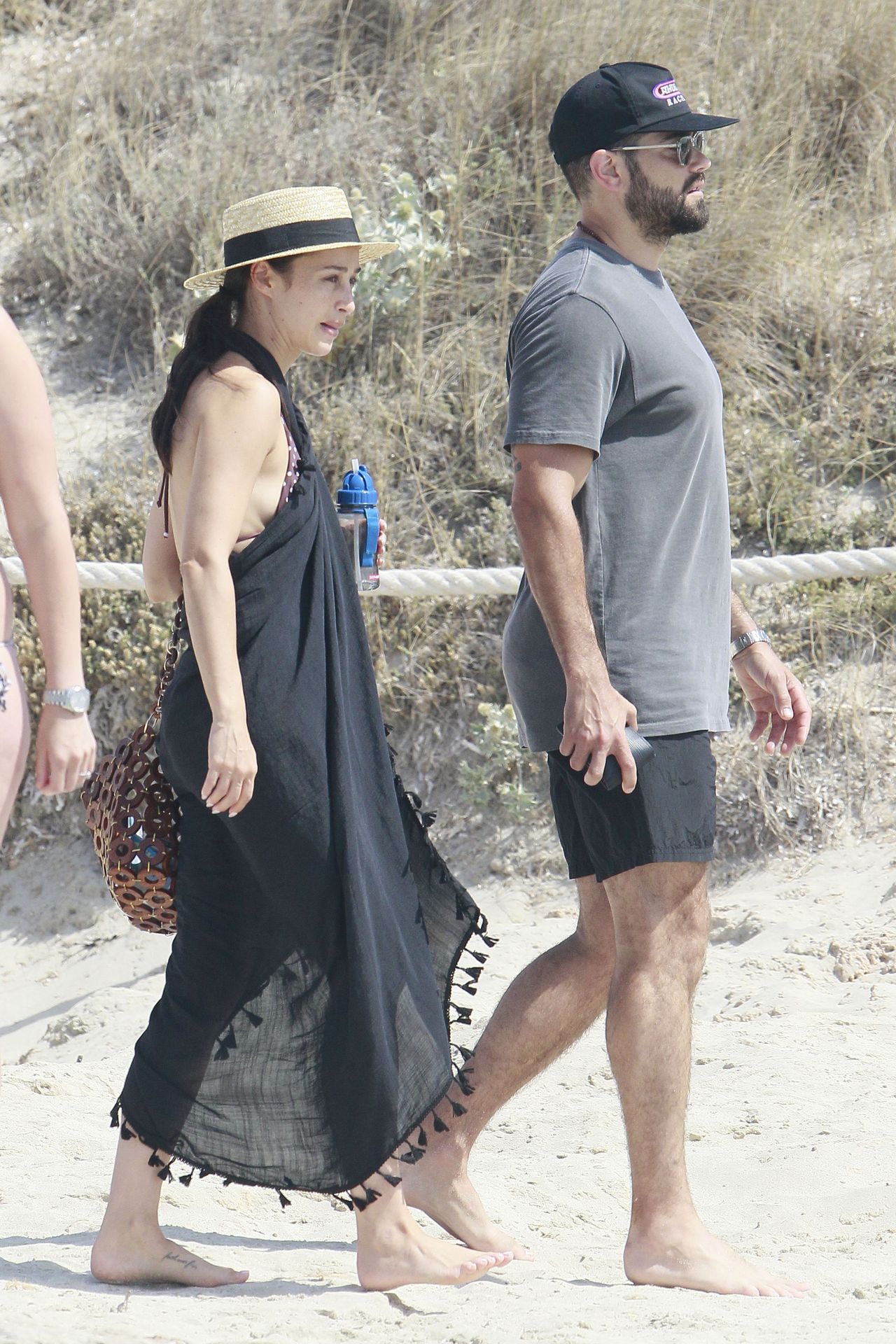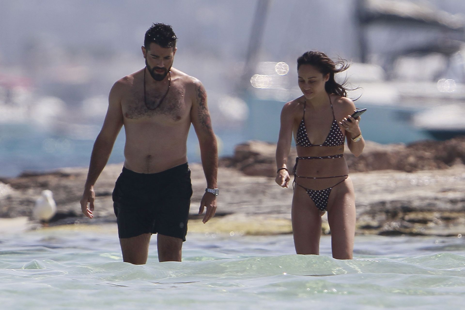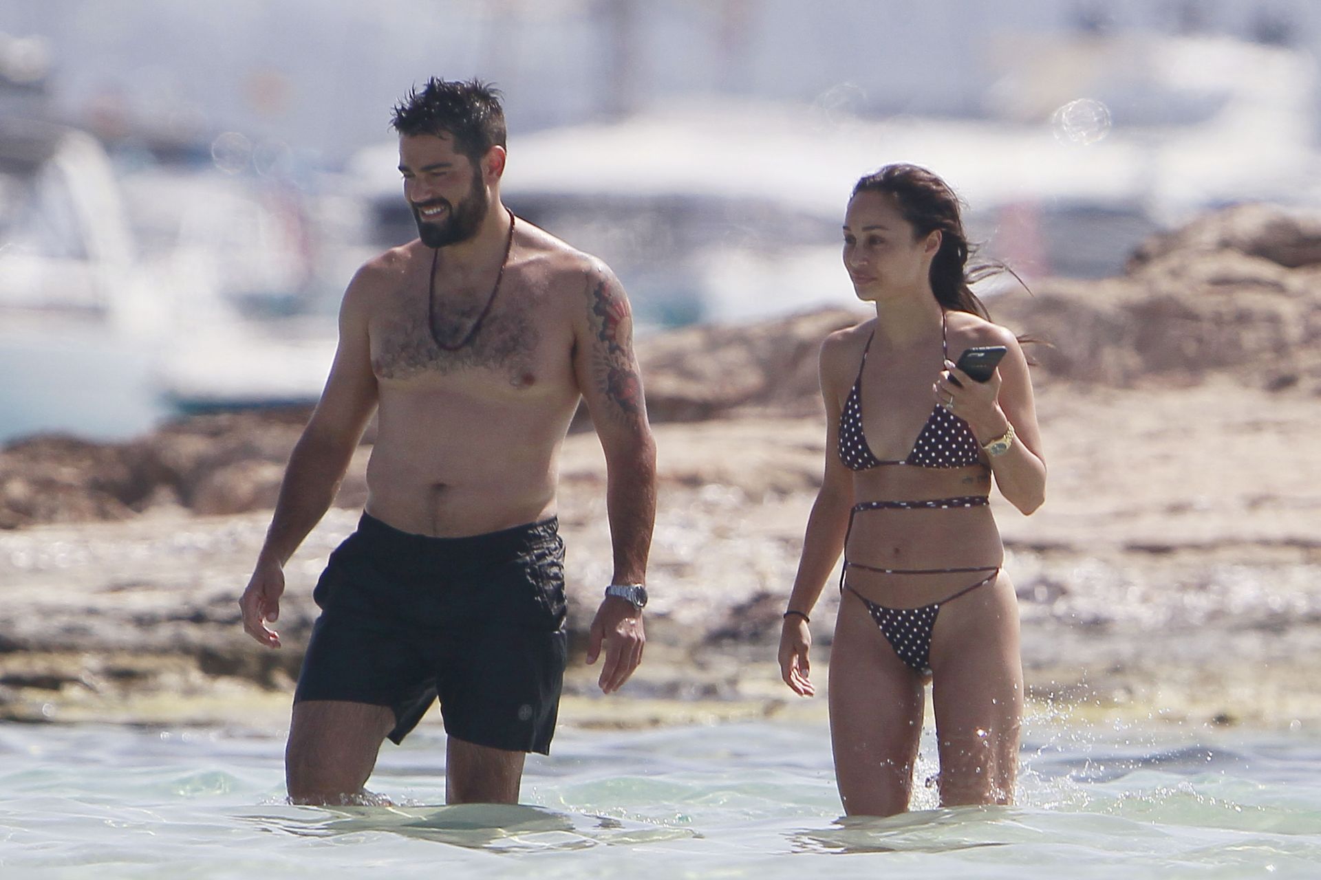 Movie actress Cara Santana and Jesse Metcalfe go paddle-boarding together at the end of a long and relaxed beach day in Formentera, Spain, 07/21/2019.