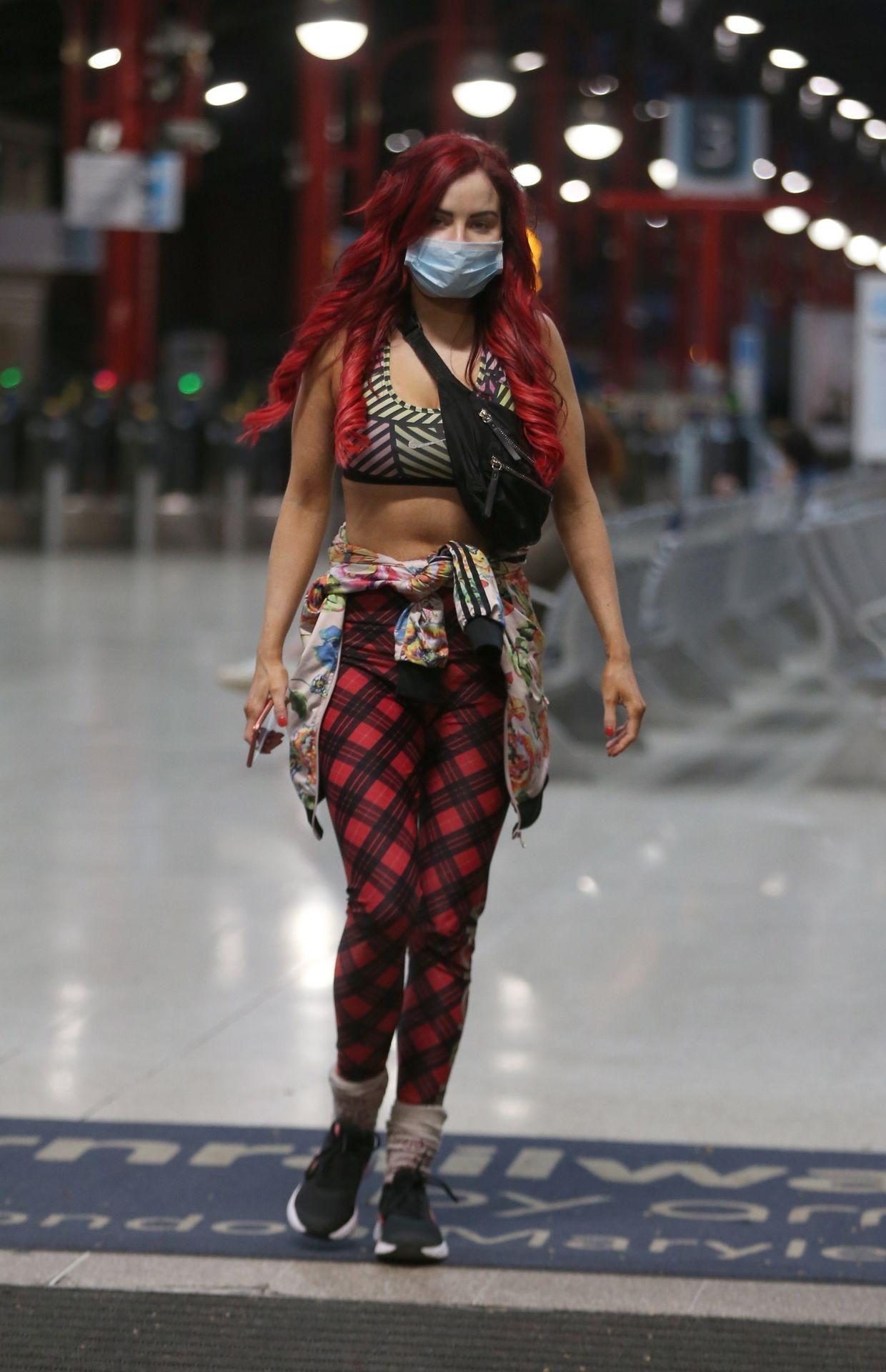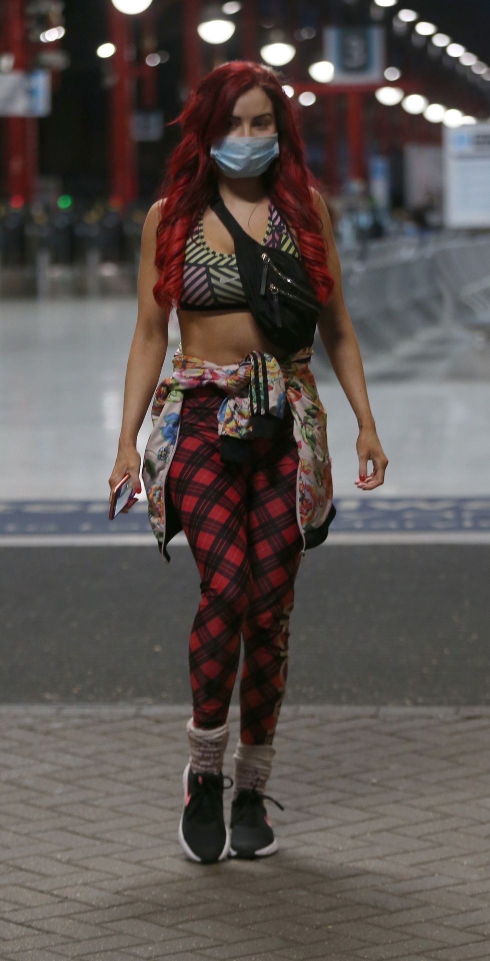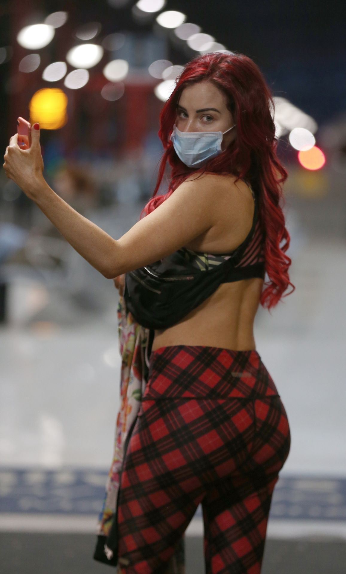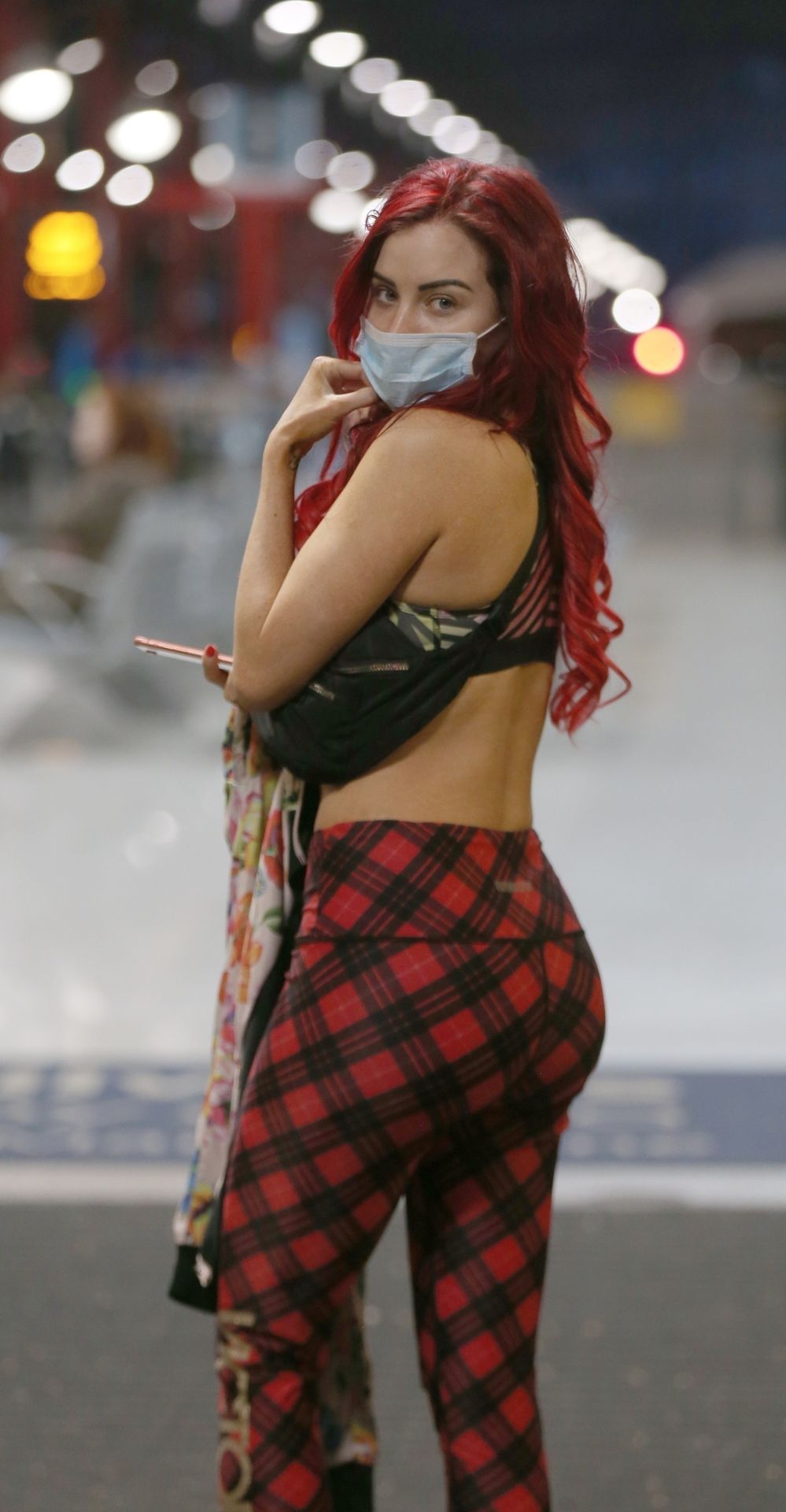 Playboy model Carla Howe stays protected with a mask during an outing in London, 04/09/2020.