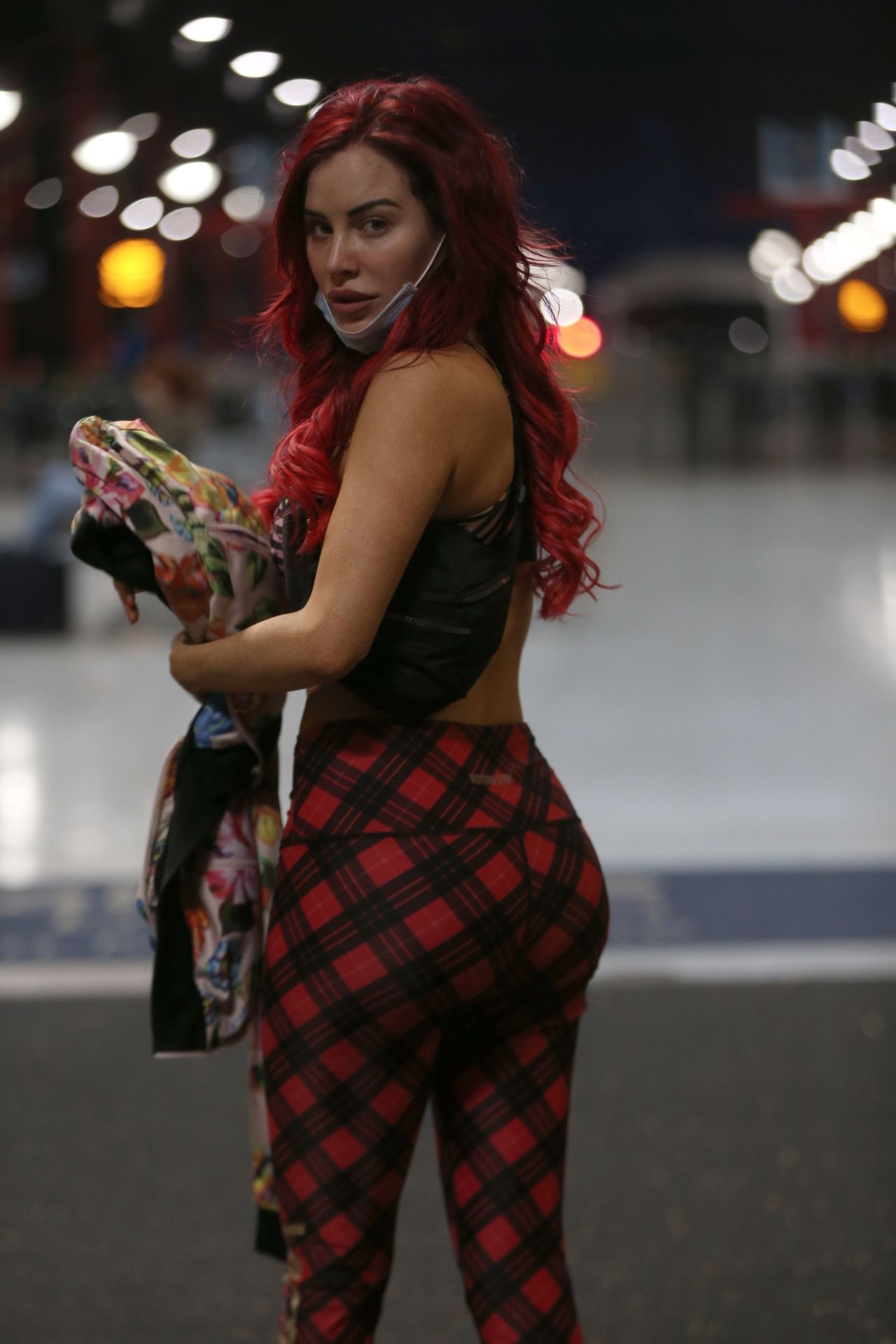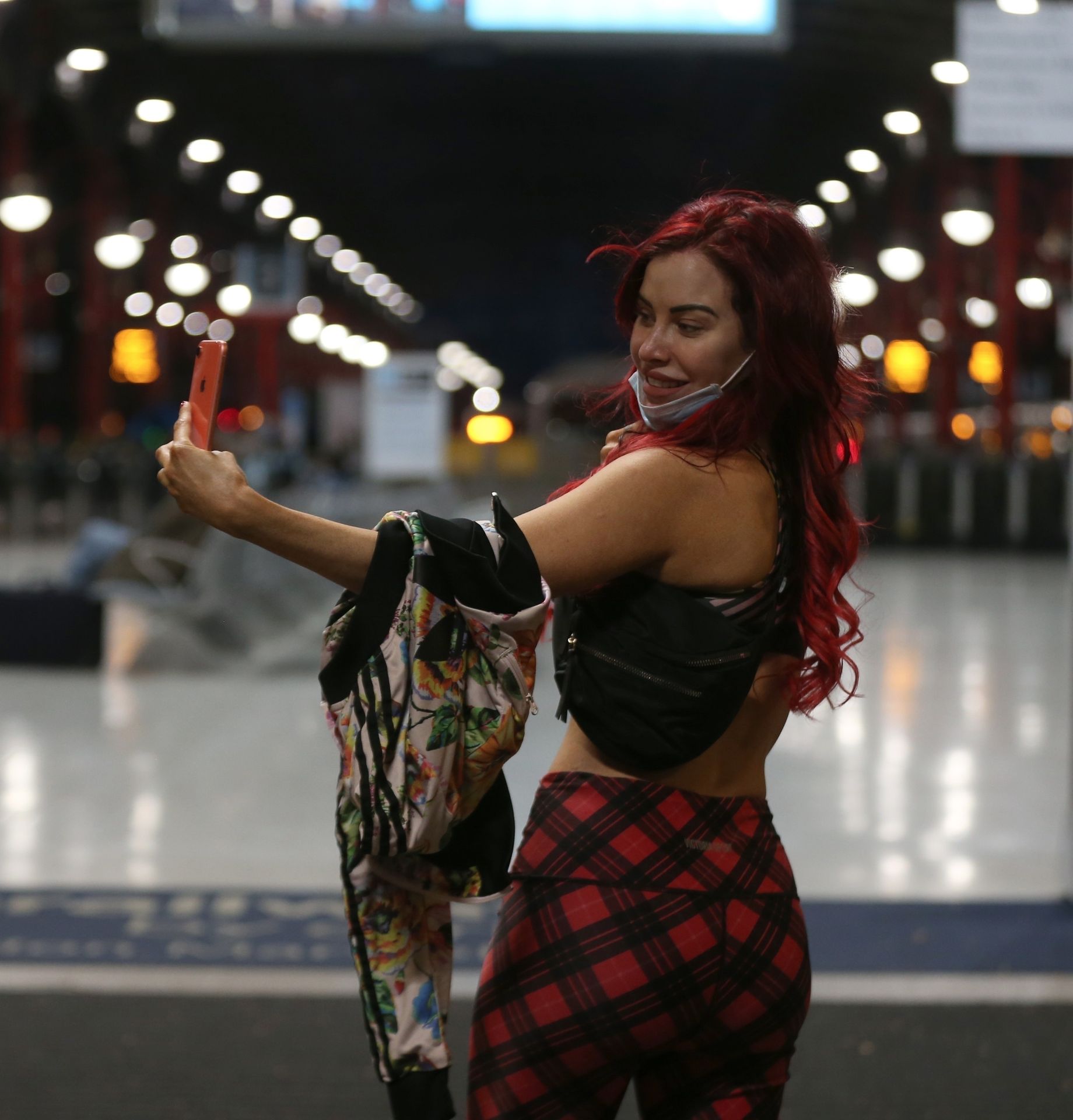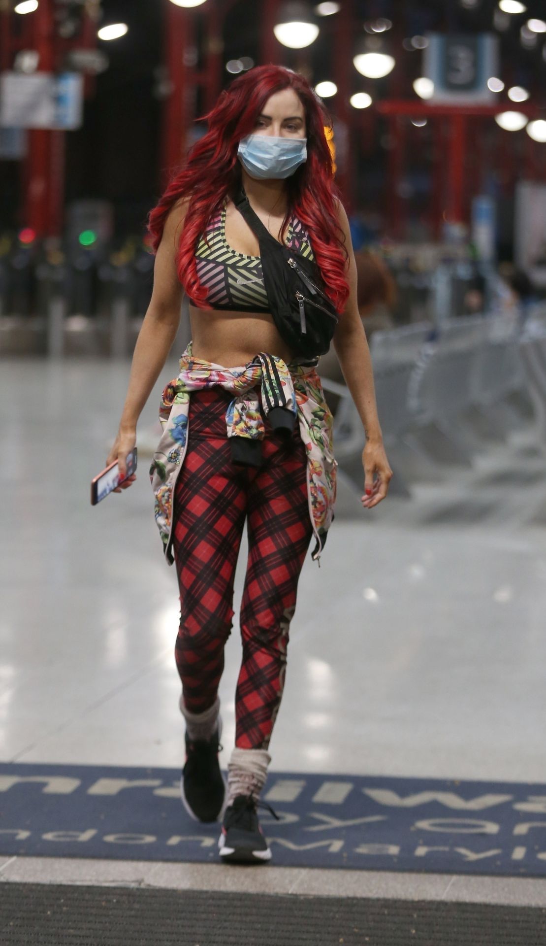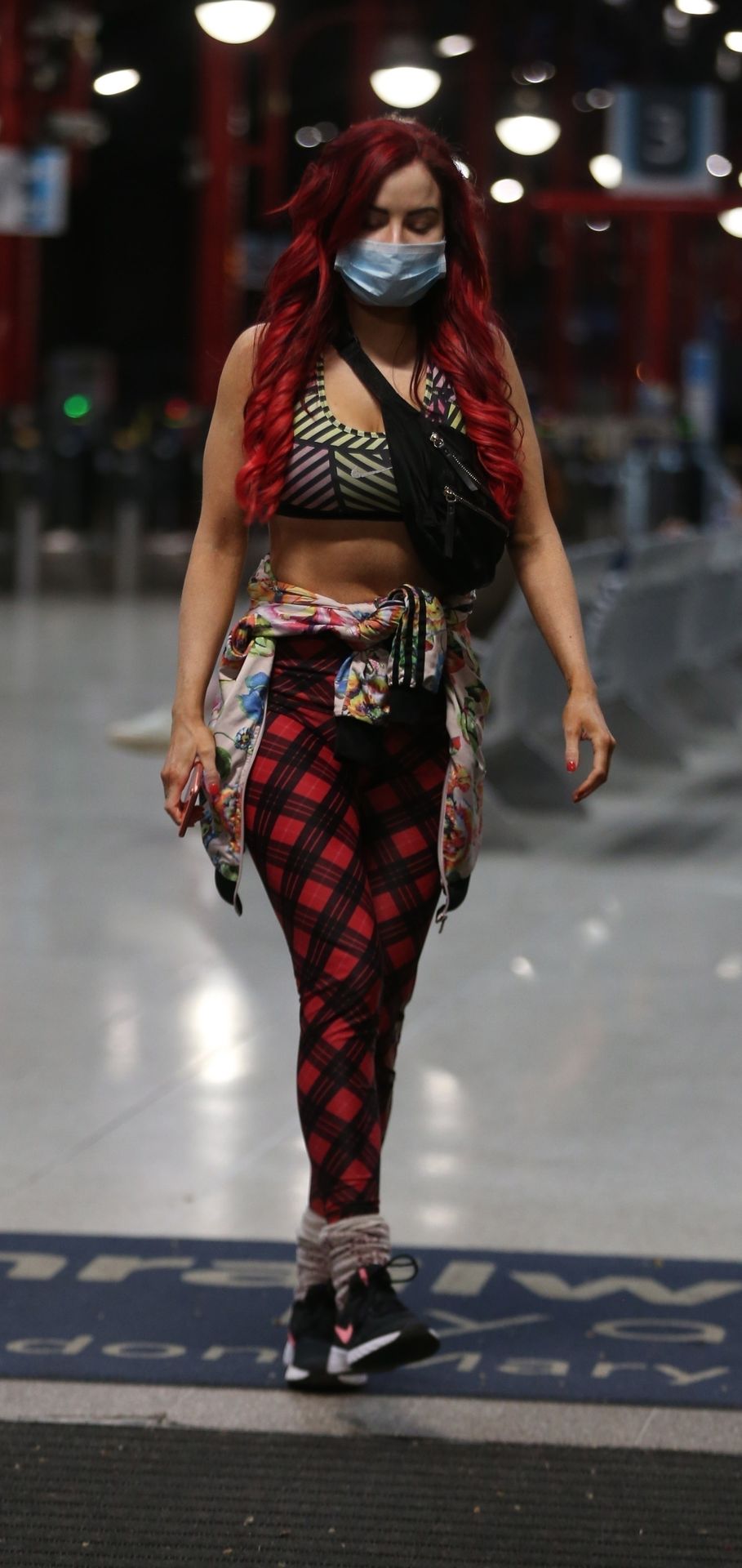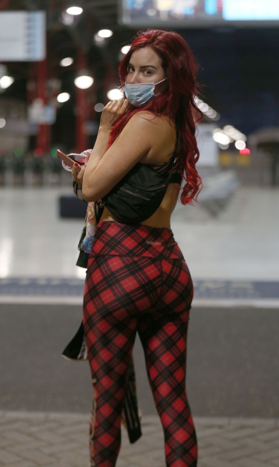 Playboy model Carla Howe stays protected with a mask during an outing in London, 04/09/2020.