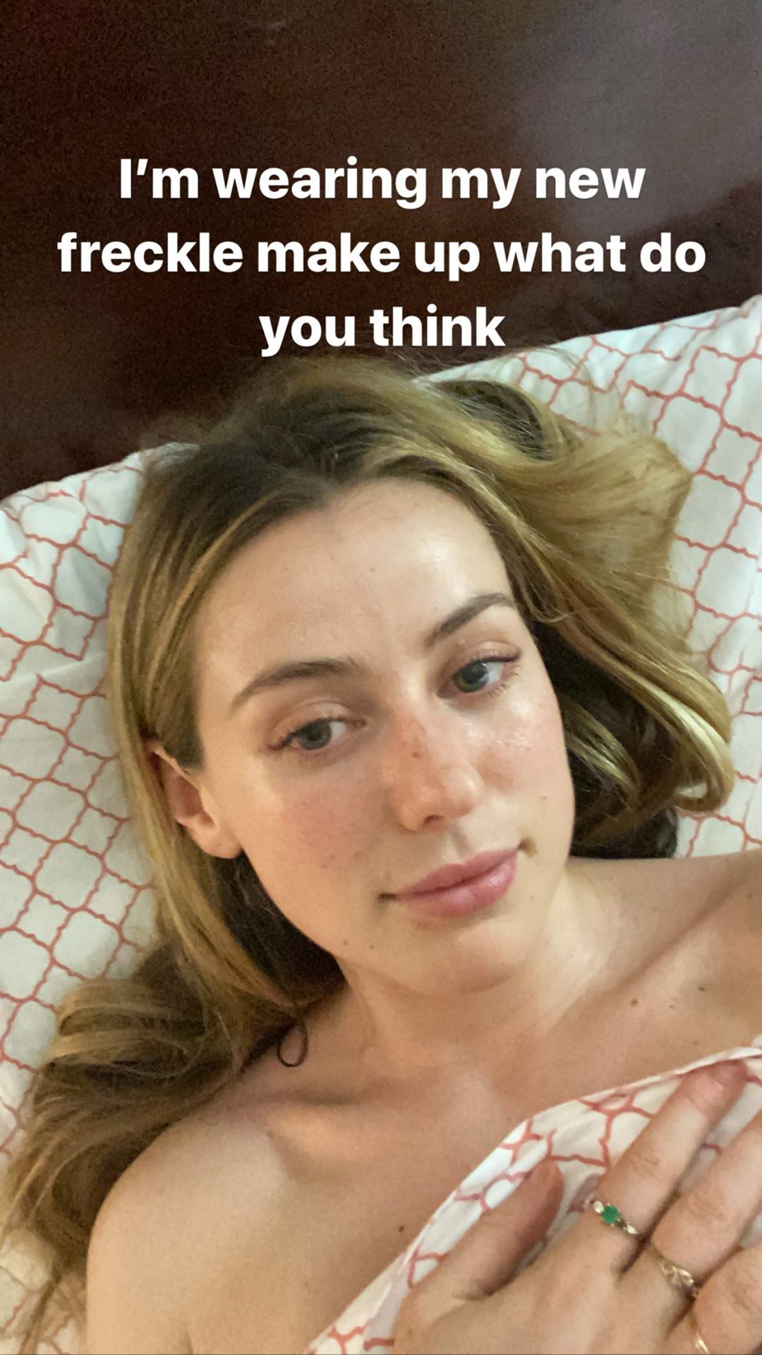 Check out Caroline Calloway’s nude photos from Instagram/Twitter, 04/01/2020. The 28-year-old social media star with birthmarks showed her breasts and covered her shaved pussy.