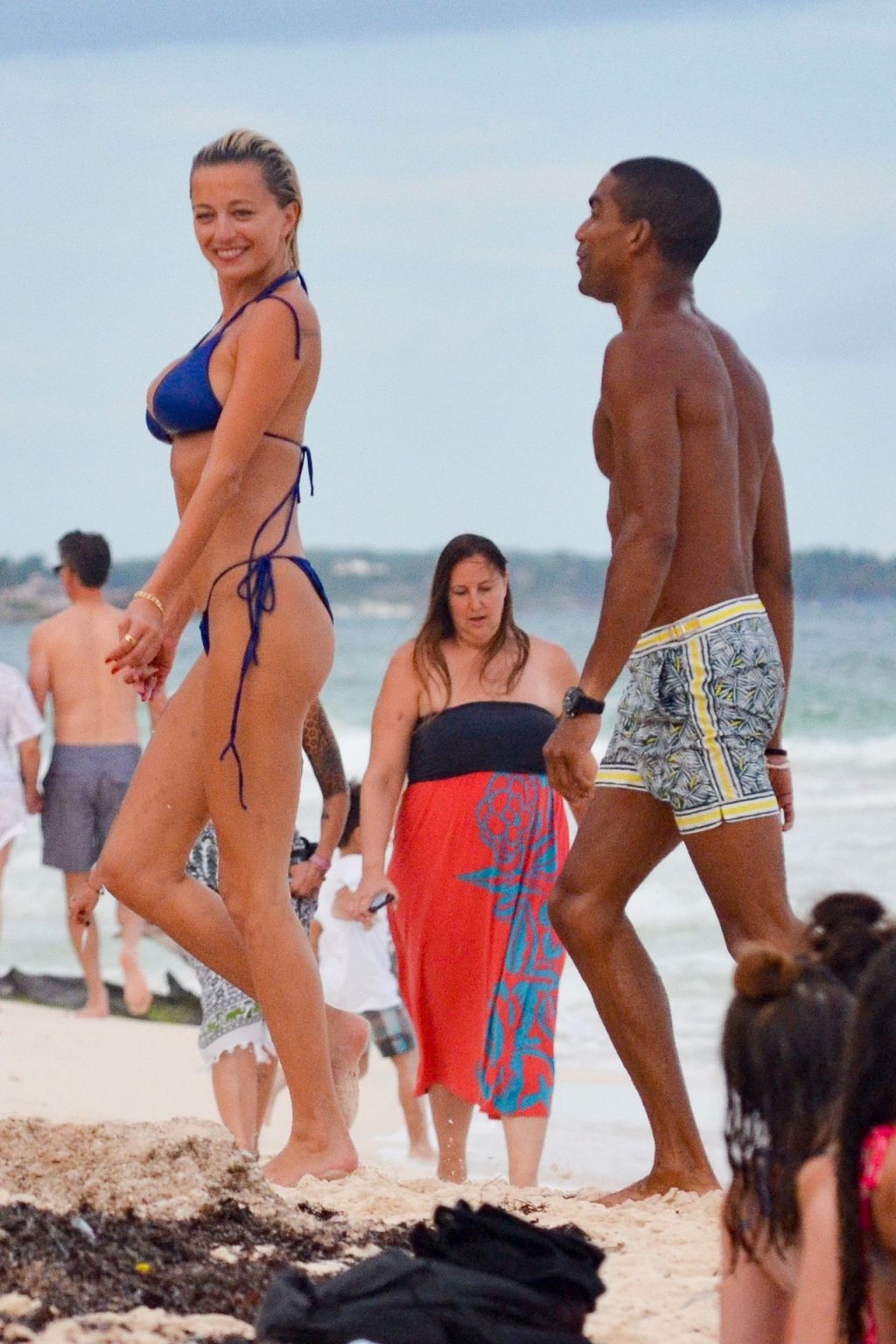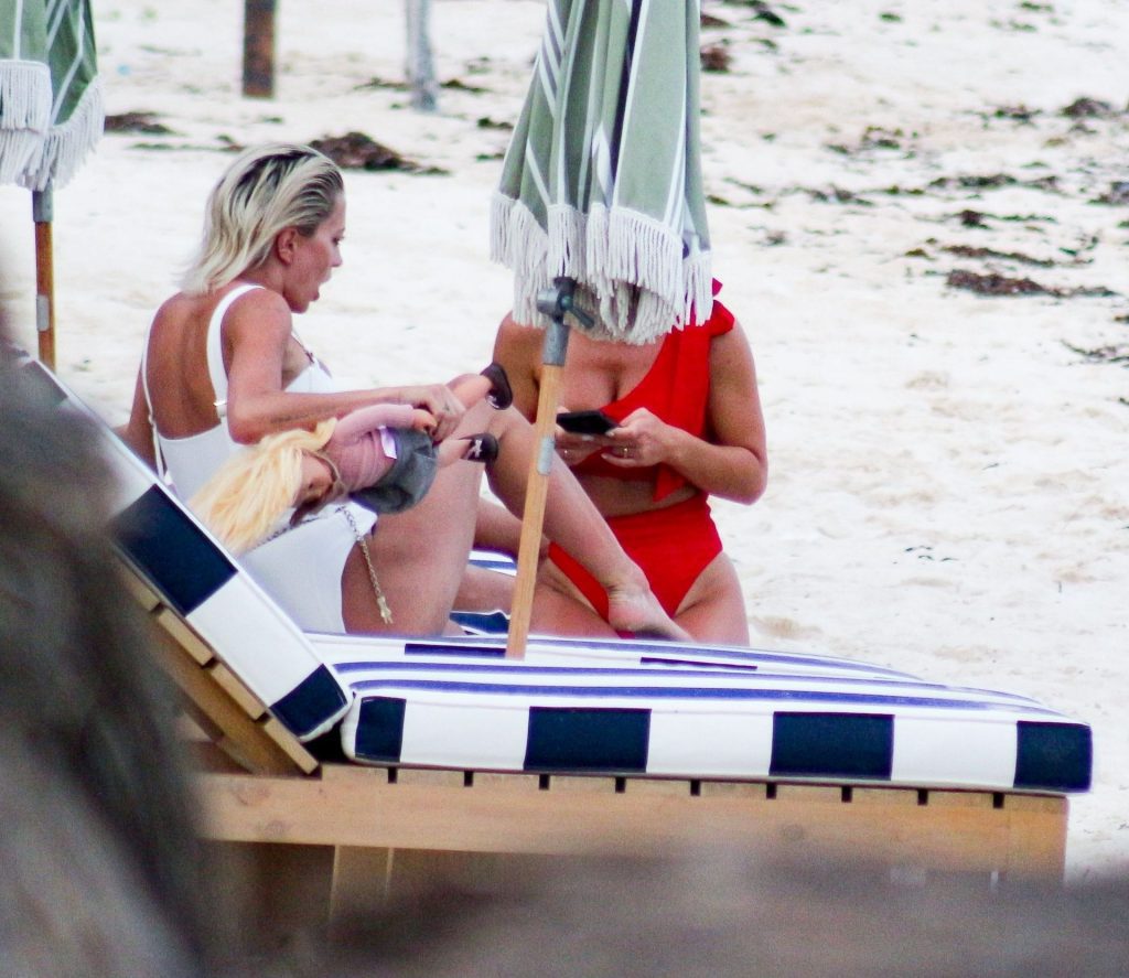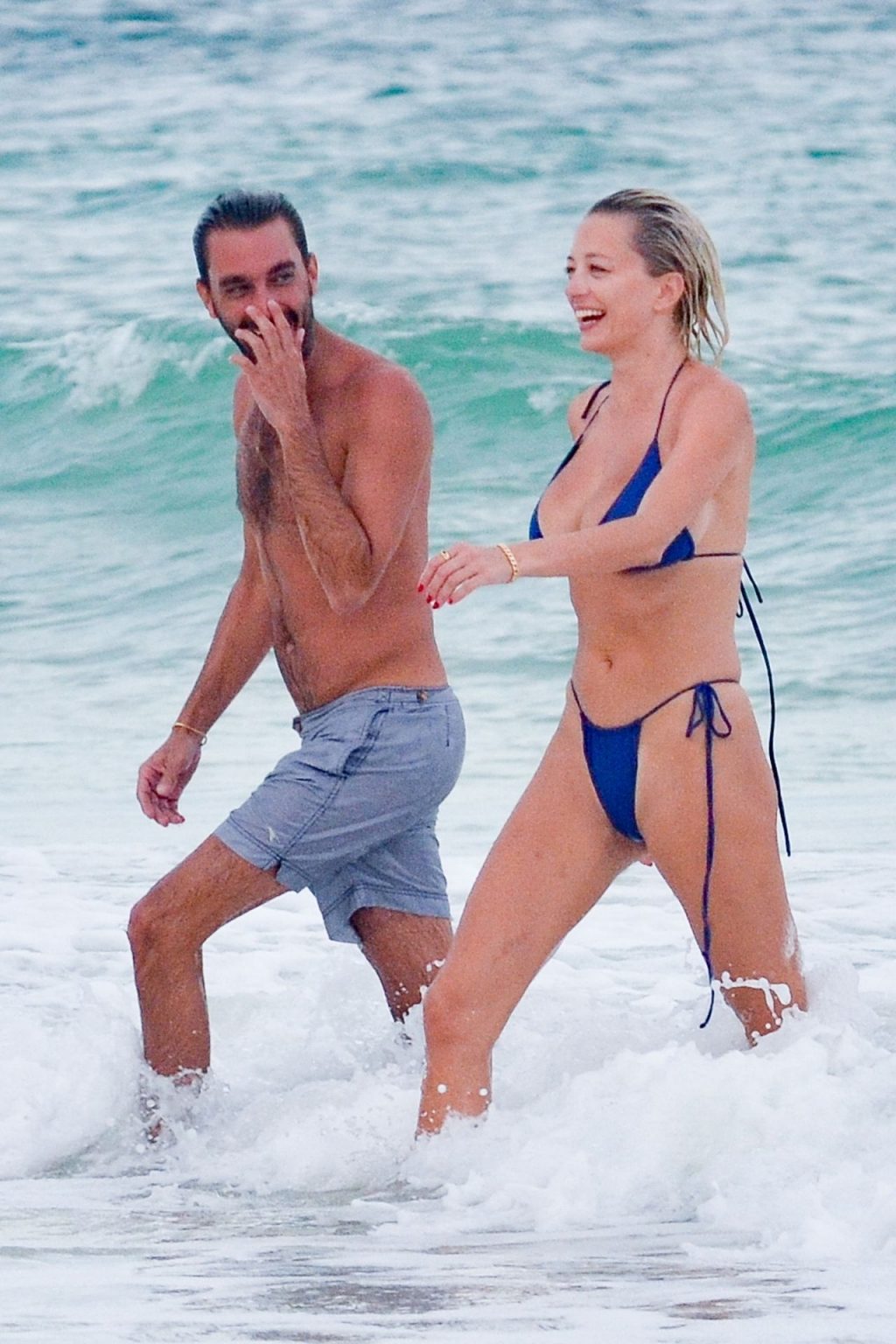 Model Caroline Vreeland suffers an unfortunate bikini malfunction while on holiday in Tulum, Mexico, 10/28/2019.