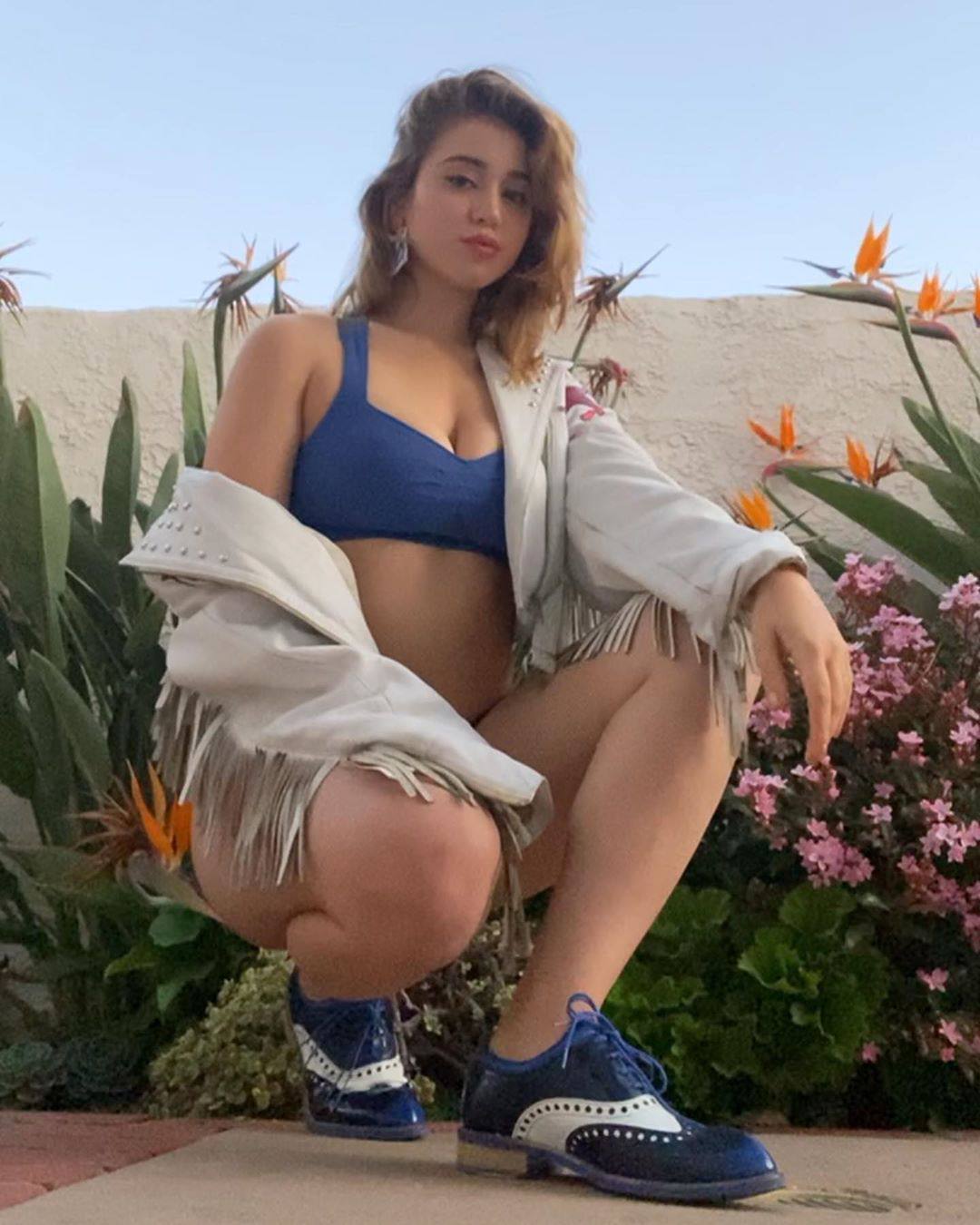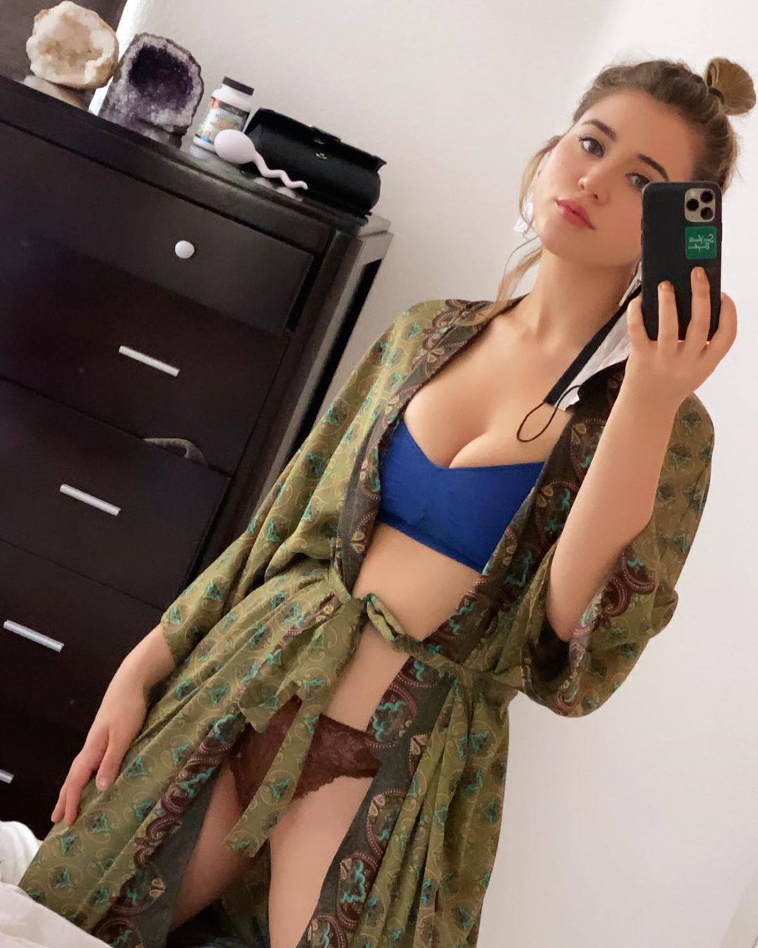 Caylee Cowan flaunt her sexy boobs in racy selfie wearing hot underwear in her bedroom.