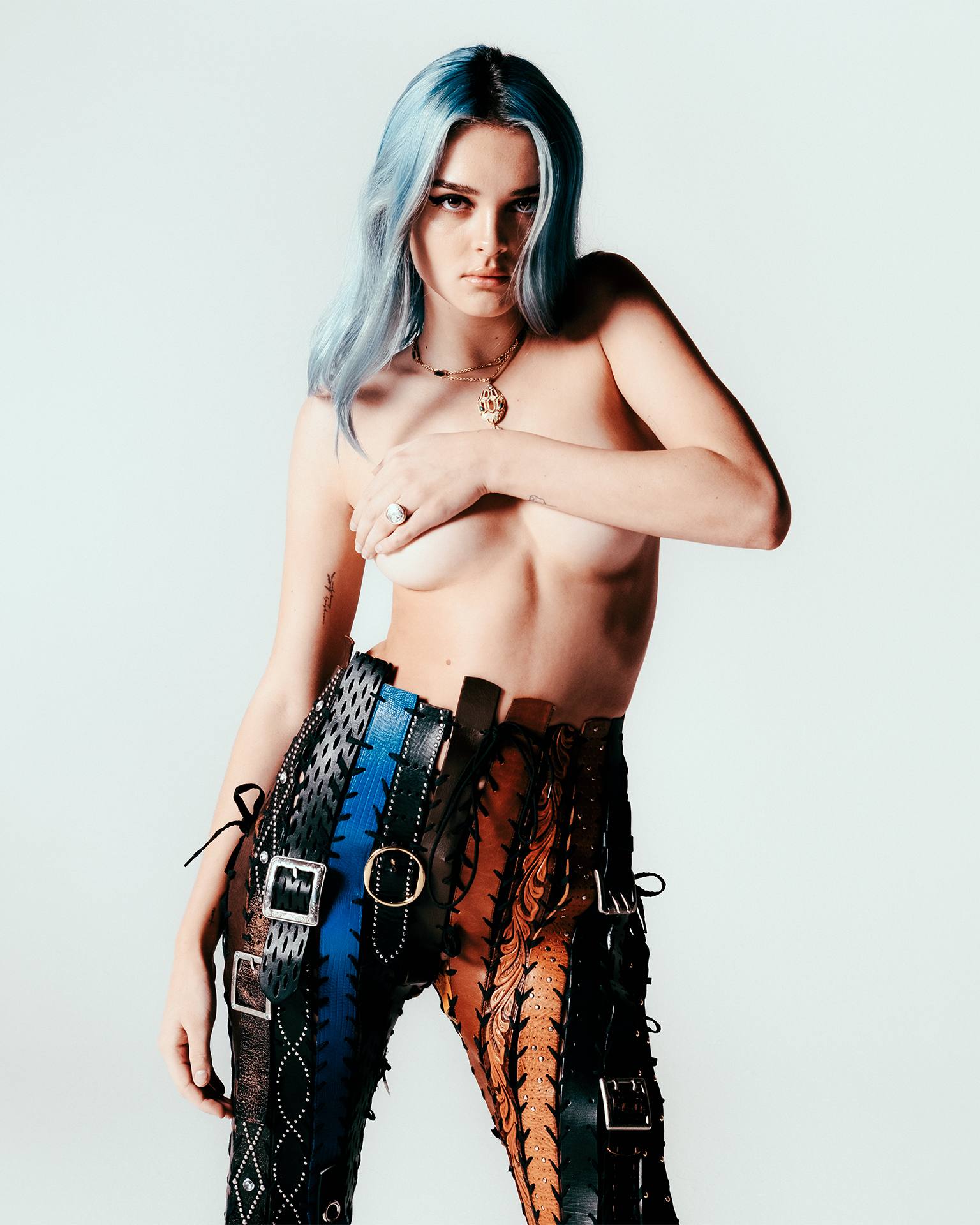 Charlotte Lawrence cover her sexy boobs with arm as she pose topless in V Magazine V125 Summer 2020 issue.