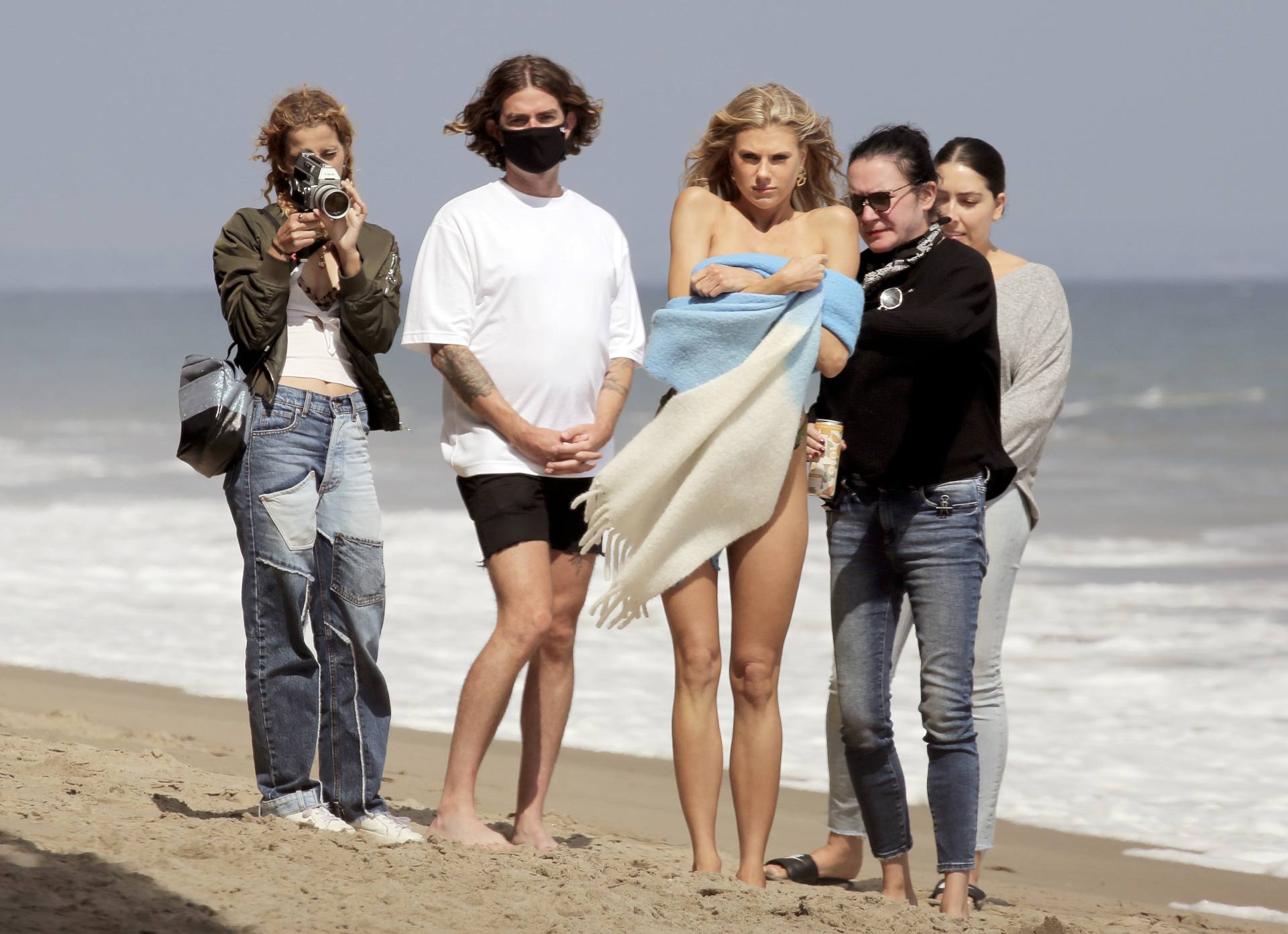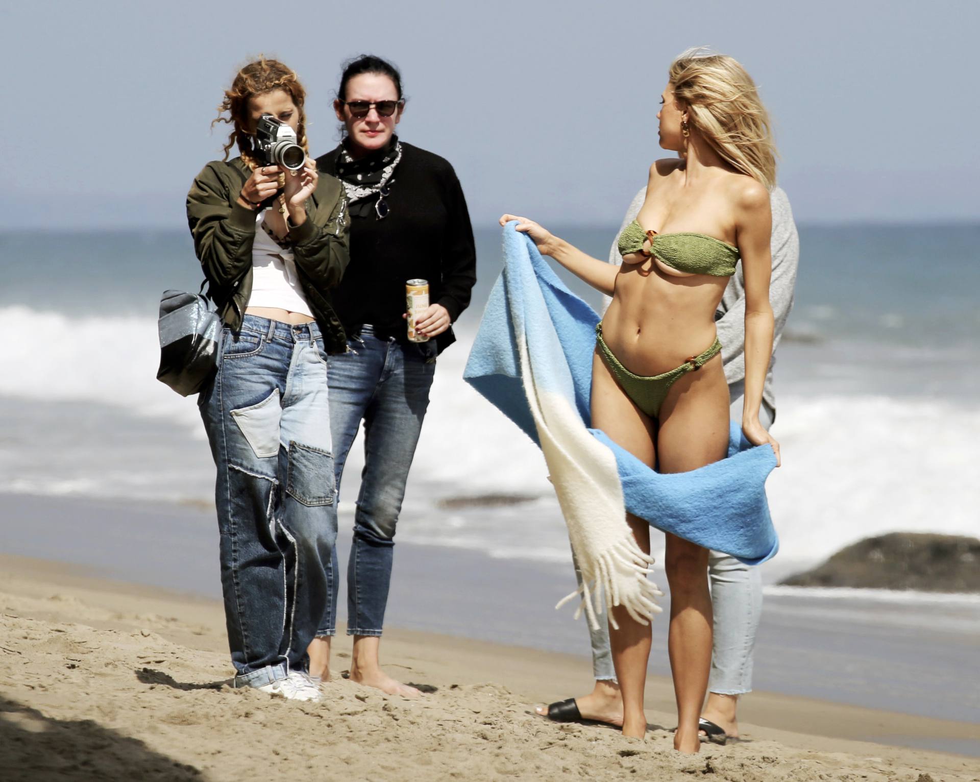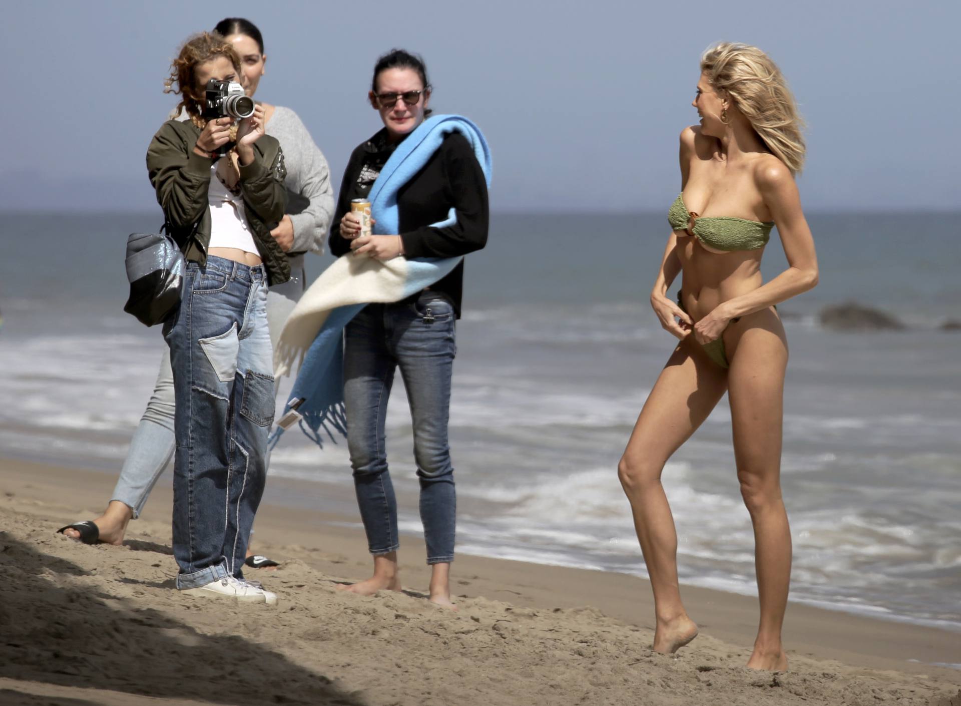 Charlotte McKinney flaunts her sexy body wearing sexy bikini at a photoshoot on the beach in Los Angeles.