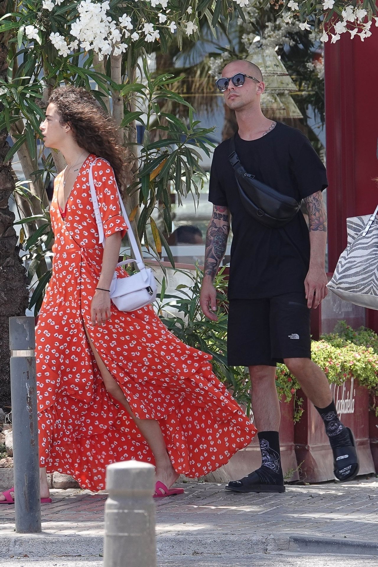 Italian top model Chiara Scelsi looks great in a red bikini while out with a friend in Ibiza, 08/04/2019.