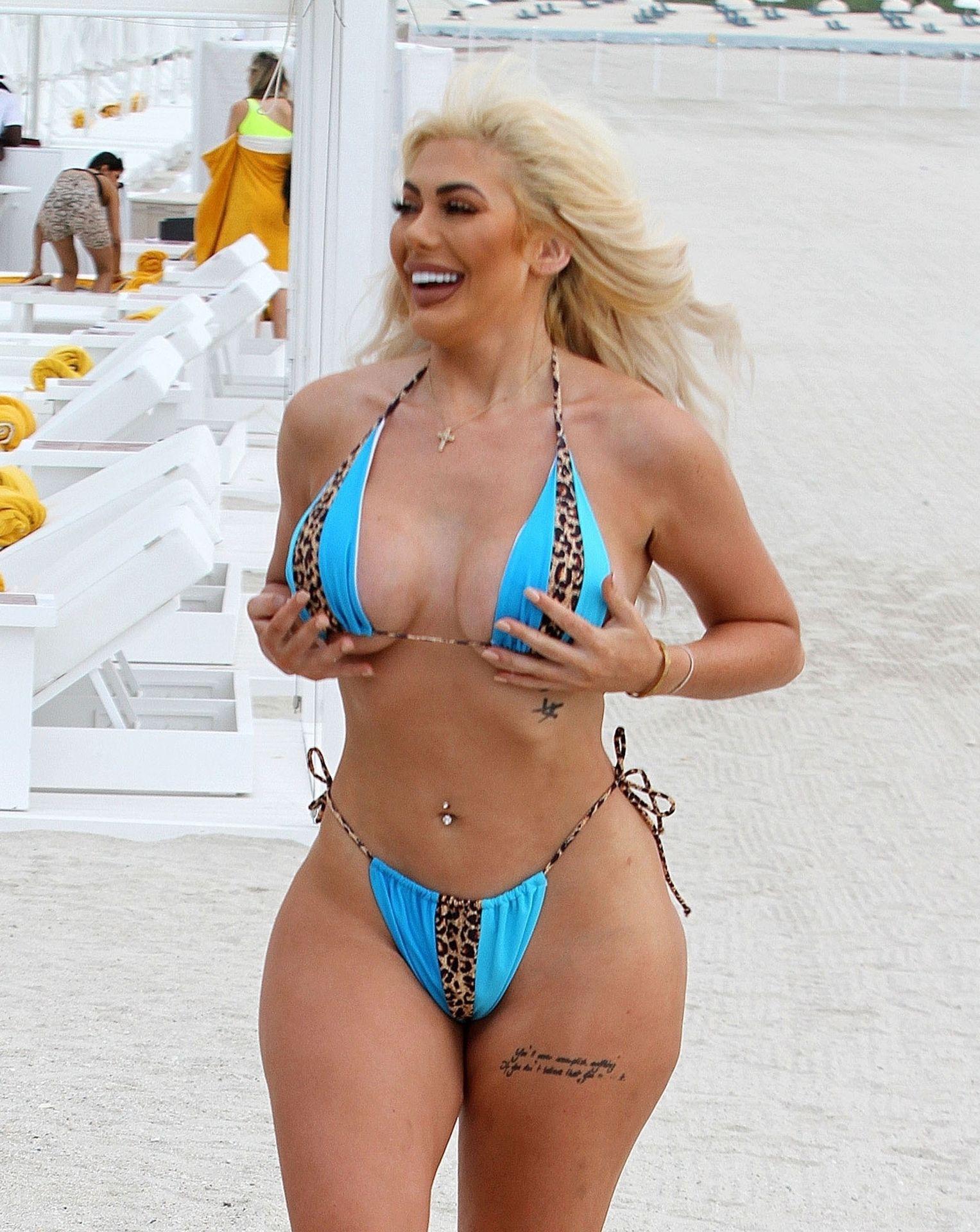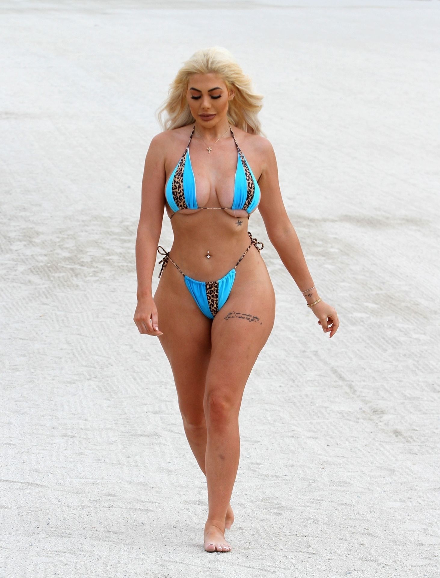 “Geordie Shore” star Chloe Ferry was pictured showing off her hourglass figure in a blue bikini while enjoying a holiday in sunny Dubai, 02/27/2020.