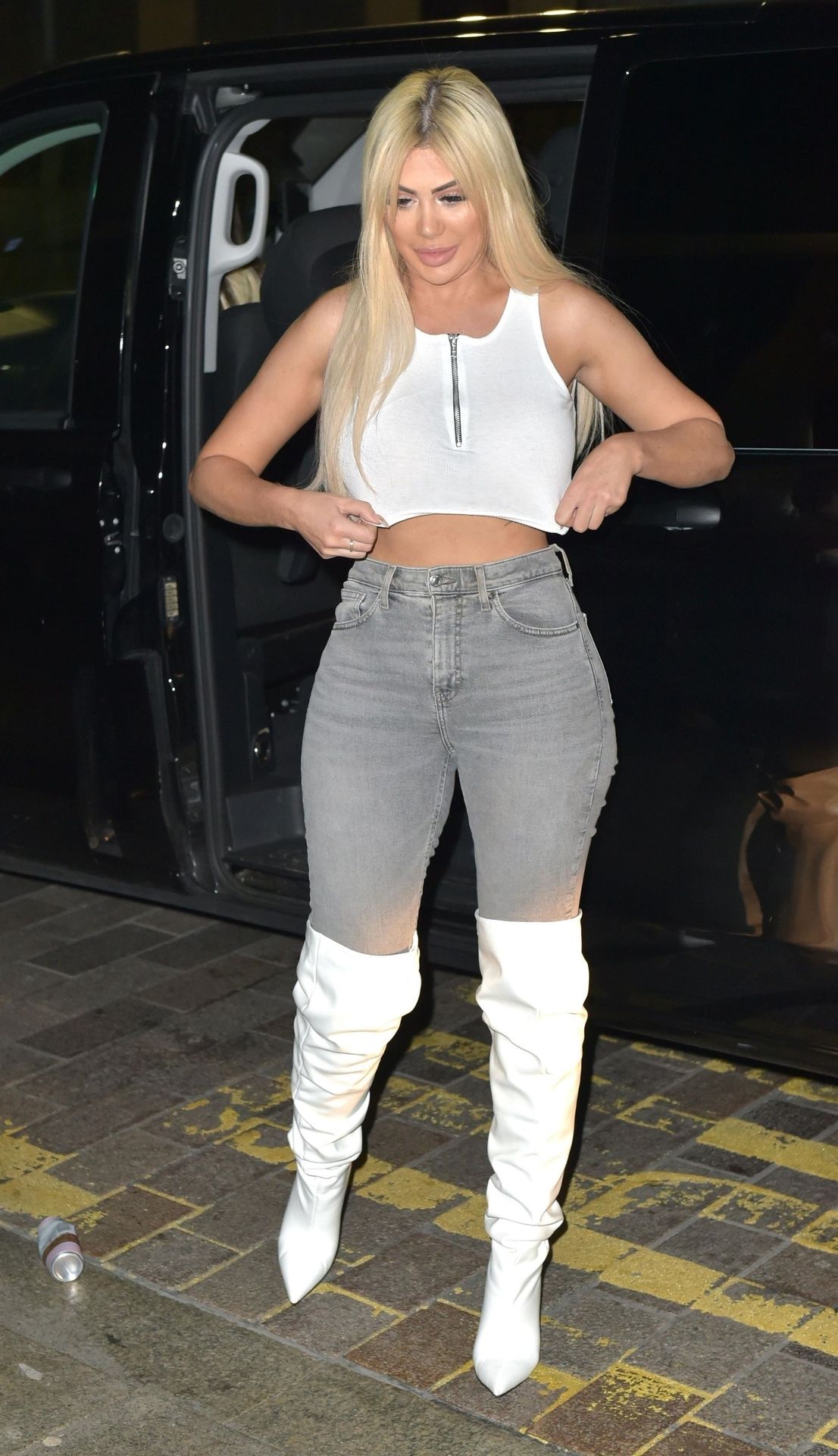 Chloe Ferry showed off some serious underboob showing a scar from the results of a boob job in a white see-through cropped top while out with the cast of “Geordie Shore.”