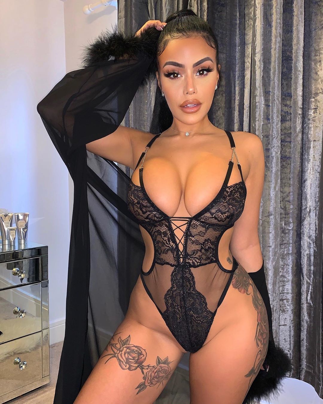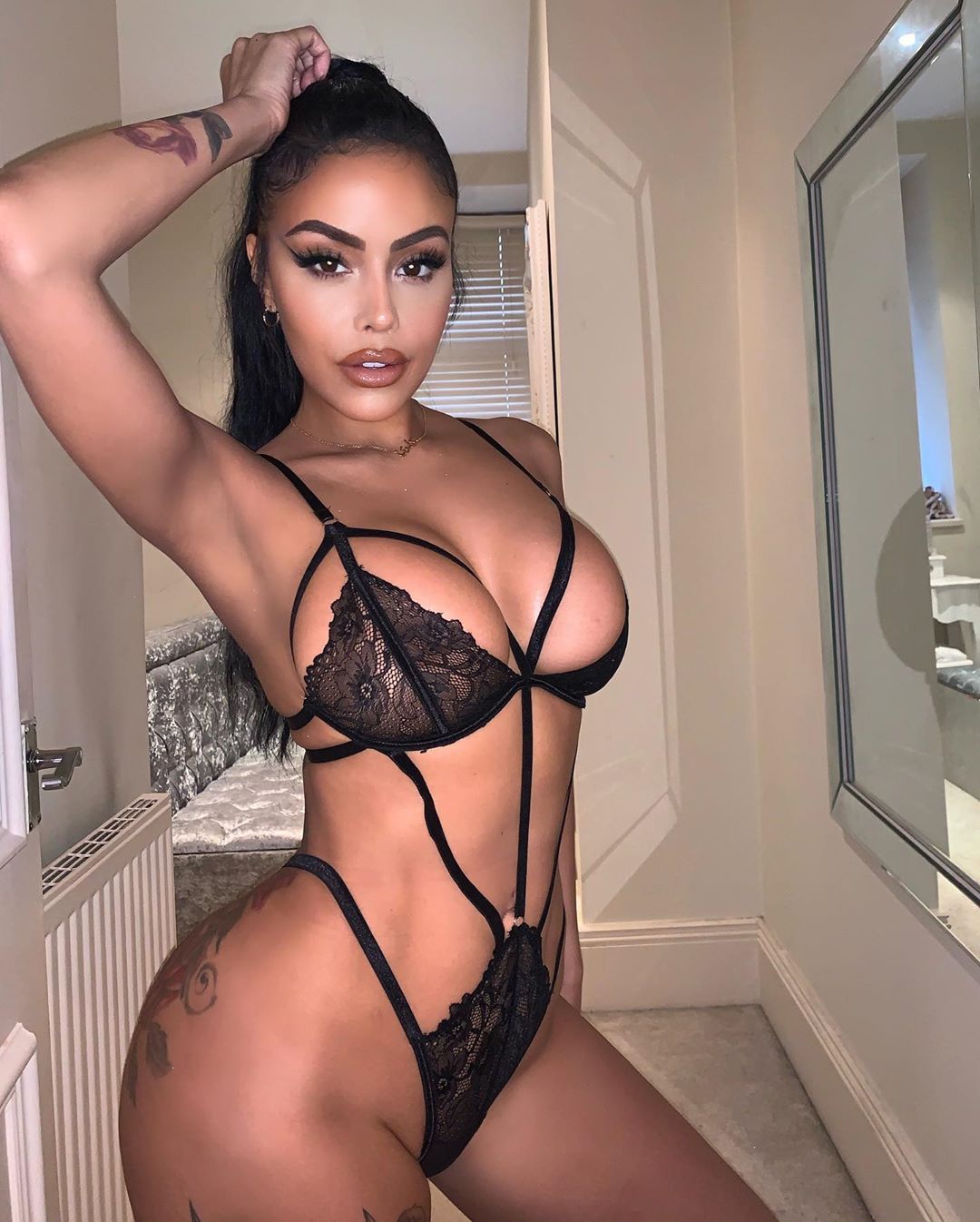 Check out Chloe Saxon’s hot and slightly nude photos from Instagram (2019-2020). Chloe Saxon demonstrates her body with really luxurious curves and very seductive forms. The girl with a huge ass and the big tits, of course, loves plastic surgery and looks stunning in her underwear!
