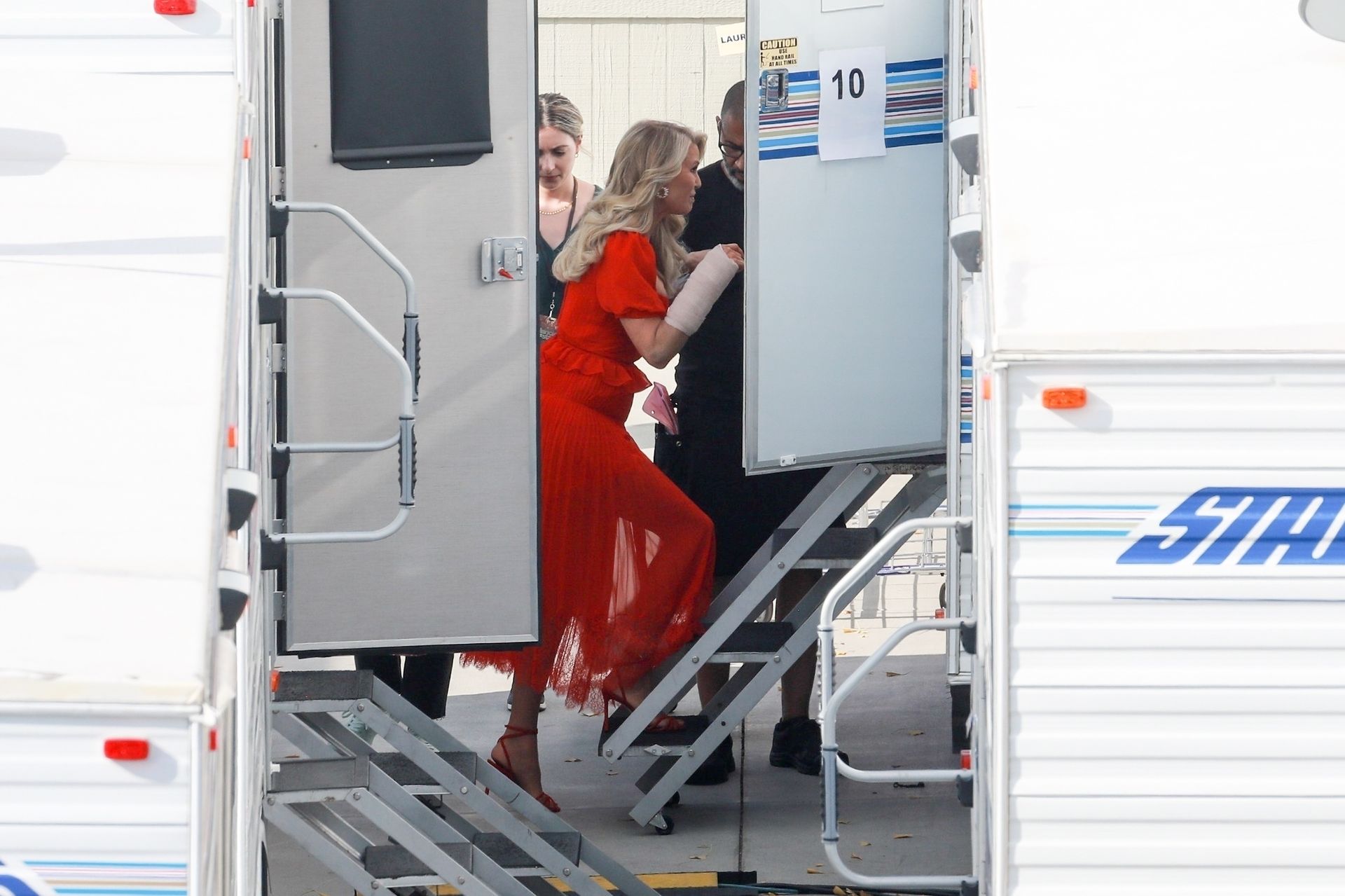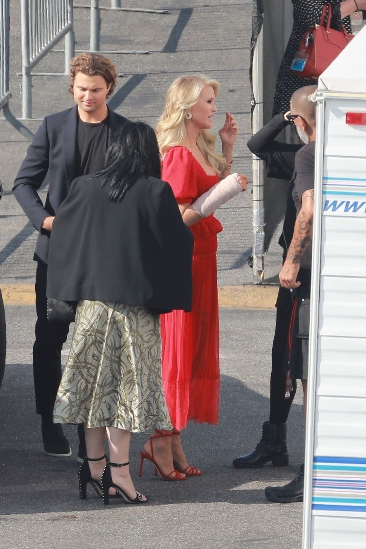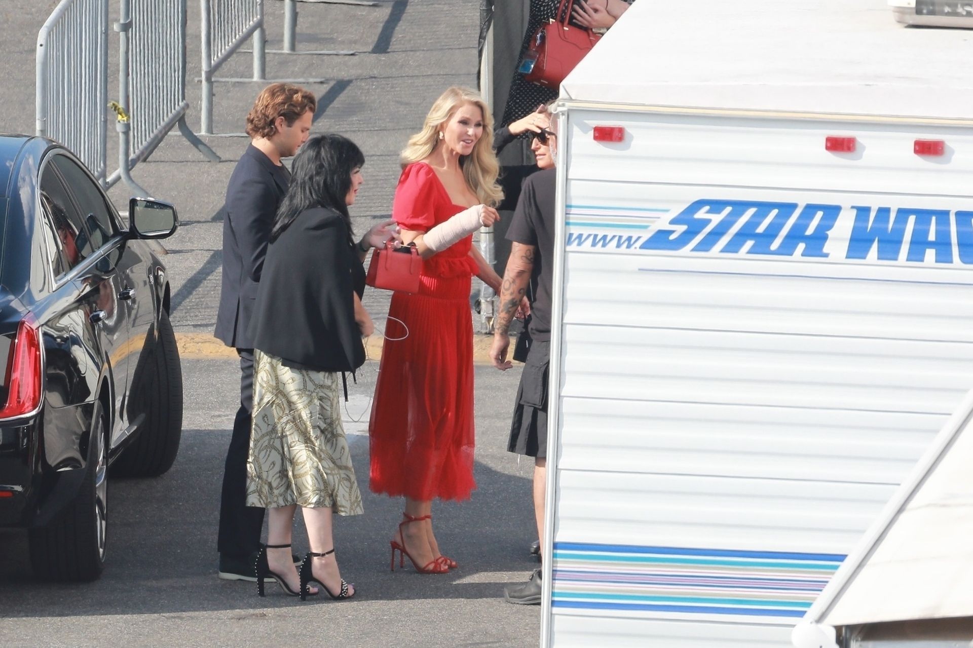 Sailor Lee‘s mother, 65-year-old American actress, model Christie Brinkley was photographed with a damaged arm and wearing a red dress while preparing for the “Dancing with the Stars” live show in Los Angeles, 09/16/2019.