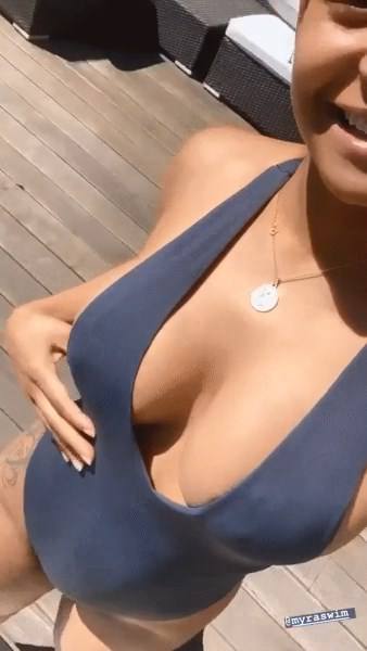 Christina Milian flaunts her sexy boobs wearing revealing low-cut swimsuit in sexy Instagram video.