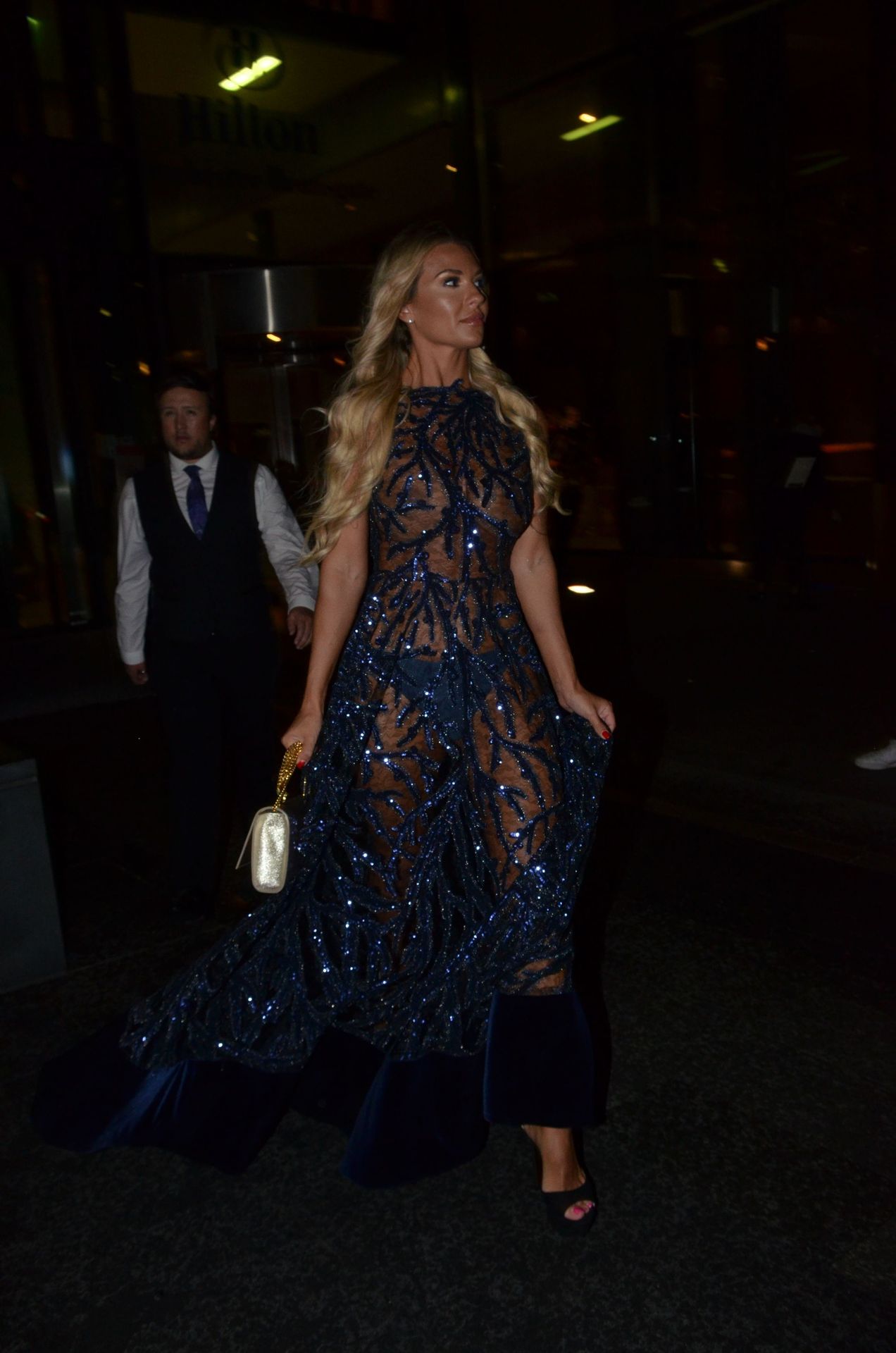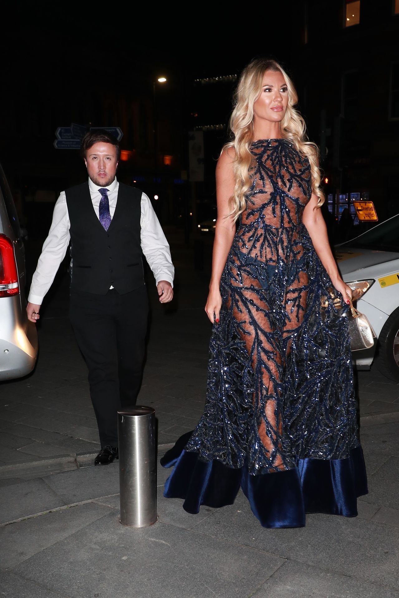 English reality TV star and model Christine McGuinness (31) was seen in a beautiful see-through blue dress at Manchester Fashion Festival at The Hilton Hotel in Manchester, 10/12/2019.