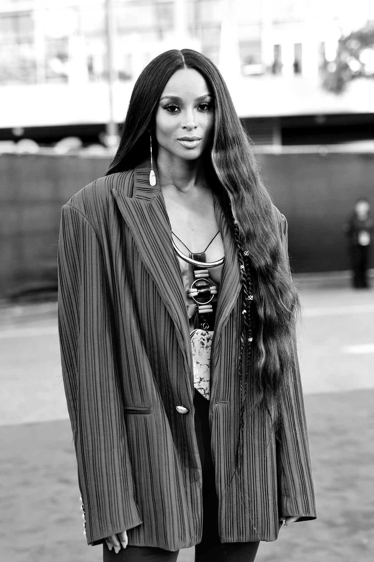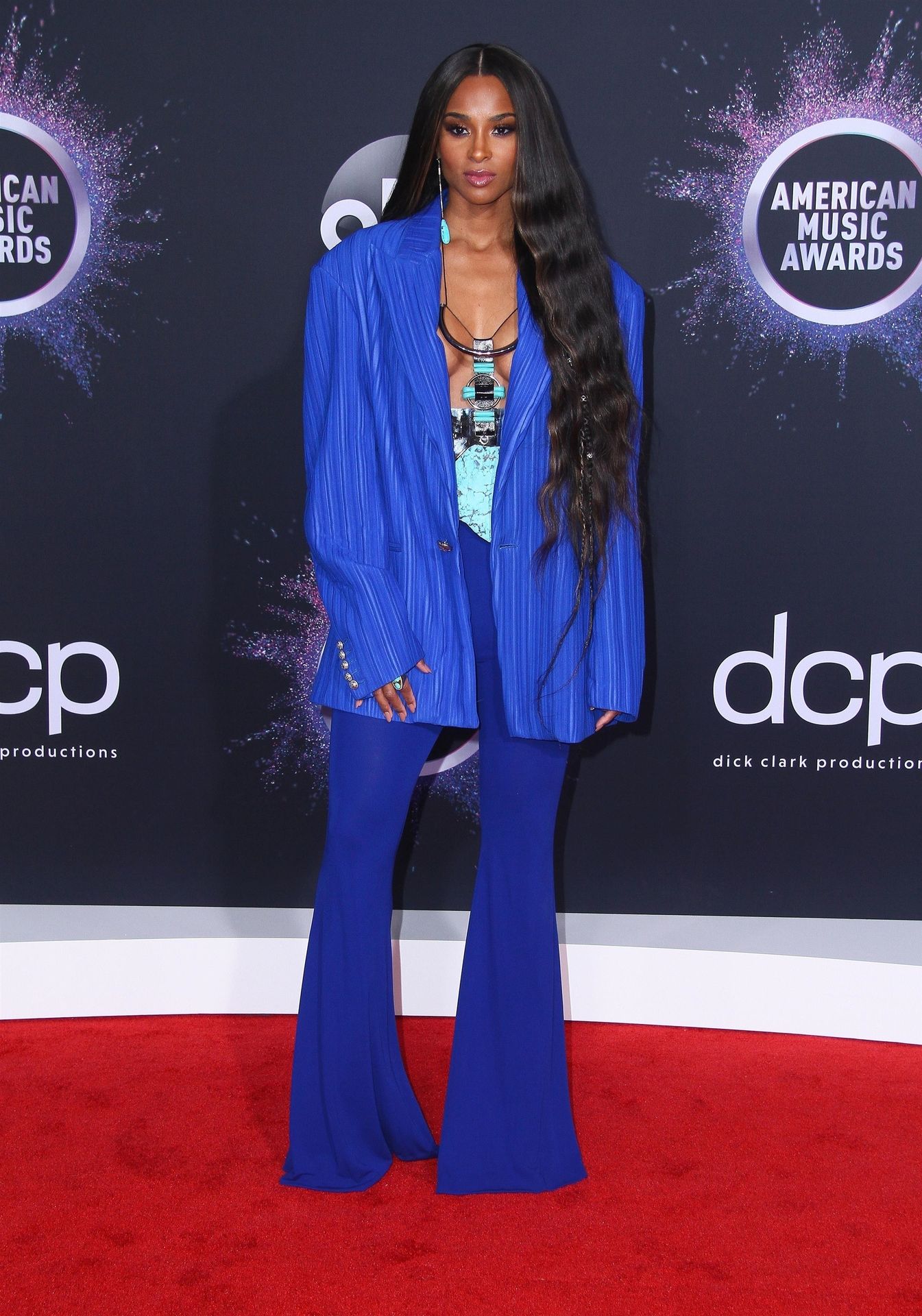 Ciara attends the 2019 American Music Awards at Microsoft Theater in Los Angeles, 11/24/2019. The 34-year-old singer showed off her tits, wearing a blue pantsuit without a bra.