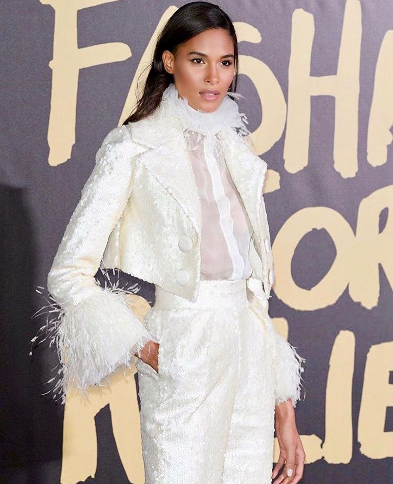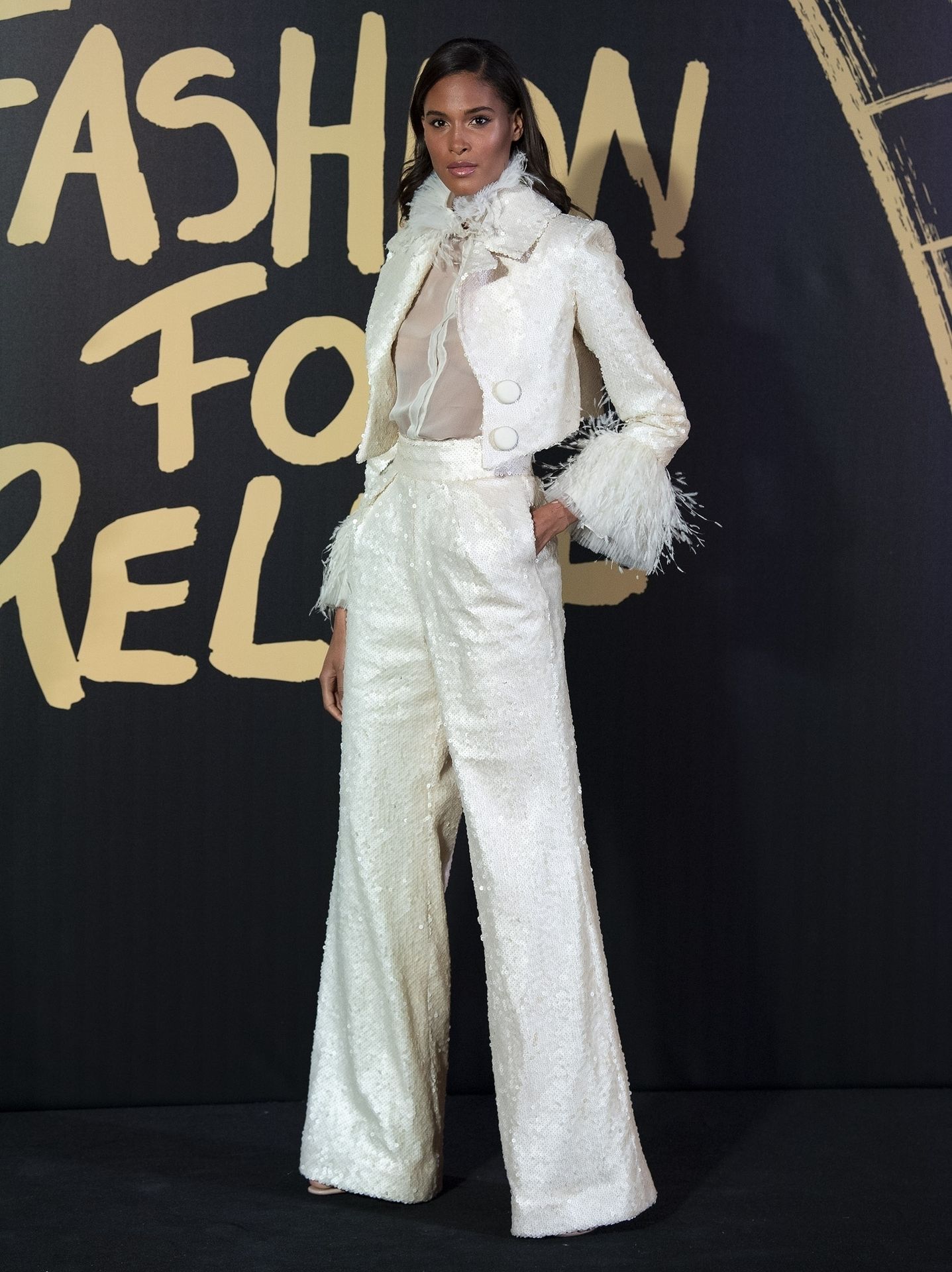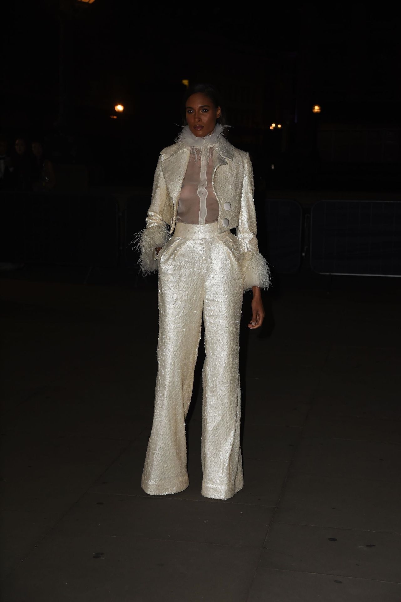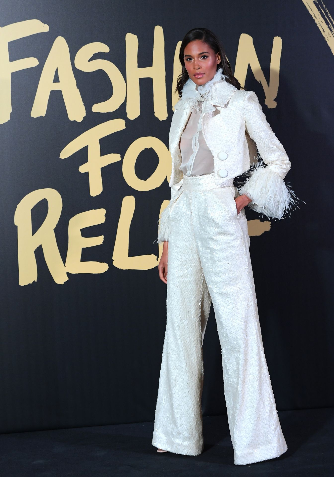 French model Cindy Bruna (24) was pictured braless at LFW Spring/Summer 2020 Fashion For Relief 2019 at The British Museum in London, 09/14/2019.