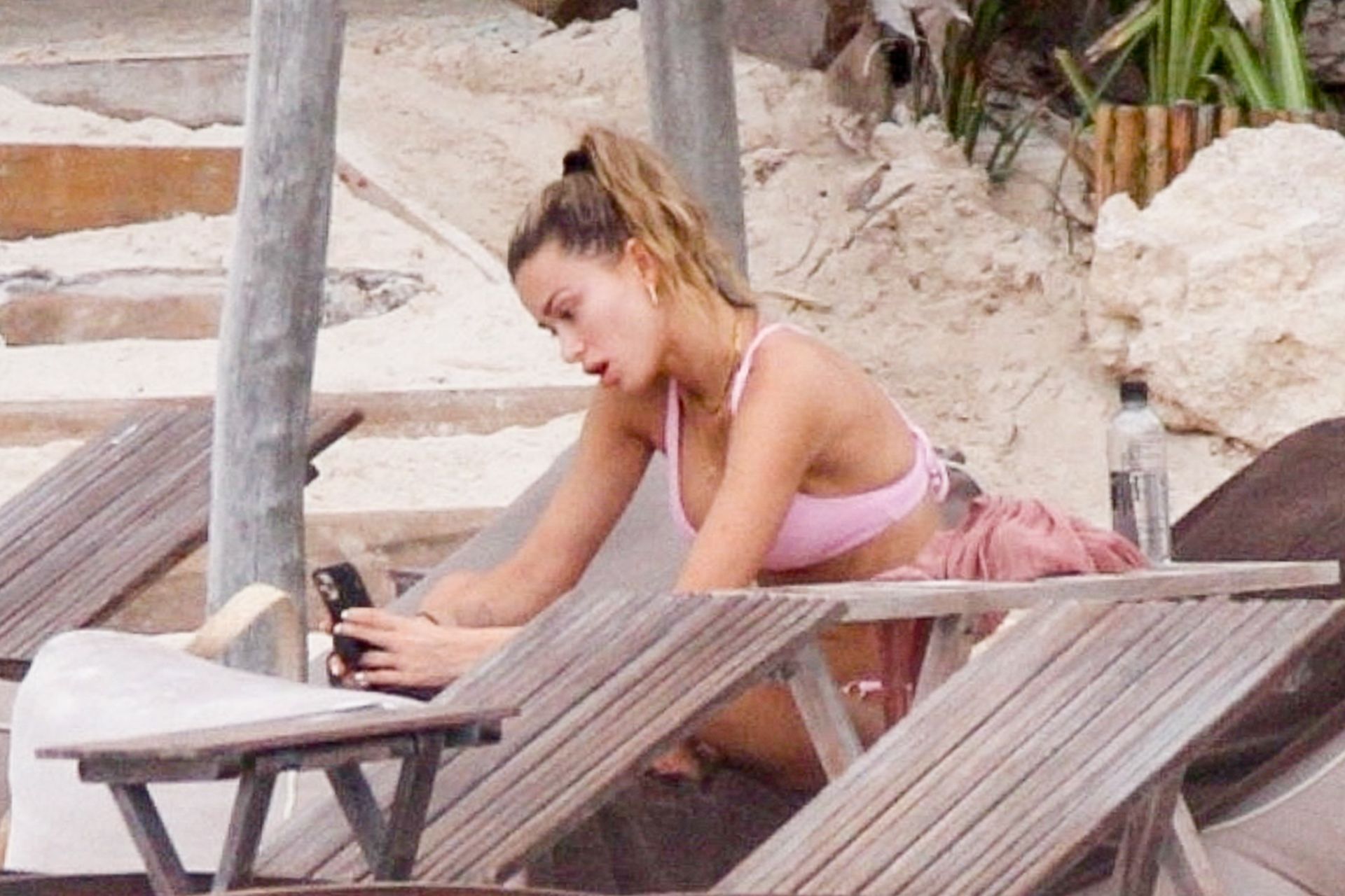 Cindy Prado soaks up the sun while out vacationing in Tulum with her friends, 03/07/2020. The model shows off her amazing figure in a pink bikini.