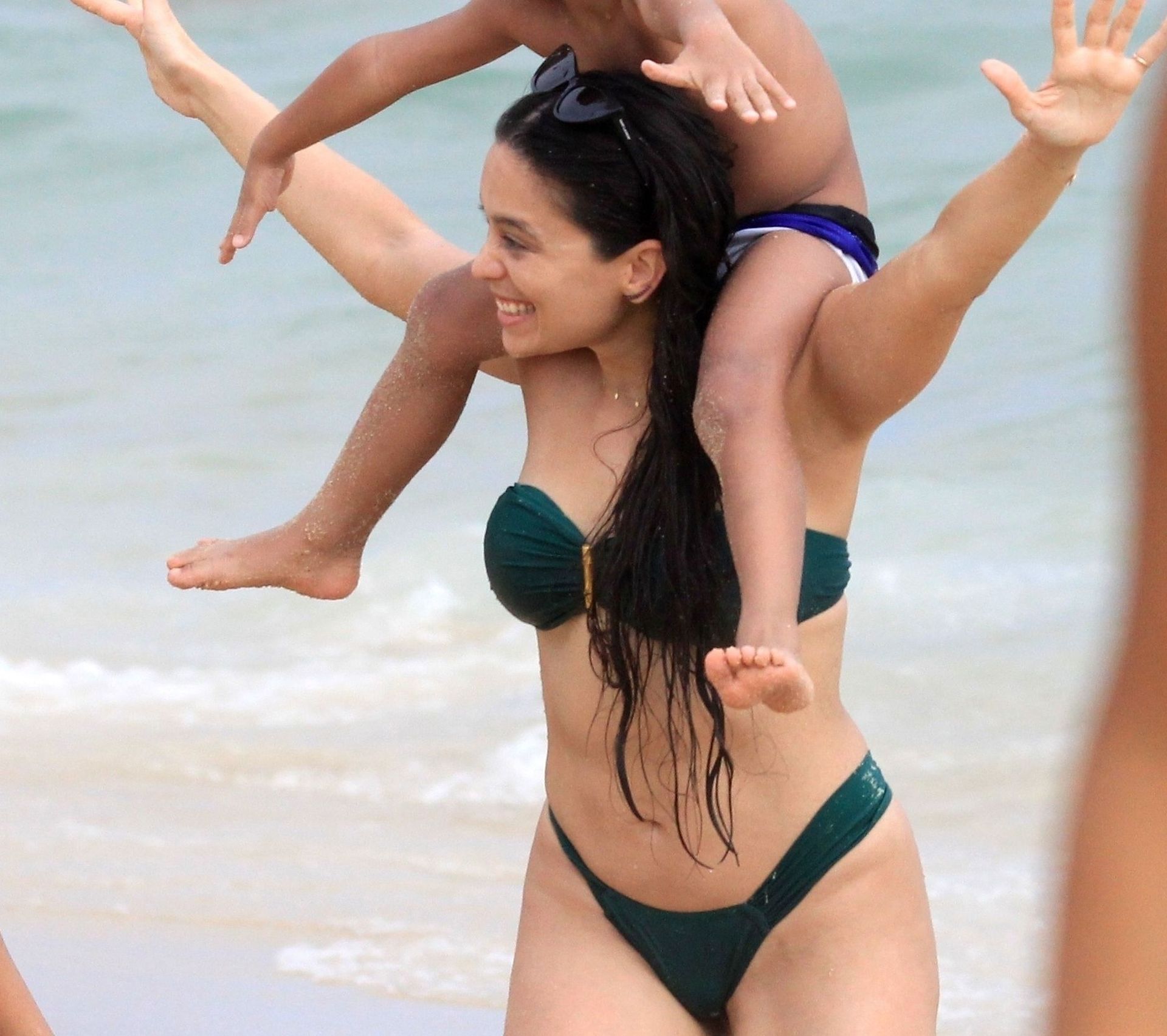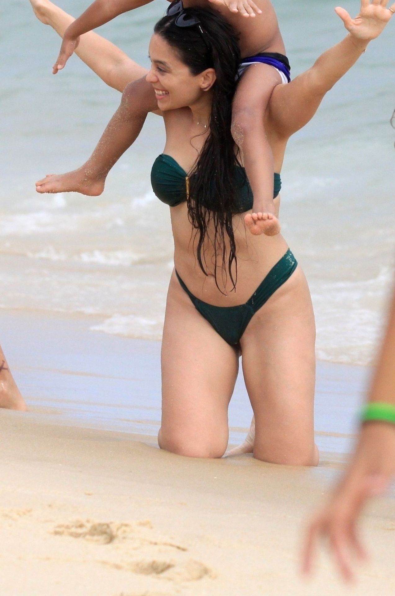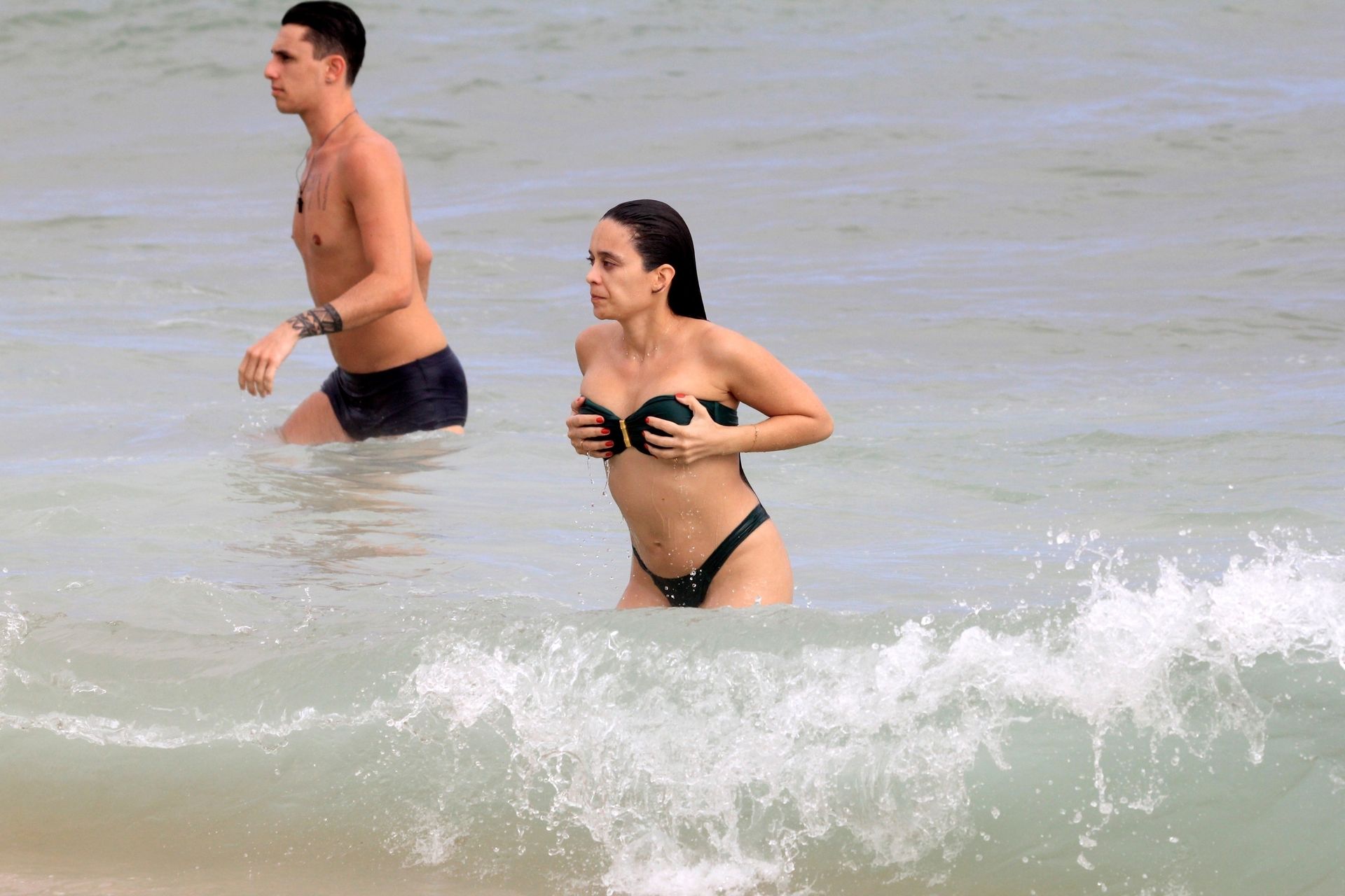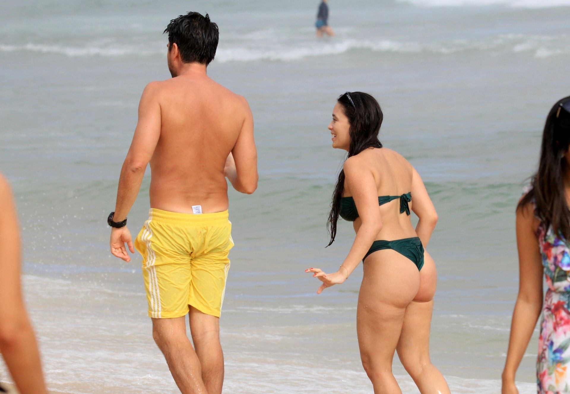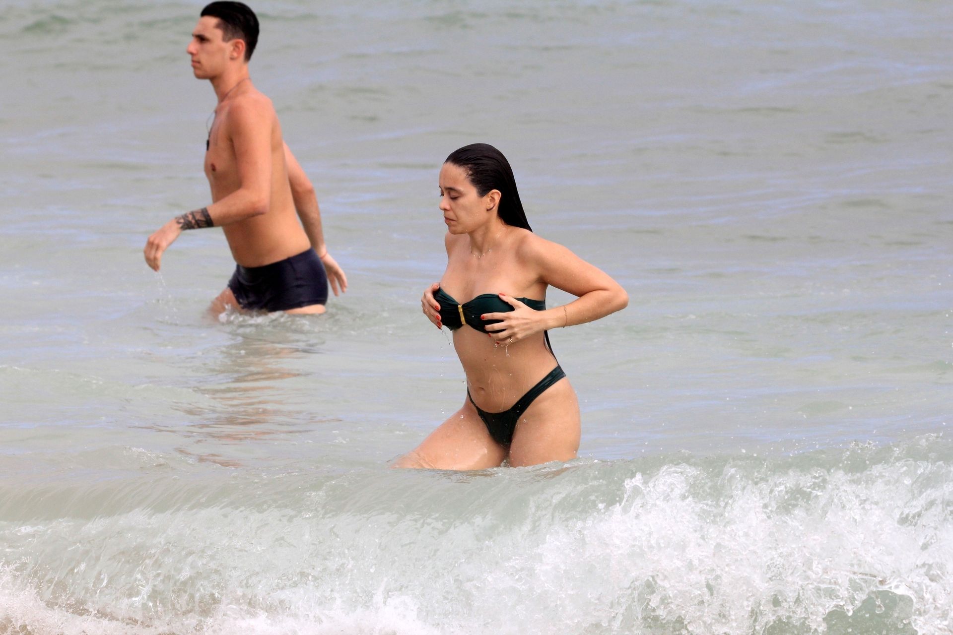 Marcelo and Clarisse show off their fit physiques in tiny swimsuits as they enjoy the beach day and playing volleyball.
