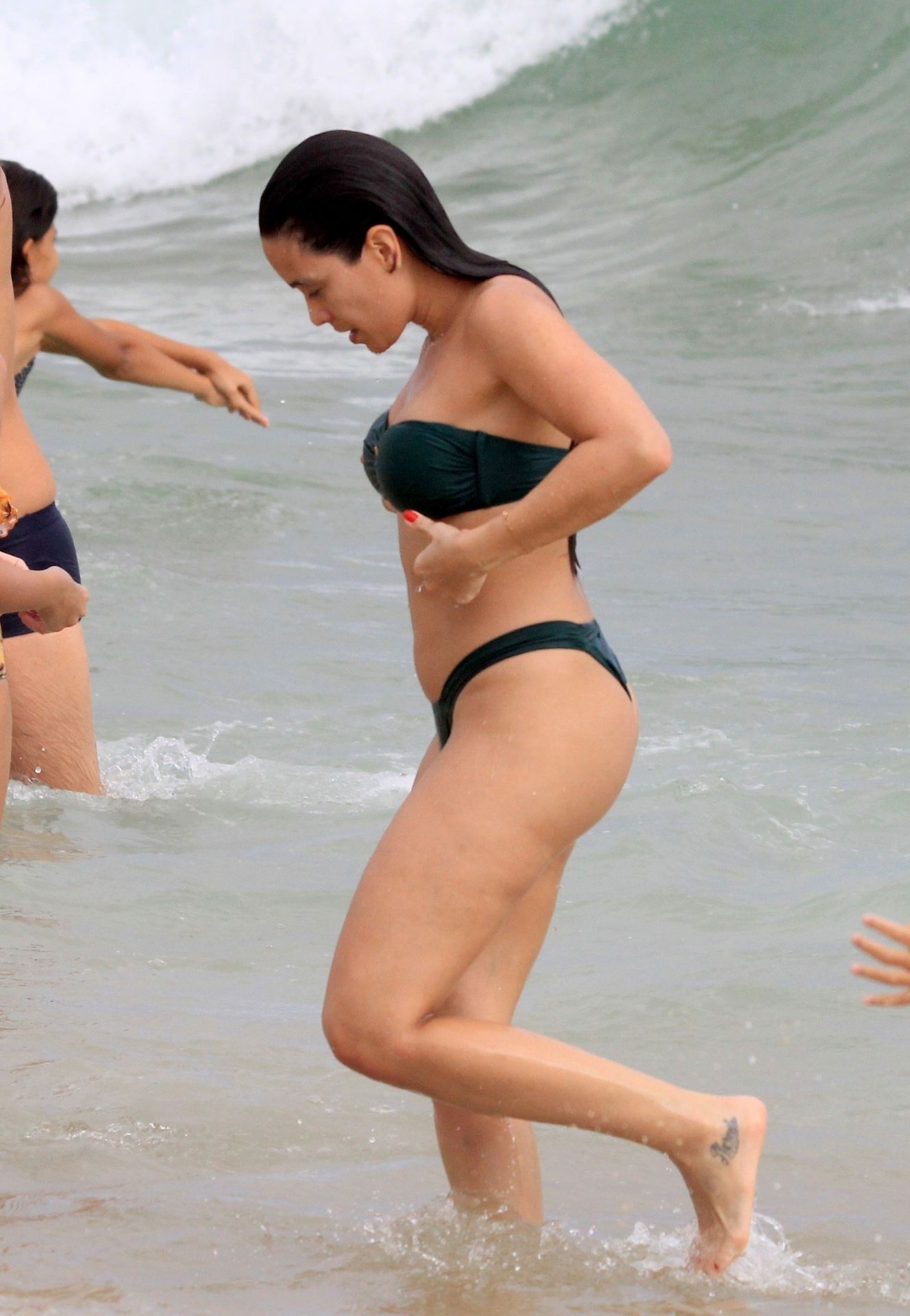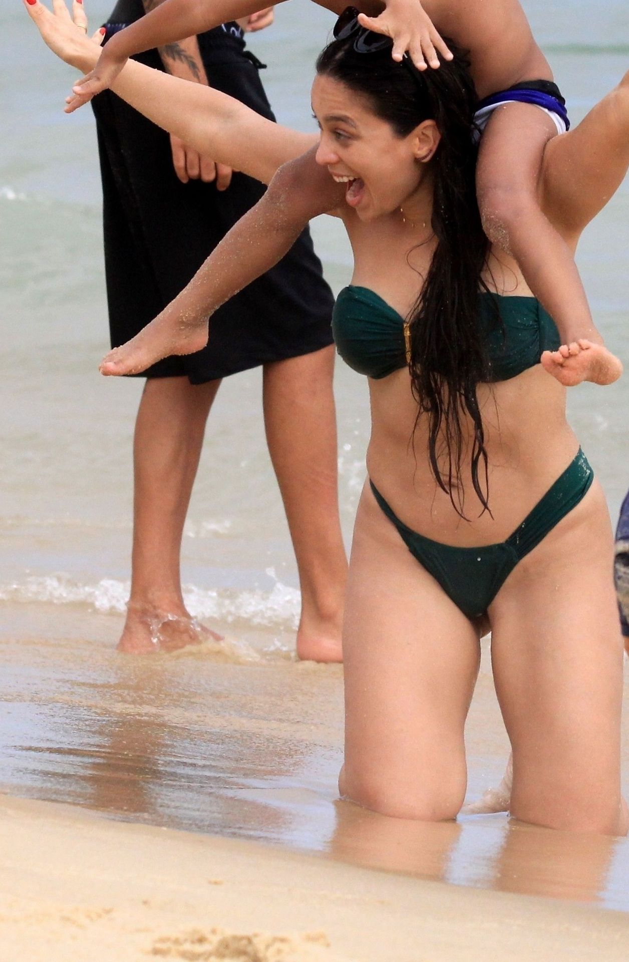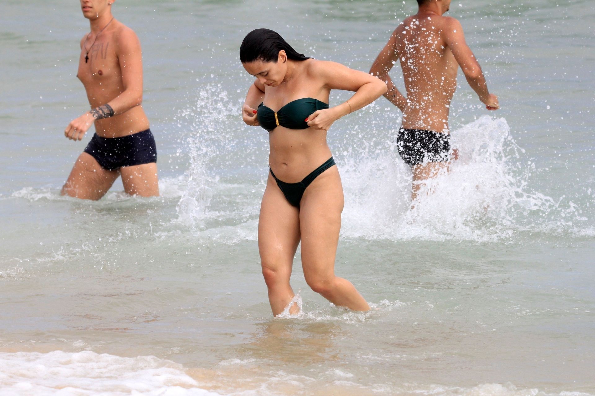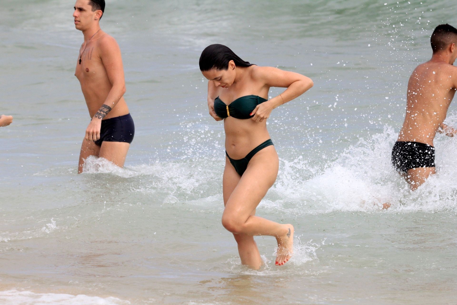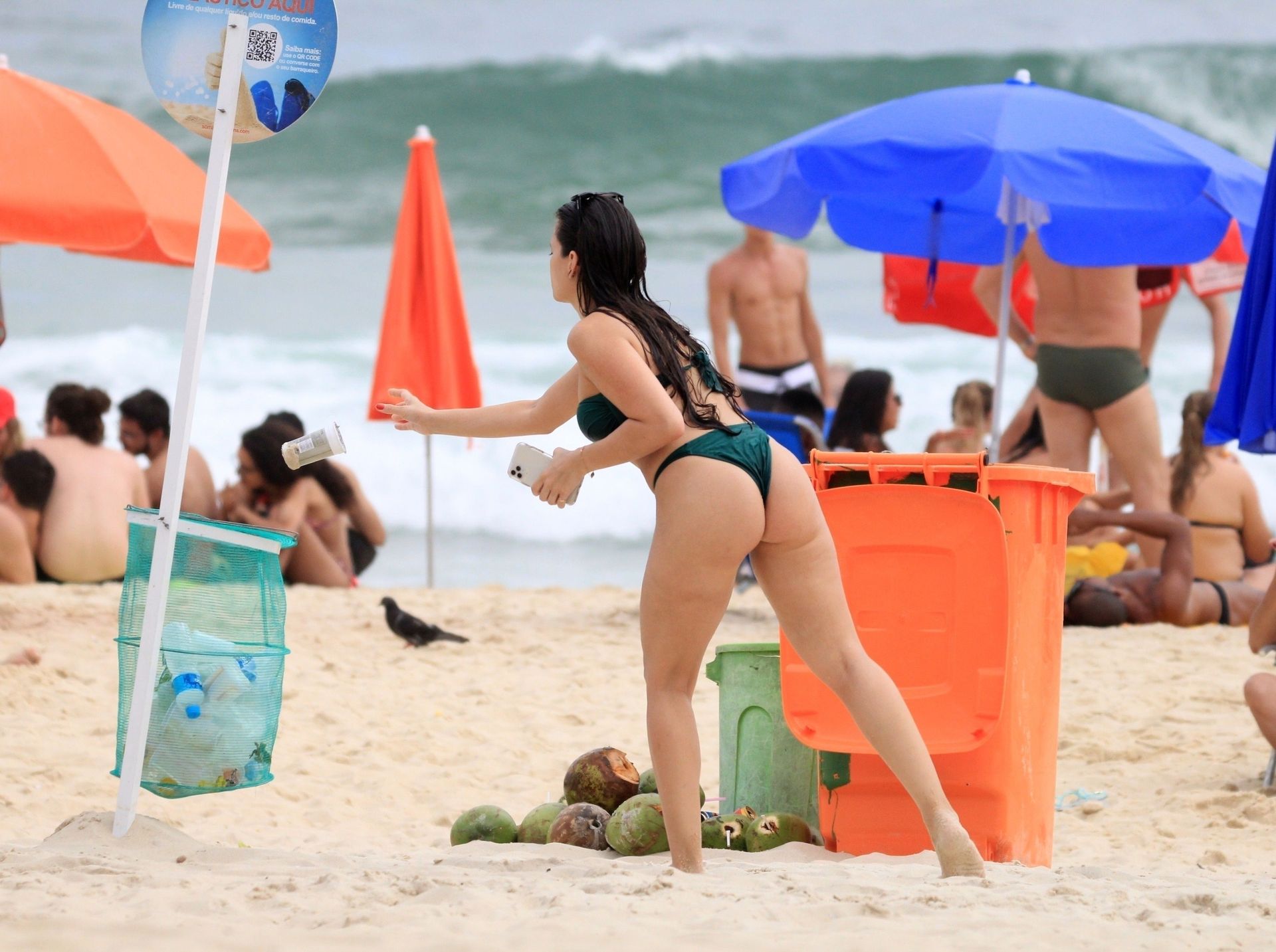 Marcelo and Clarisse show off their fit physiques in tiny swimsuits as they enjoy the beach day and playing volleyball.