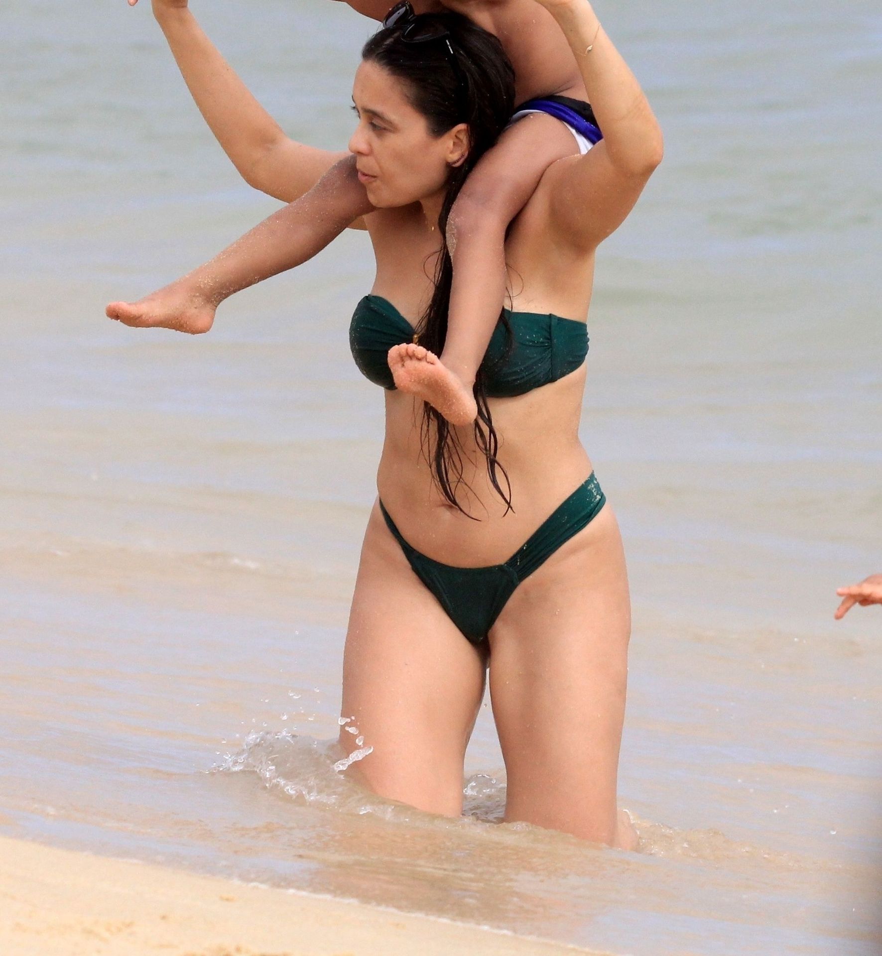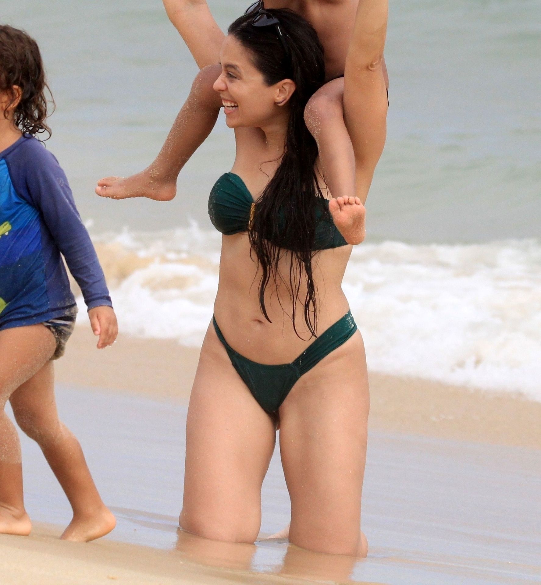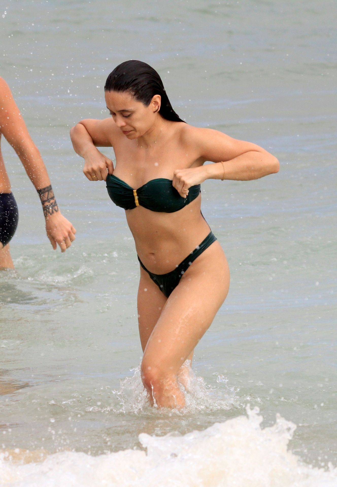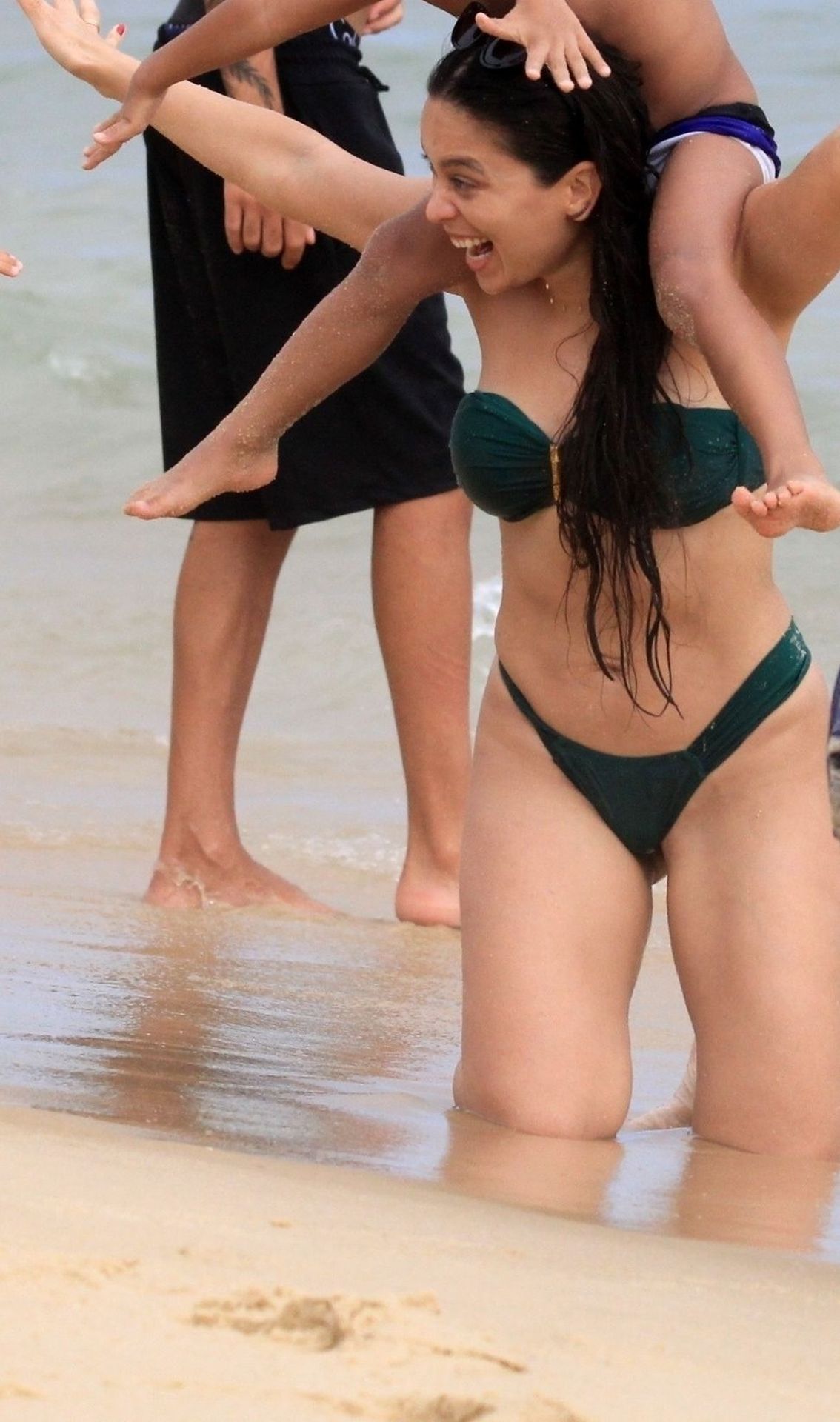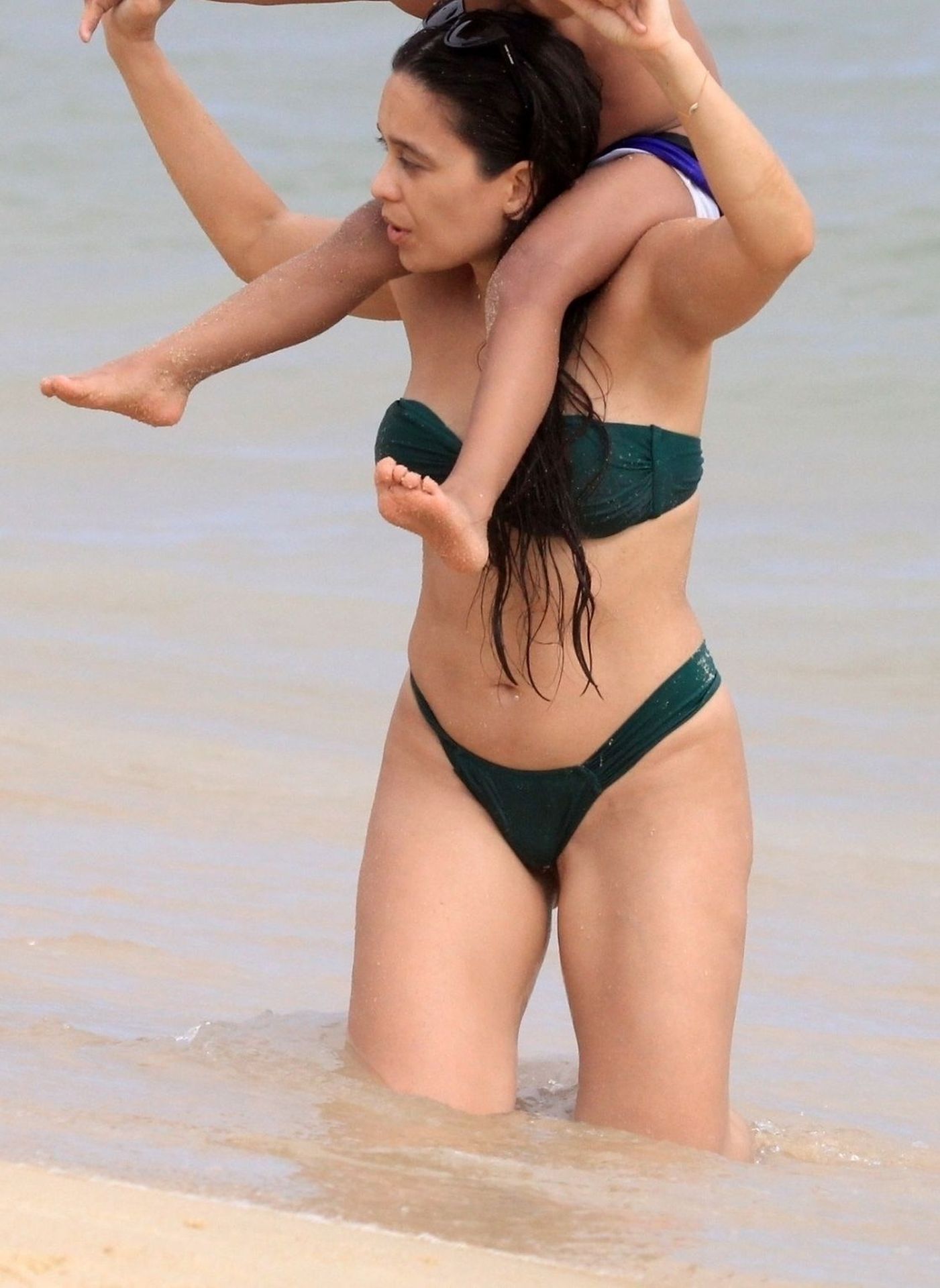 Marcelo and Clarisse show off their fit physiques in tiny swimsuits as they enjoy the beach day and playing volleyball.