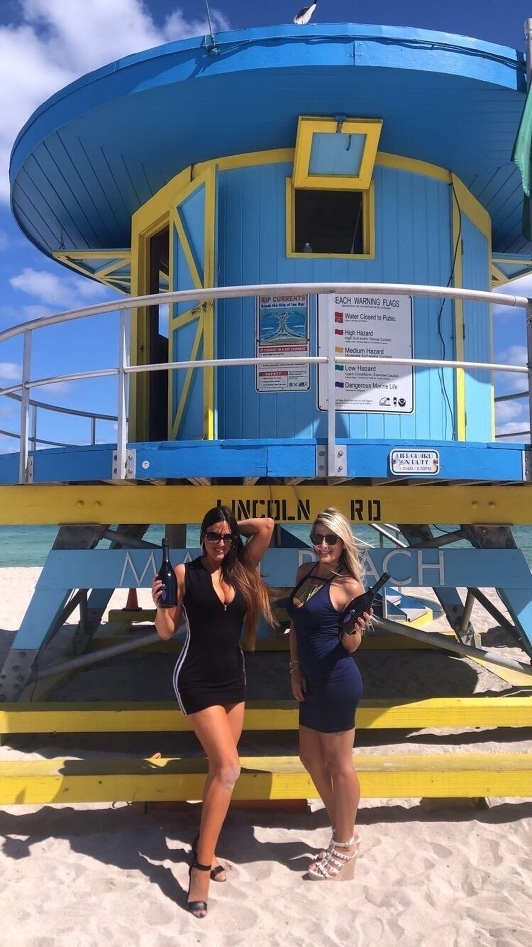 The long term friends and popular blonde and brunette duo wore Italian top brand Miss Bikini Luxe and posed happily in front of the interested passersby!