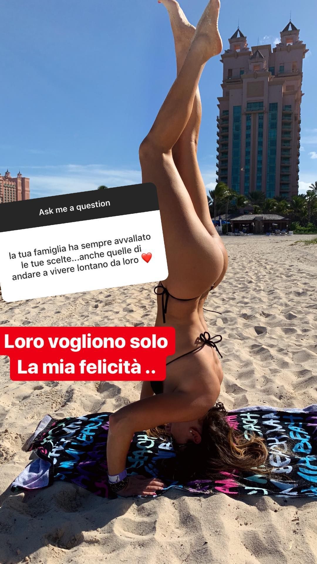 “Secret Story” star Claudia Romani was wearing a mini black bikini while tanning at the famous Atlantis Resort in Nassau, Bahamas, 12/02/2018. The model showed her curvy fit body and even practiced some yoga! She was then wearing a Good Girl with Bad Behavior tank top on a warm beach day.
