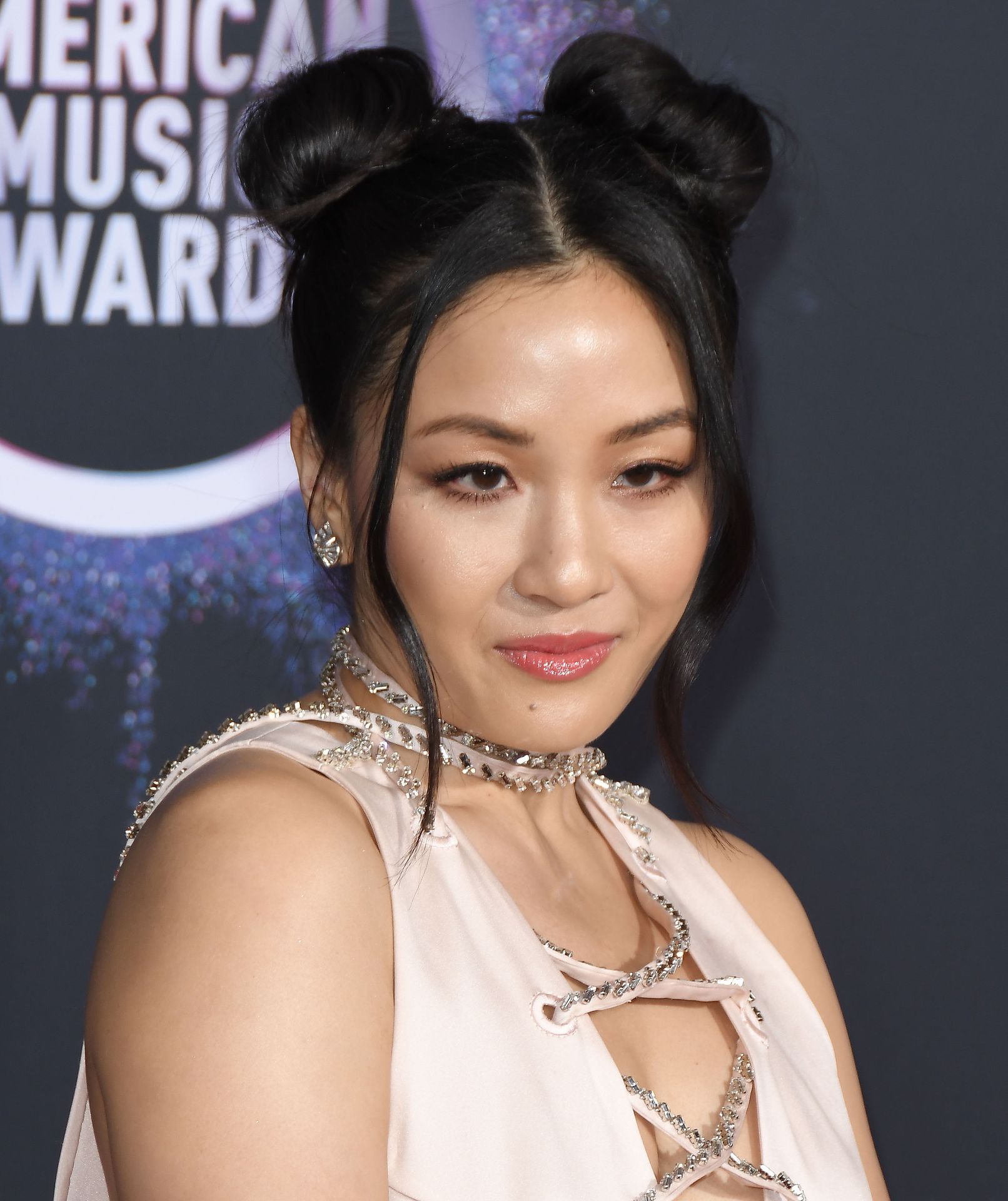 Braless Constance Wu was photographed on the red carpet at the American Music Awards held at Microsoft Theatre L.A. Live in Los Angeles, 11/24/2019.