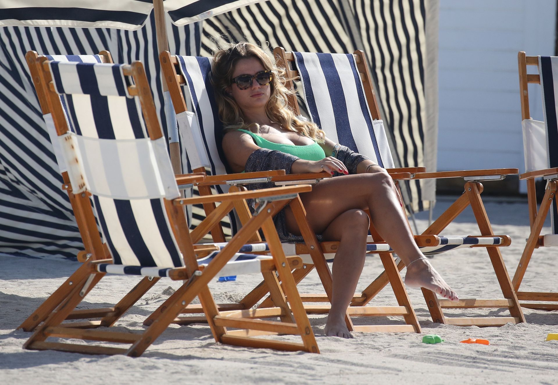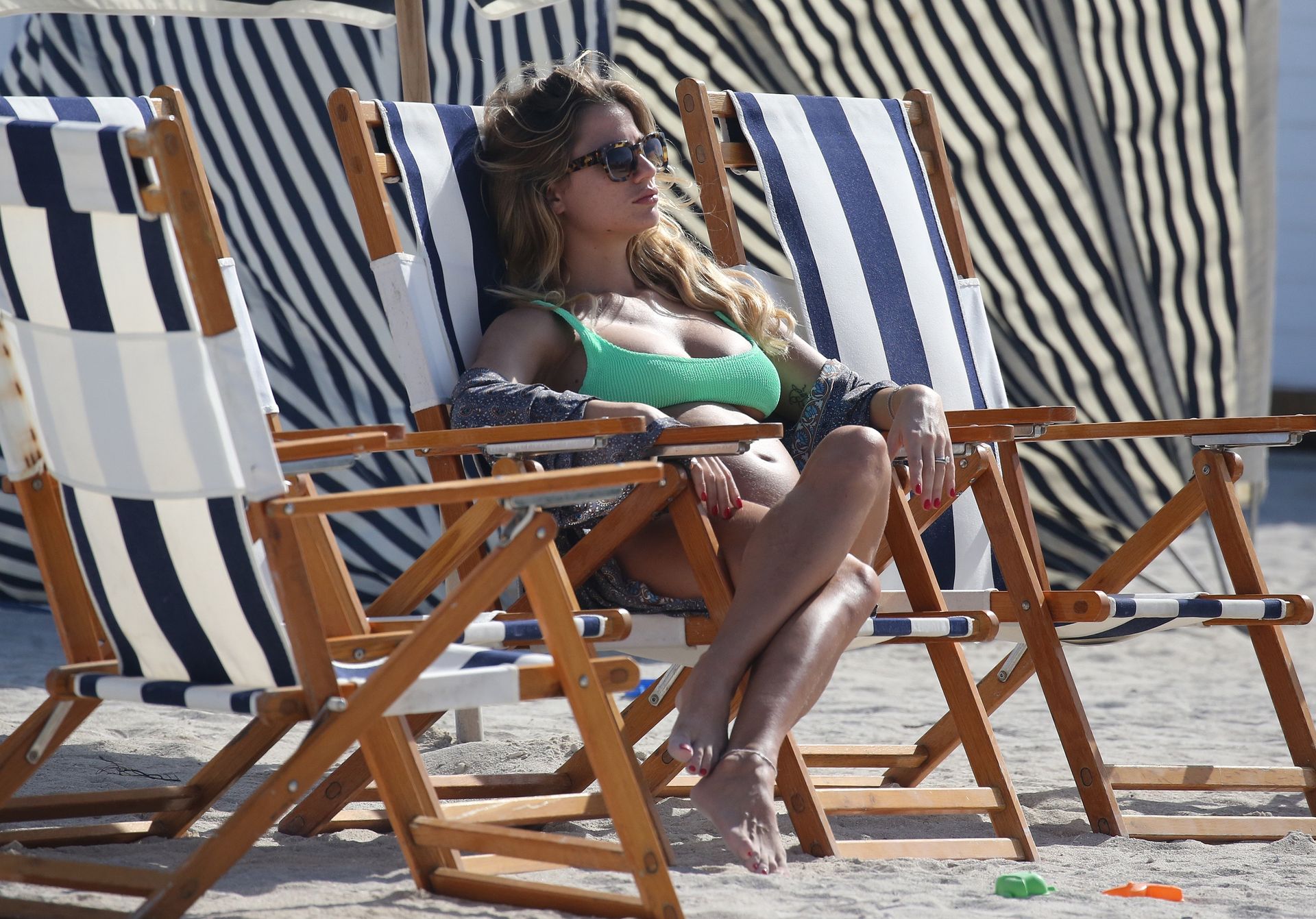 Actress Cristina Marino shows off her baby bump and all of her new curves in a green bikini on the beach in Miami, 01/02/2020.
