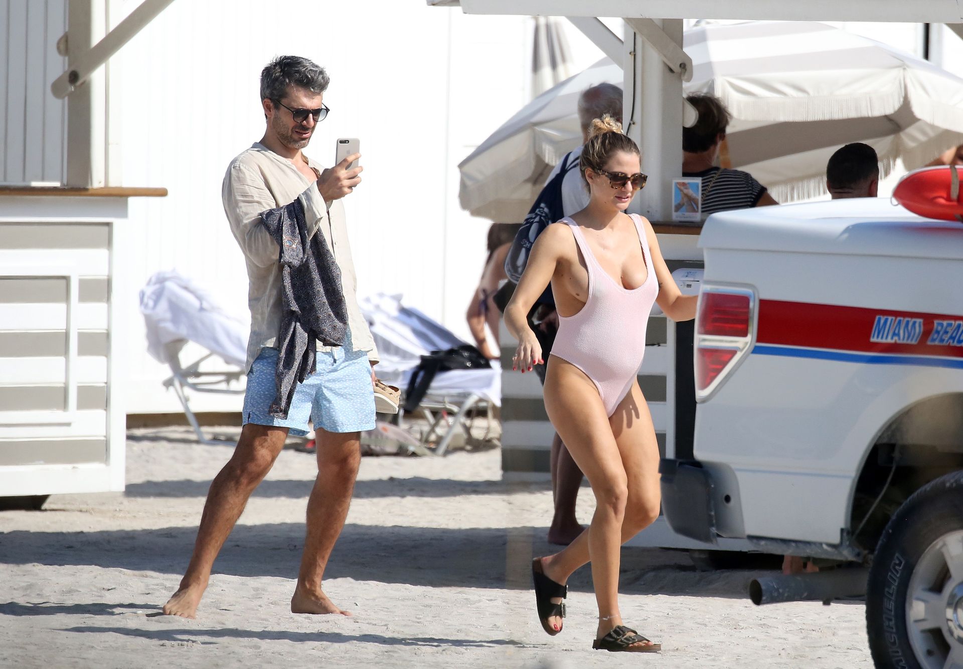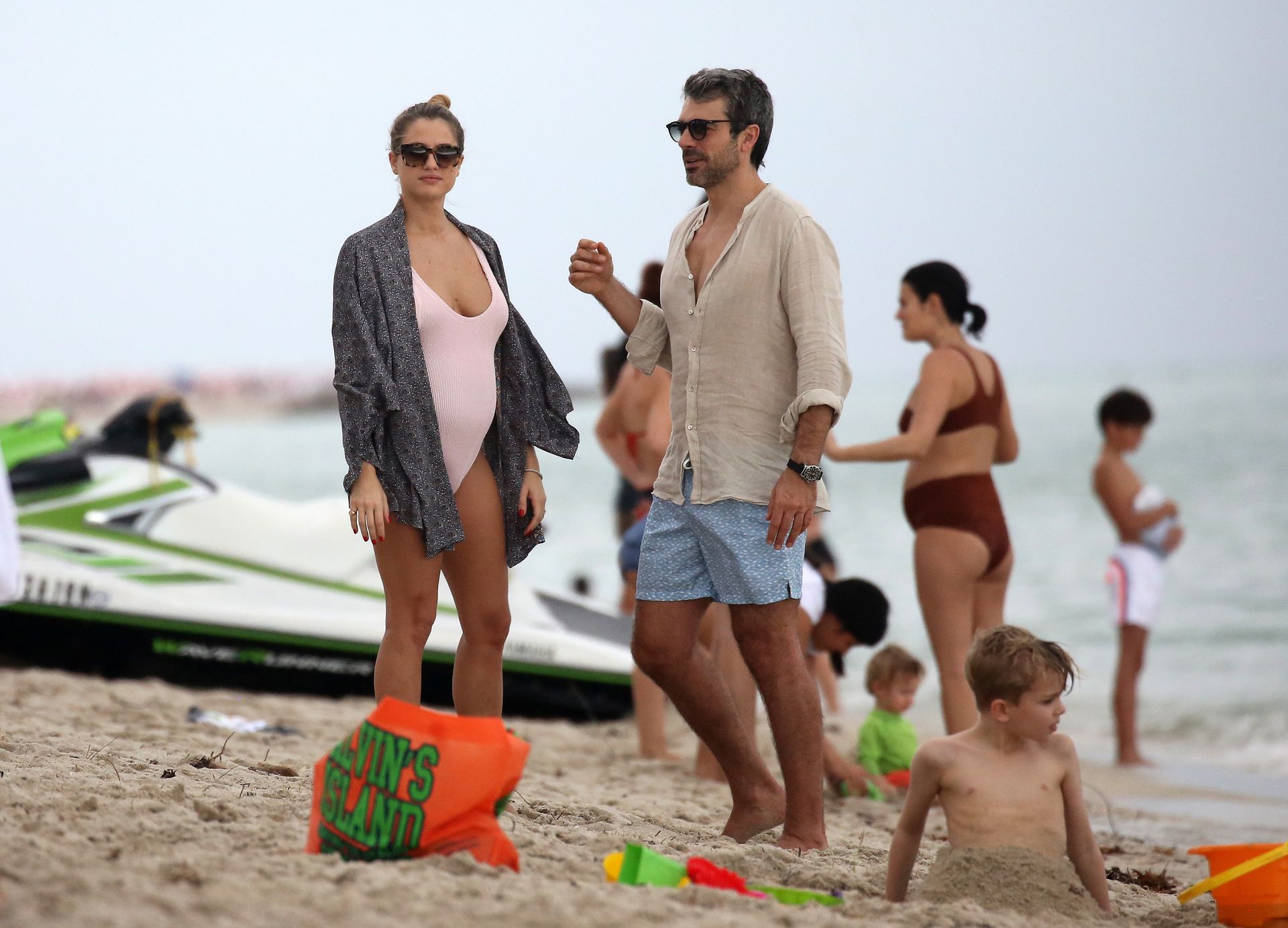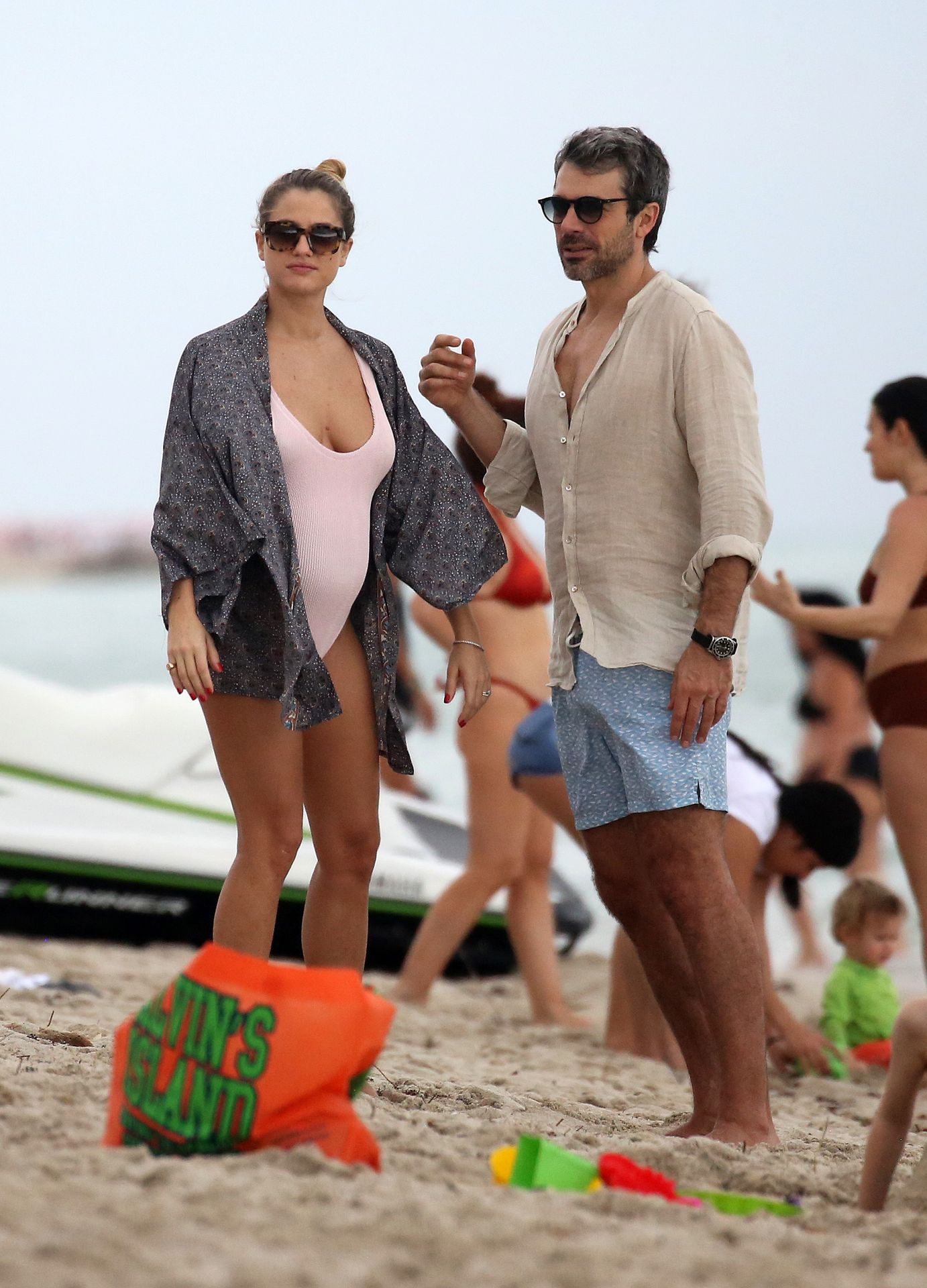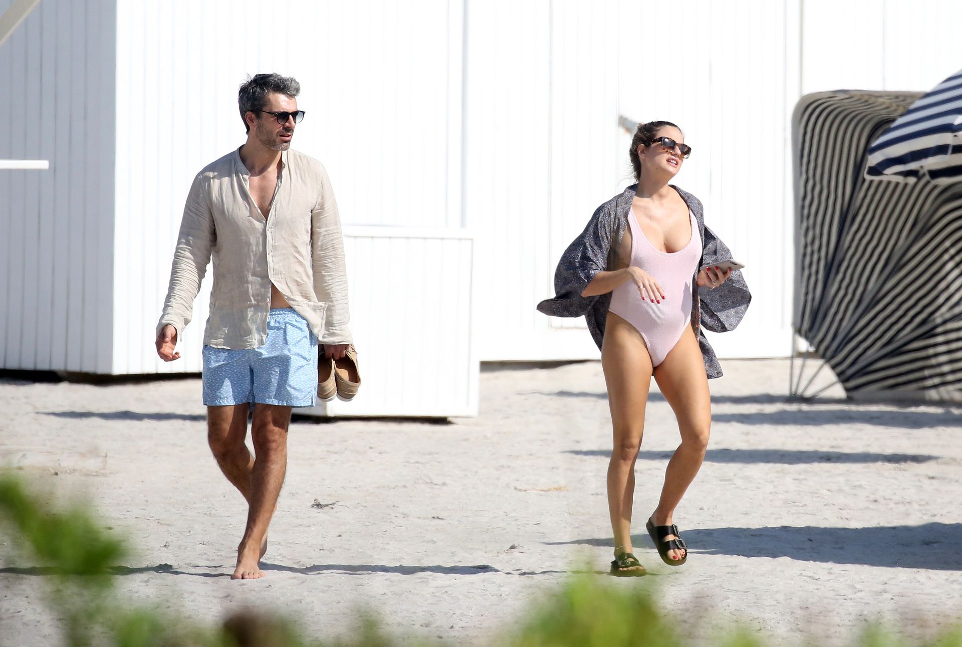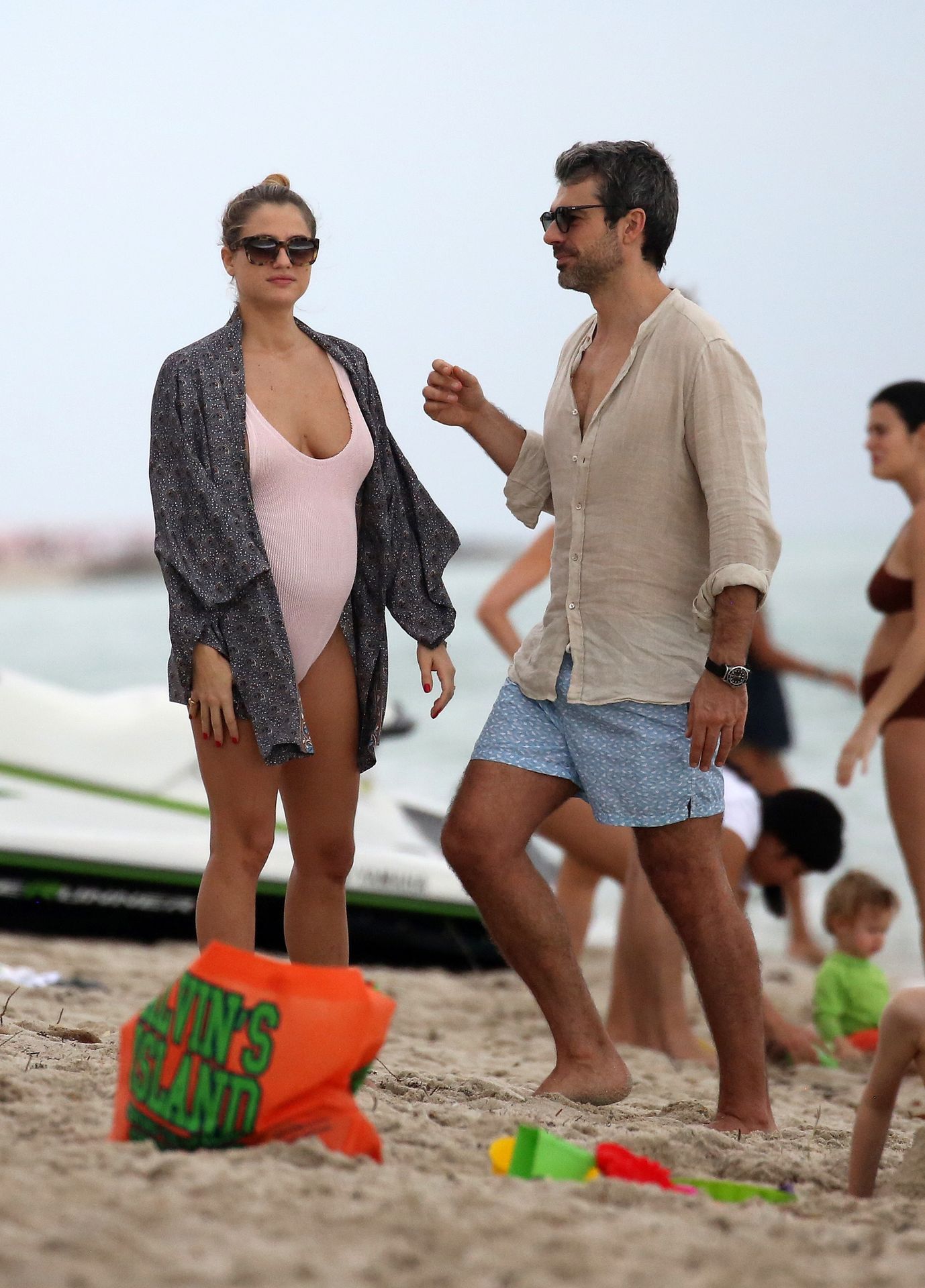 Actress Cristina Marino shows off her baby bump and all of her new curves in very revealing swimsuit as she hits the beach with Luca Argentero in Miami on New Year’s Eve Day, 12/31/2019.